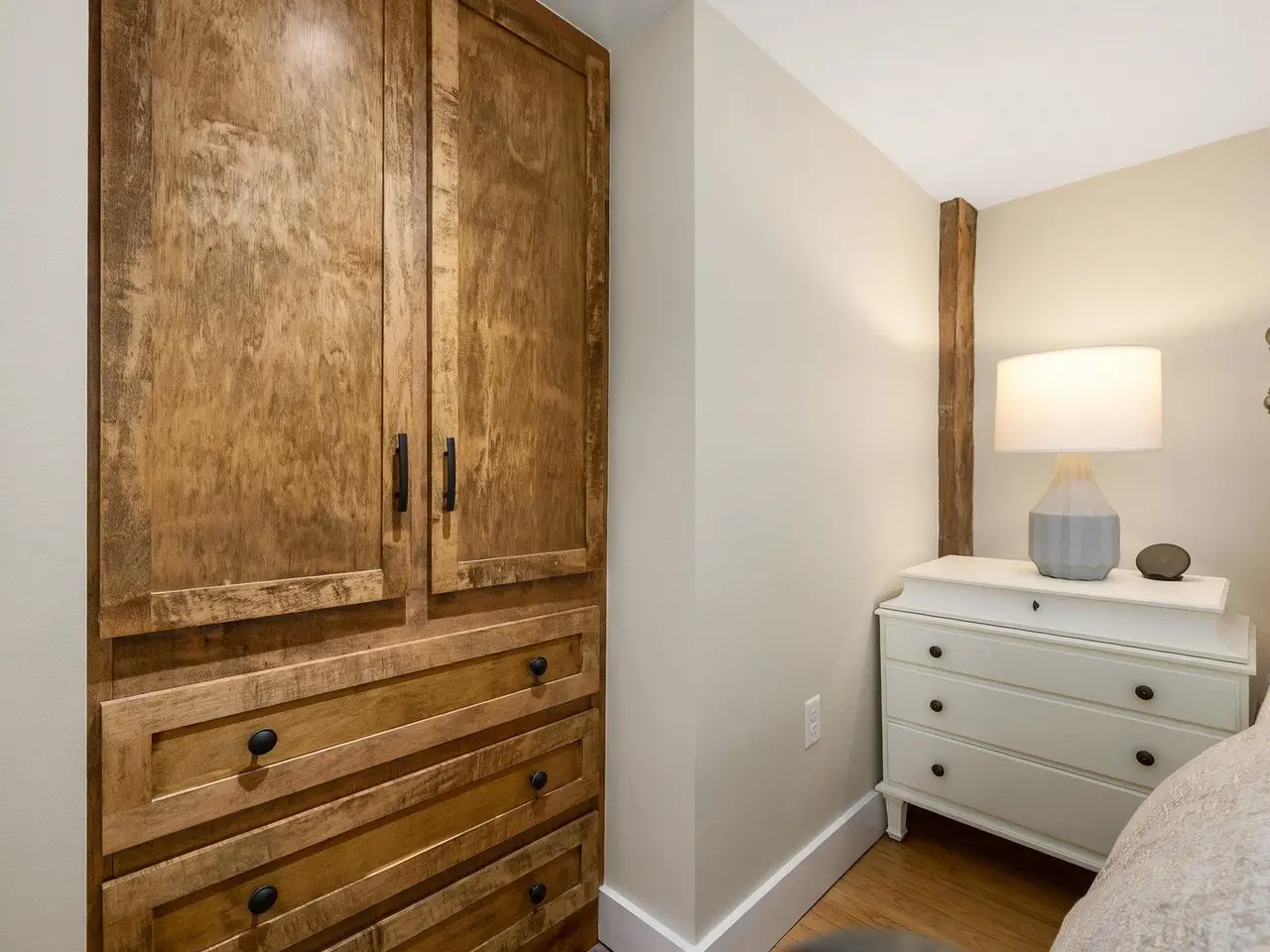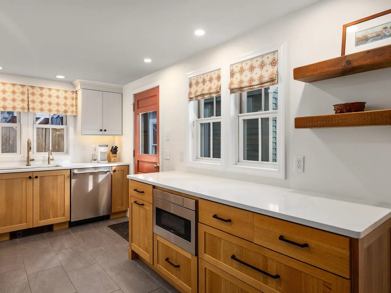 Tucked in the heart of Portsmouth’s South End, this beautifully reimagined home combines timeless character with thoughtful modern updates. The kitchen shines with custom cabinetry, quartz countertops, with Thermador & Bosch appliances, while the adjoining living area offers a warm, inviting spot to relax by the new electric insert in the wood burning fireplace. Upstairs, the spacious primary suite features a walk-in closet, custom built-ins, and an elegant en-suite bath. A second bedroom with its own newly updated full bath ensures comfort for guests or family. Originally renovated top-to-bottom in 2008 and enhanced again in 2020, the home continues to evolve with style and care. Classic details—exposed beams, gunstock corners, and wide wood floors—bring a sense of history to the light-filled spaces. Every detail has been carefully maintained and improved—from the refreshed landscaping with irrigation to the newly painted interior and updated heating system. Outside, a private stone patio and pocket garden create a peaceful retreat, and a garage with a brick driveway provides three coveted off-street parking spaces. Ideally located near Portsmouth’s best restaurants, parks, and waterfront attractions, this impeccable South End residence offers the very best of in-town living.
