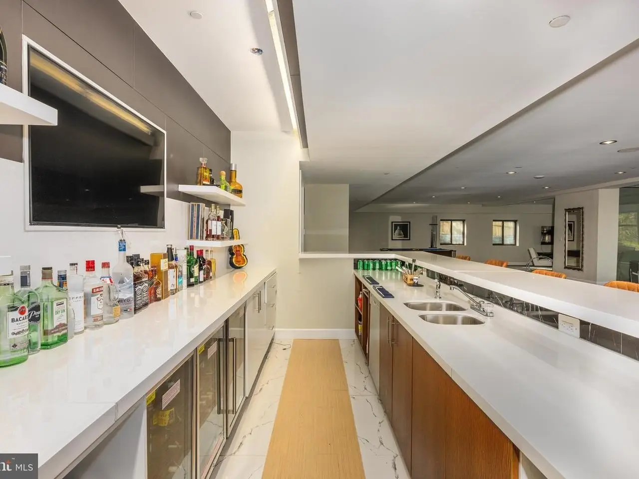 Designed by a seasoned architect home owner as a personal legacy estate, this 6-bedroom, 7 full + 2 half bath residential tour de force spans approximately 13,000 sq ft of masterfully curated interiors, nestled within one of Potomac's most prestigious enclaves. Inspired by the beauty of French chateau and elevated with sleek, modern innovations, this home blends old-world elegance with cutting-edge materials sourced from across the globe. Step through a dramatic Acasa security steel door entry into a vast tiled foyer and soaring 2-story central Living Room, crowned by an imported three-tiered artisan glass chandelier. From there, experience airy, sun-drenched interiors defined by walls of glass, steel beam construction, and striking floating glass staircases. From solid-core Canadian doors to premium bamboo flooring, handcrafted Turkish tiles, and porcelain accents, every finish tells a story. The result is a seamless flow of light and energy throughout the home-perfectly complementing the estate's bold, contemporary vision. Designed for effortless grandeur, the formal Dining Room offers the perfect backdrop for elegant entertaining on any scale. The open-concept Kitchen, featuring custom cabinetry, double sinks, two large pantries, center island, and sleek finishes, flows into a spacious Family Room with a gas fireplace. Two main-level Bedrooms include a private Guest Suite with its own entrance, living space, full bath, driveway access, and separate 2-car Garage-ideal for multi-generational living or long-term guests. A private, coded-entry Office, additional Powder Room, and panoramic views of lush grounds complete the level. A showstopping architectural centerpiece, the upper level features a glass-enclosed Gallery anchored by the majestic three-tiered glass chandelier, overlooking the open Living Room below. This unique construction frames the upstairs in light and openness. The Primary Suite is a sanctuary of refined tranquility, featuring spa-caliber finishes, expansive dressing areas, and serene views. Three additional spacious Bedrooms each enjoy ensuite baths and generous storage. A versatile Flex Room- perfect for a wellness space, prayer room or additional office, a stunning Family Lounge framed by walls of windows with panoramic views, and a fully appointed Laundry round out this floor. The spectacular above-ground lower level is wrapped in a dramatic wall of 3-story high windows that flood the interior with natural light and showcase breathtaking views of the rear grounds. A sculptural glass staircase connects the lower level to the main floor above while serving as a visual statement piece. This is a true entertainer's haven, complete with a quartz and Melamine designer Bar, three beverage centers, dishwasher, sink, mounted TV, and custom built-ins. The adjacent private Theater boasts tiered recliners, projection screen, and immersive surround sound. A bonus room with Full Bath access and large storage spaces adds flexibility for guests or work-from-home needs. Outside, enjoy the ultimate in al fresco living. A steel-roof covered patio and full outdoor kitchen with granite countertops, dual refrigerators, and professional hardscaping are framed by lush, landscaped grounds-ideal for intimate gatherings or large-scale celebrations. Additional features include a 5-zone HVAC system, two commercial-grade 100+ gal water heaters, three fireplaces, and rare access to public water and sewer. Infrastructure for a future elevator is already in place. Garage parking for three completes this extraordinary offering. Every inch of this home has been meticulously crafted to deliver the pinnacle of elegance, privacy, and innovation. This is not just a residence-it is a bold expression of luxury living at its finest. Nothing compares!