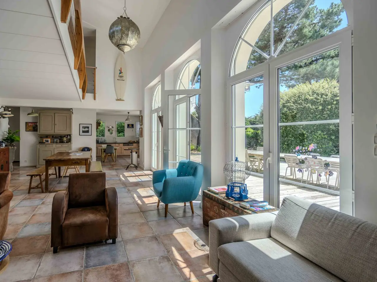 Located in the prestigious Golden Triangle of Prefailles, just a short walk from the town center and the beaches, this exceptional architect-designed villa spans 194 m2 and features a spacious garage of over 25 m2, all set on a large wooded plot of approximately 2500 m2— a rare find in the area. The property opens to a welcoming entrance with a guest toilet, leading into an extraordinary cathedral-style living room bathed in light through its large openings. The open-plan kitchen adds a convivial touch and is also functional with an adjoining pantry and laundry room. For your ultimate comfort, the ground floor includes a master suite with a bedroom, shower room, and dressing area. This level is further complemented by an office that can be converted into a fifth bedroom, along with access to the garage. The wonder continues on the upper floor, which features a majestic landing offering a breathtaking view of the living room and garden—ideal for a lounge or library space. This level distributes three beautiful bedrooms, two of which have a glimpse of the sea, as well as a shower room, a bathroom, and separate toilets. This property, with its sought-after architecture and high-quality finishes, is perfect for a primary or secondary residence, situated close to the most beautiful beaches of the Cote de Jade. The town center of Prefailles is 500 meters away, and the central beach and Port Meleu beach are 800 meters away. The Pornic train station is just a 10-minute drive. REF. 2174 Additional information * 7 rooms * 4 bedrooms * 2 floors in the building * Outdoor space : 2452 SQM * Property tax : 2 384 € Energy Performance Certificate Primary energy consumption d : 223 kWh/m2.an High performance housing