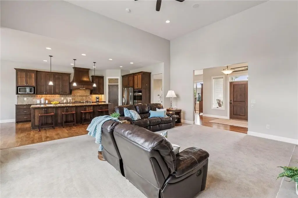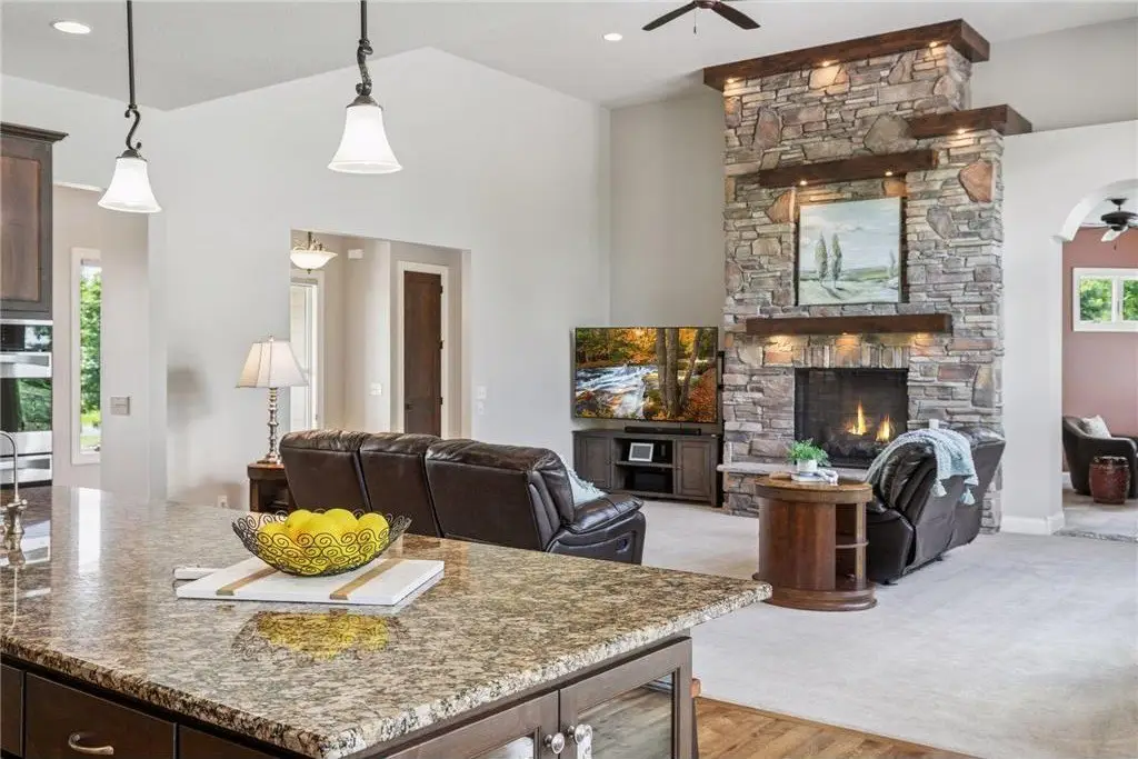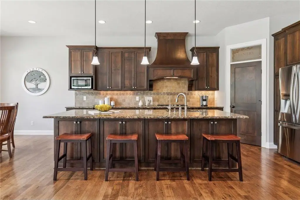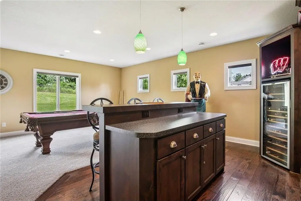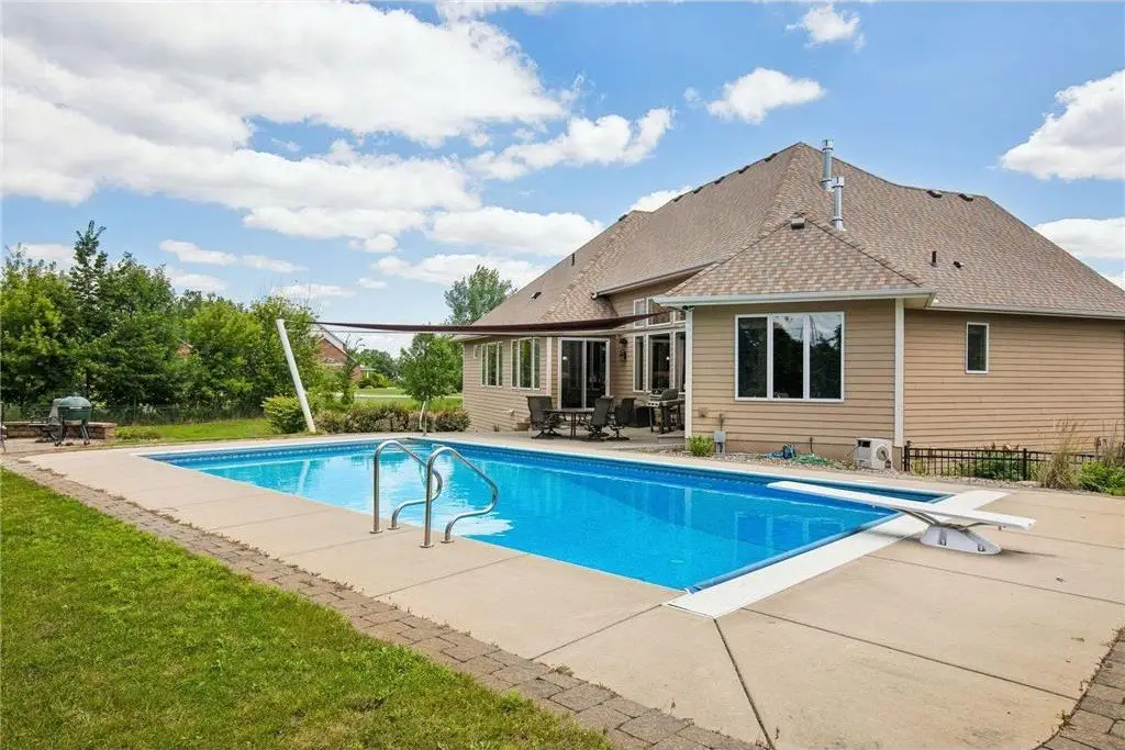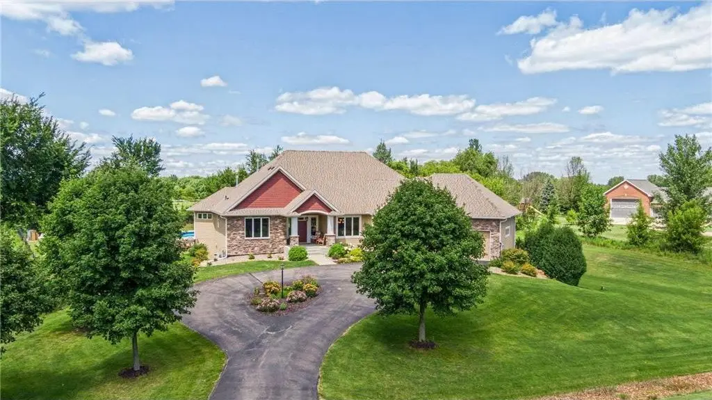 Experience refined luxury in this custom walkout rambler designed and built by JB Woodfitter in 2012, set on 2.51 acres of manicured grounds and prairie beauty. This 4BR/5BA masterpiece offers soaring ceilings, dramatic windows, and high-quality finishes throughout. Enjoy a gourmet kitchen with abundant Knotty Alder cabinetry, oversized island with bar seating, solid surface counter tops, tile backsplash, stainless steel appliances, double wall ovens, and a walk-in pantry. A grand two-story great room with a floor-to-ceiling fireplace with accent down lighting presents an impressive focal point. Gorgeous and inviting hearth room with a heated tile floor, cosmopolitan fireplace, and wet bar designed to offer a seamless indoor-outdoor entertaining space. A convenient 3/4 bath located near the hearth room was designed for a quick rinse after a dip in the pool. Walkout from the hearth room to a heated in-ground pool, sprawling patio, and firepit to unwind and entertain in style. A spacious main level office with French doors and full wall of built-ins welcomes a private work from home space. This lovely home welcomes both formal and in-formal dining spaces, perfect for large gatherings. The main-level primary suite connects to a spa-like bath, complete with a steam shower, that adjoins the laundry for your added convenience. Enter from the garage into a fabulous mud room with a tile floor, built-in lockers and closet for everyday storage. A wide staircase leads you to this homes equally impressive lower level that boasts a spacious family room with a dramatic corner fireplace, billiard area, stunning wet bar, craft/flex room, three bedrooms (one Jack-n-Jill style that share a 3/4 bath) and a separate third bedroom that walks through to a sparkling full bath, plus a lower 2+ garage for all your toys. The upper level three car garage is angled, with an epoxy floor and floor drains, built-in storage cabinetry, (2) 220-volt electric charging stations and a convenient side service door. Surrounded by estate homes and tranquil views, this home blends country serenity with city convenience. Nearby Legends Golf Course offers a challenging game, and a fabulous dining and social experience. This highly sought after neighborhood attends highly sought after Lakeville schools and is not part of the Scottview Estates homeowner's association. Go ahead and fall in love with this spectacular home - its easy to do here.