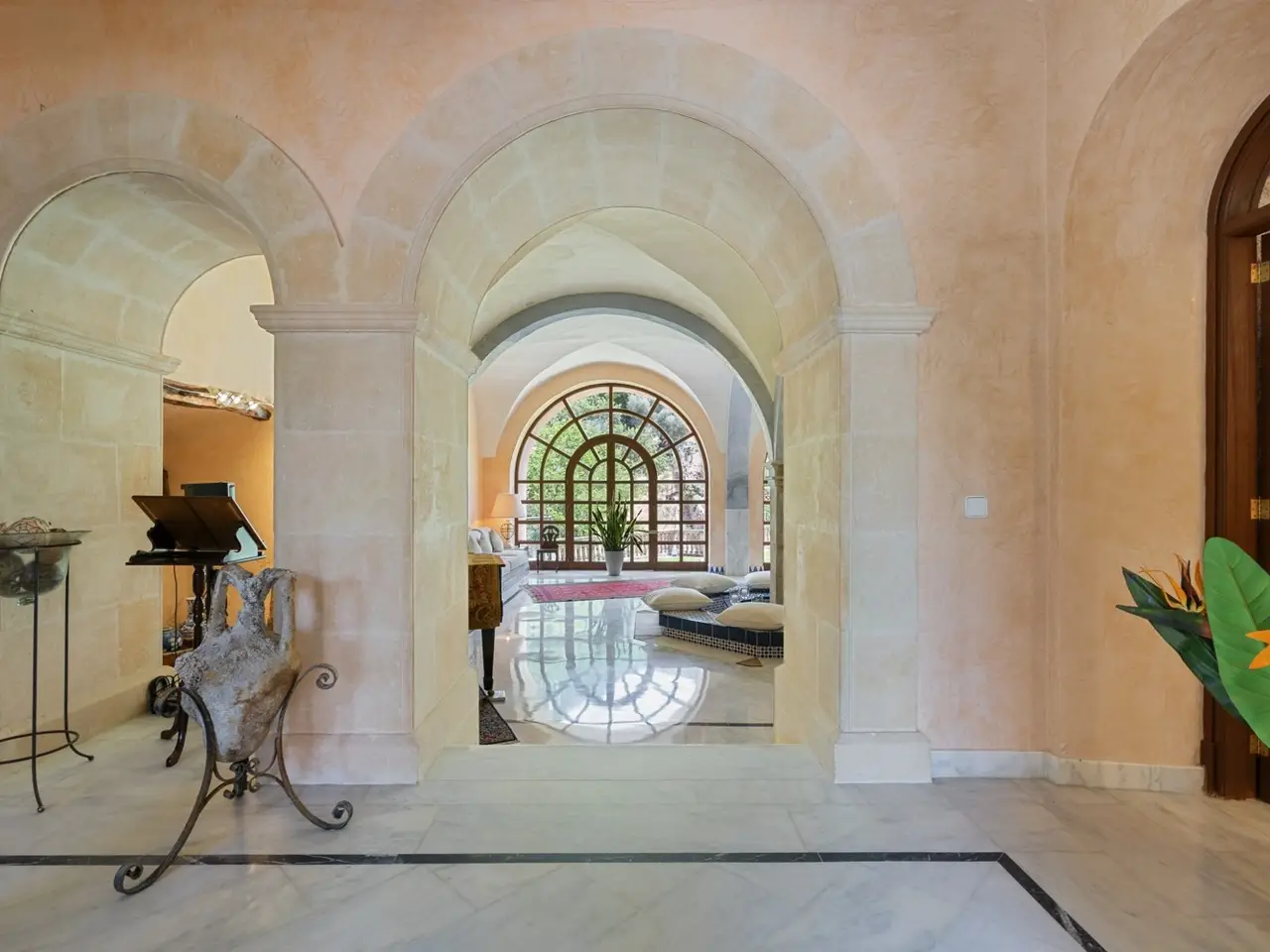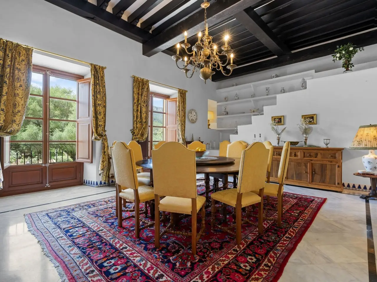 The 19th century manor house is located in Puigpunyent and covers a total area of approximately 1500 m². The stately property covers around 1,422,000 m² of land and thus offers enough space for privacy and relaxation. The property has a total of 15 rooms, including 12 bedrooms and eight bathrooms, which are spacious and comfortably designed. The marble floor gives the rooms an elegant touch, while the patio and terrace offer inviting outdoor spaces. The swimming pool invites you to take refreshing swims, while the tennis court offers sporting challenges. For horse lovers, there is a riding stable on the grounds, and a 200-year-old chapel invites you to contemplate. A special highlight of the property is the historic olive press. Around 1200 liters of olive oil are produced on the property every year and there is its own wine production. A water well ensures an independent water supply. This unique property offers a unique combination of historic charm and modern comfort and is ideal for those looking for an exclusive country estate with a variety of uses. Puigpunyent, a village in the west of Mallorca, nestled in the picturesque landscape of the Tramuntana mountains, preserves its authentic atmosphere and is ideal for nature lovers and those seeking peace and quiet. It is surrounded by attractions such as La Reserva Puig de Galatzó, a natural park with hiking trails and waterfalls, and Son Net, a historic estate that now houses a luxury hotel. Puigpunyent is known for its wineries that produce excellent wines. The church of Puigpunyent, dating from the 18th century, is an example of traditional Mallorcan architecture. Valldemossa, a picturesque mountain village, is 18 km away and is famous for the Carthusian monastery where the composer Frédéric Chopin and the writer George Sand lived. Esporles is located 12 km northwest of Puigpunyent and is known for its traditional flair and beautiful mansions. One of the main attractions is the open-air museum La Granja, a former country estate that shows rural life in Mallorca in the 17th century. Palma is 15 km away and the airport 25 km away. Puigpunyent combines the peace and beauty of the rural surroundings with the pleasant proximity of Palma, making it an ideal location for a luxurious and relaxed life in Mallorca.