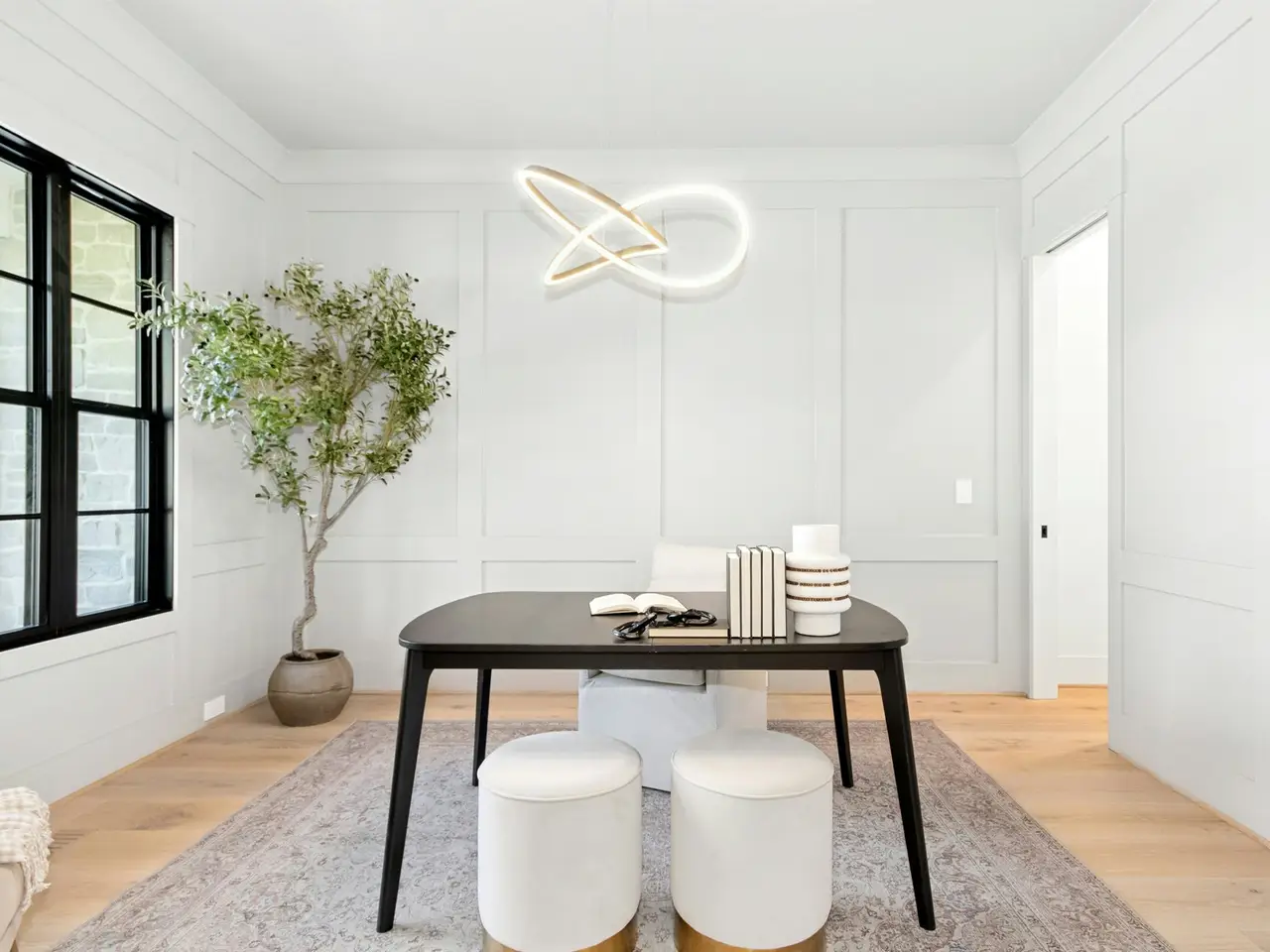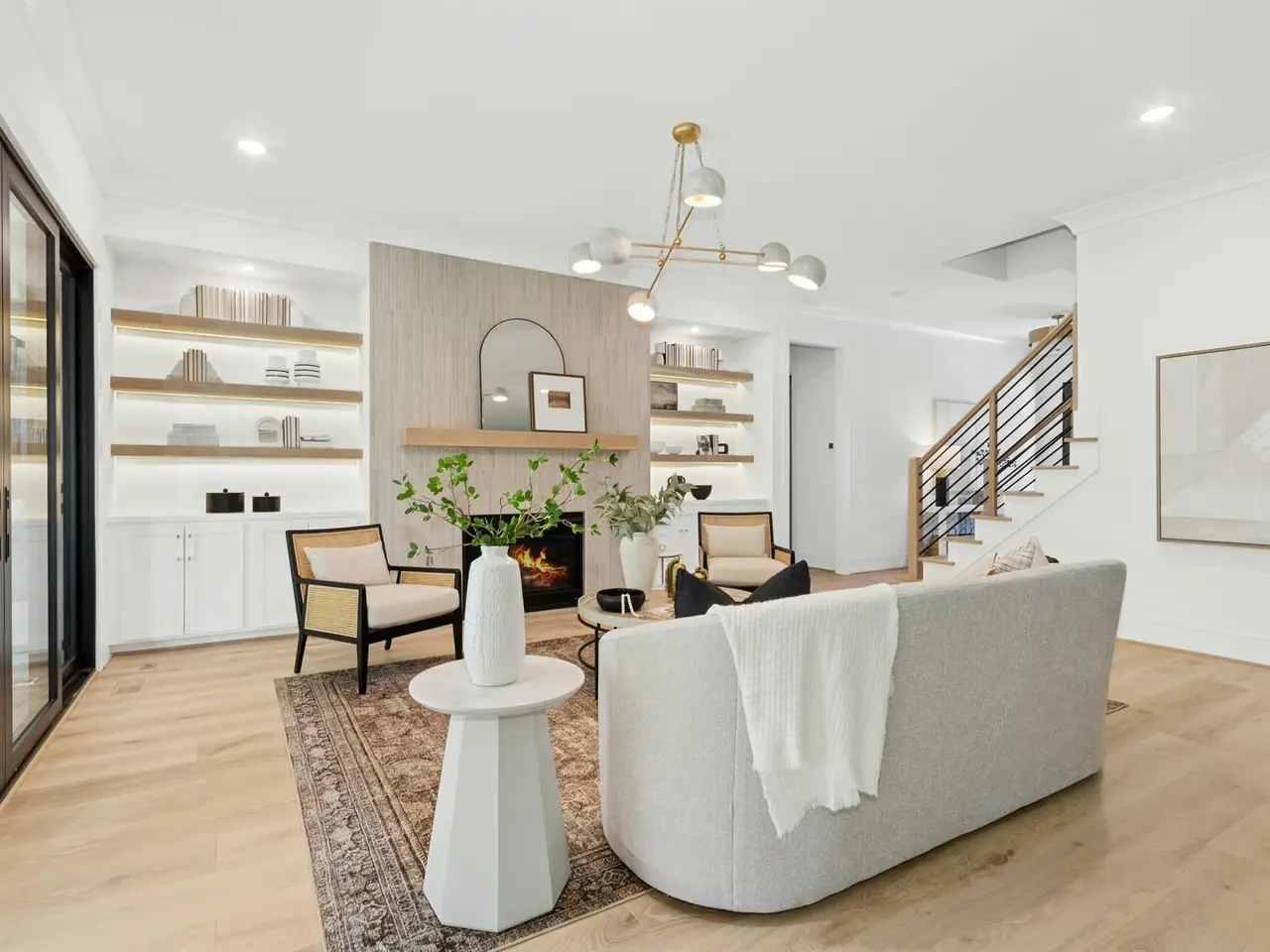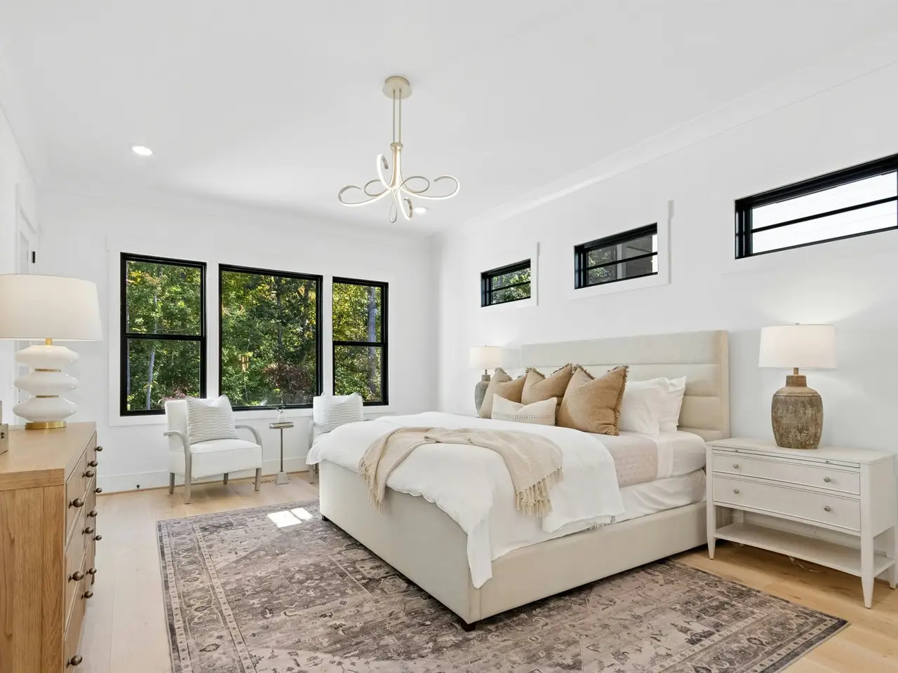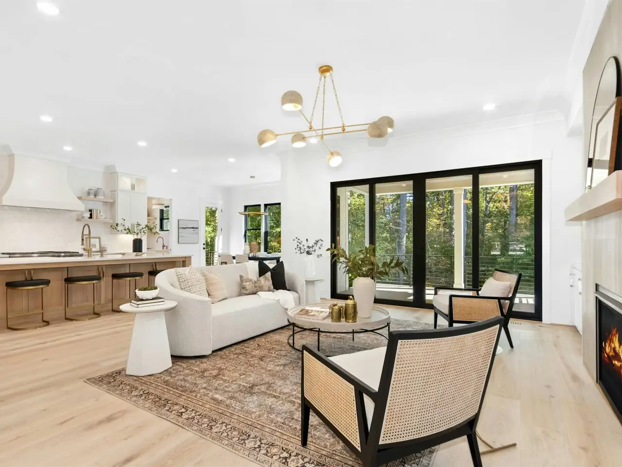 Step into this stunning newly constructed 4-bedroom home, where modern luxury and thoughtful design come together at every turn. The inviting exterior, accented with natural stone and sleek black windows, sets the tone for a residence that perfectly balances elegance and comfort. Inside, 9'' wide-plank French white oak floors, designer lighting, and a fluted tile gas fireplace create a warm, sophisticated ambiance. The gourmet kitchen is a chef's dream, featuring quartz countertops, a classic farm sink, Thermador appliances, and a generous scullery with beverage and wine fridge and ample storage. The first-floor primary suite offers dual custom walk-in closets and a spa-like bath with a freestanding tub, oversized frameless shower, and dual vanities. Additional living spaces include a versatile office, three upstairs ensuite bedrooms with walk-in closets, a cozy niche, flexible media and workout/play areas, and a fully framed basement ready for future expansion. For outdoor enjoyment, a spacious French white oak TimberTech deck with a gas fireplace, rear patio with premium pavers, and a pool-ready, wooded backyard within a protected Tree Conservation Area provide privacy, beauty, and endless possibilities. Combining style, comfort, and functionality, this home is a rare opportunity to experience the best of modern living in a beautifully crafted space.