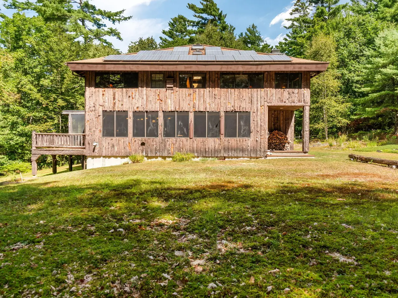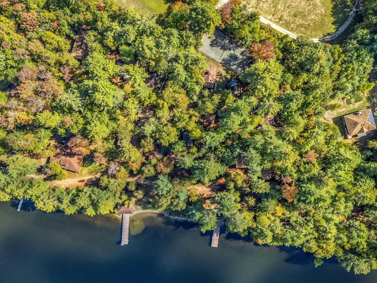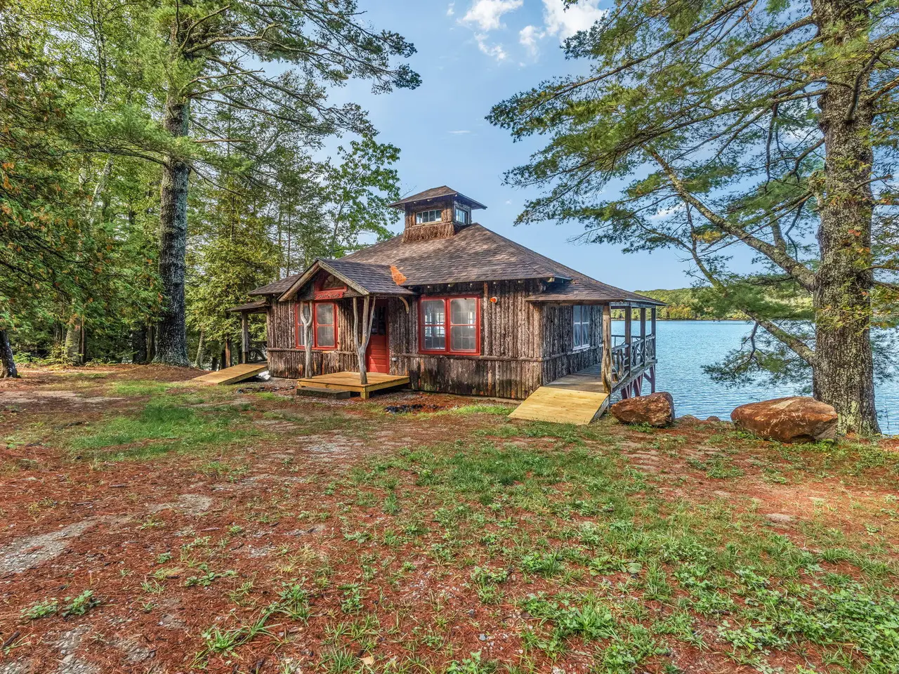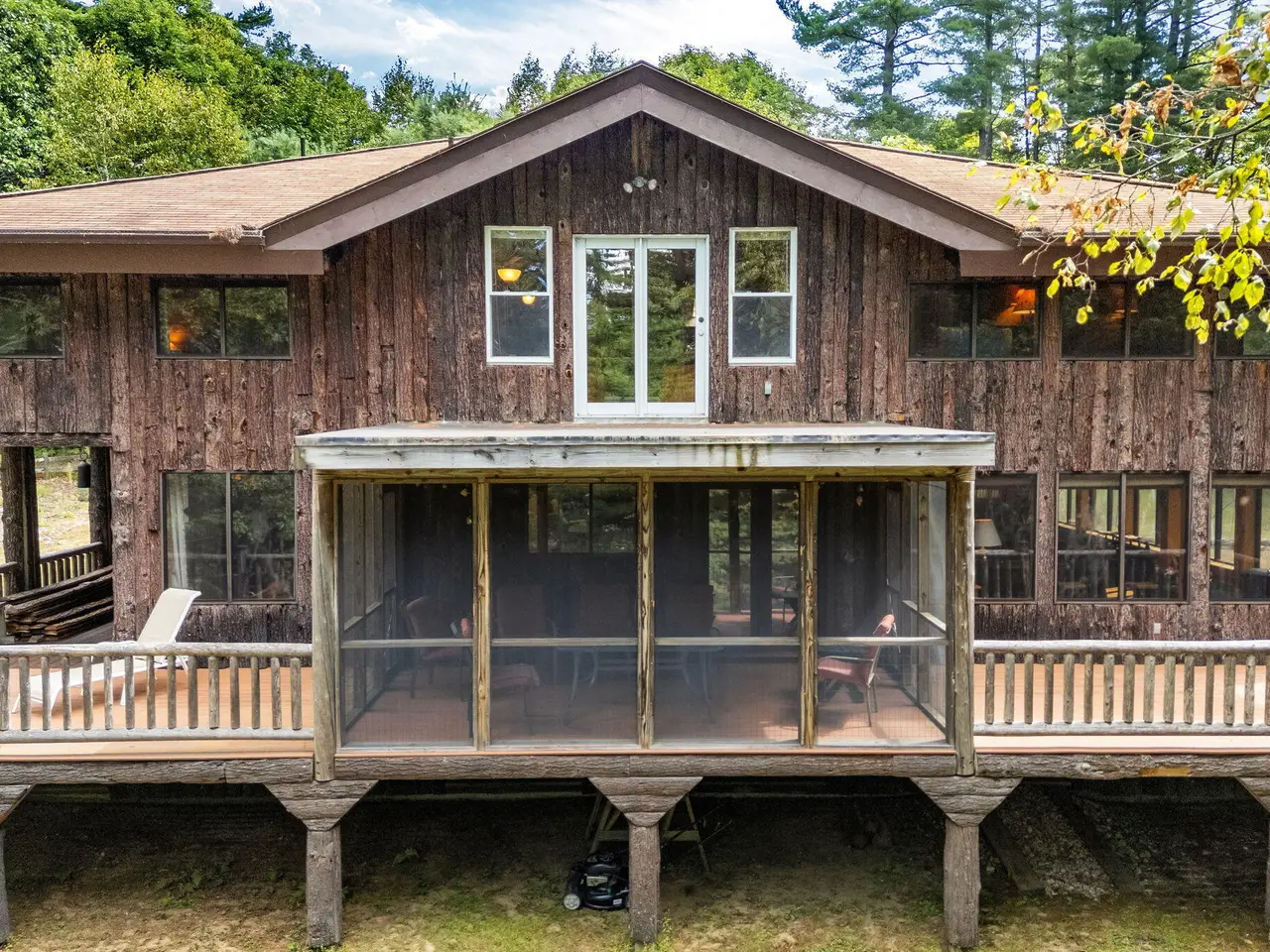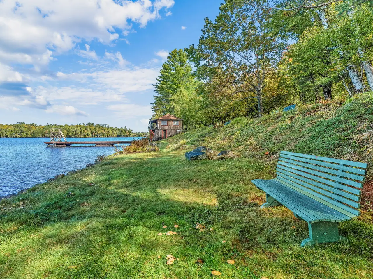 LOVEJOY POND Magnificent custom built Maine lodge architecturally designed to provide that classic, rustic feel with all the modern day amenities & system! Originally the Menatoma Camp ''Lodge'' sadly destroyed in a fire, this 2001 structure was built to encompass everything it means to be in nature at the lake with loved ones! The central living room is a wonderful place to gather around the gorgeous natural stone fireplace that reaches to a lofty ceiling with grand staircases on each side. Open game room & two dedicated dining areas adjacent to a fully equipped kitchen is ideal for entertaining large groups. Office/den & laundry room with half bath complete the main level, while 4 spacious bedrooms, two full baths, 2 walk-in linen closets & a nice sitting area complete the second level. Outside is a covered porch, 2 open decks & a wonderful screen porch allowing you to enjoy the outdoors while listening to the loons. The property is made up of 2 separate lots with 400' of beautiful lakefront with a gently sloping, pebble bottom swim area & private dock which can be accessed by a park-like walking path through the woods, or your own private road. While surrounded by woodlands on 3.74 acres, the rest of the association's amenities next door can easily be accessed by footpath or road. Dues include access to over 36 acres, 770' of shared lakefront with a sandy beach, protected swimming area with float, 2 large permanent docks, swim float & diving platform, Dining Hall, Laundry Building, Craft Shop, Tennis/Basketball/Pickleball Courts, Baseball Field, dumpster, grounds & tree service. Lovejoy is a beautiful lake with no public boat ramp, no invasive aquatic plants & excellent sport fishing with breeding pairs of loons that raise chicks on the lake each year! Lodge is fully insulated, has an 18 panel solar array supporting all needs, private septic system & access high speed internet if desired. Welcome to a comfortable, easy life at the lake with room for all!