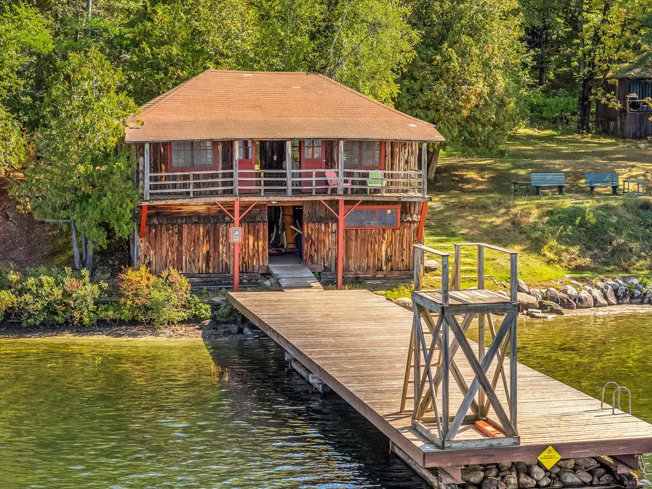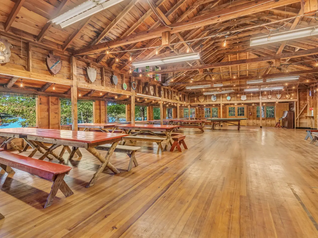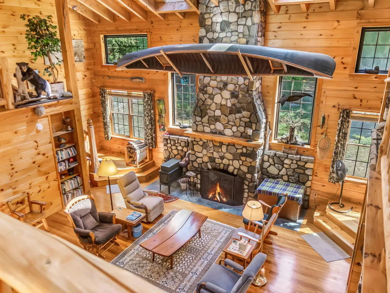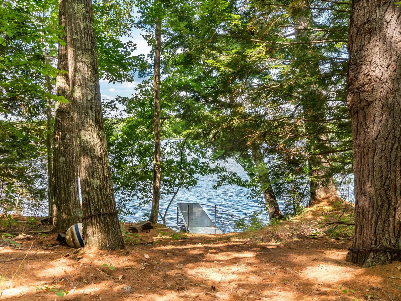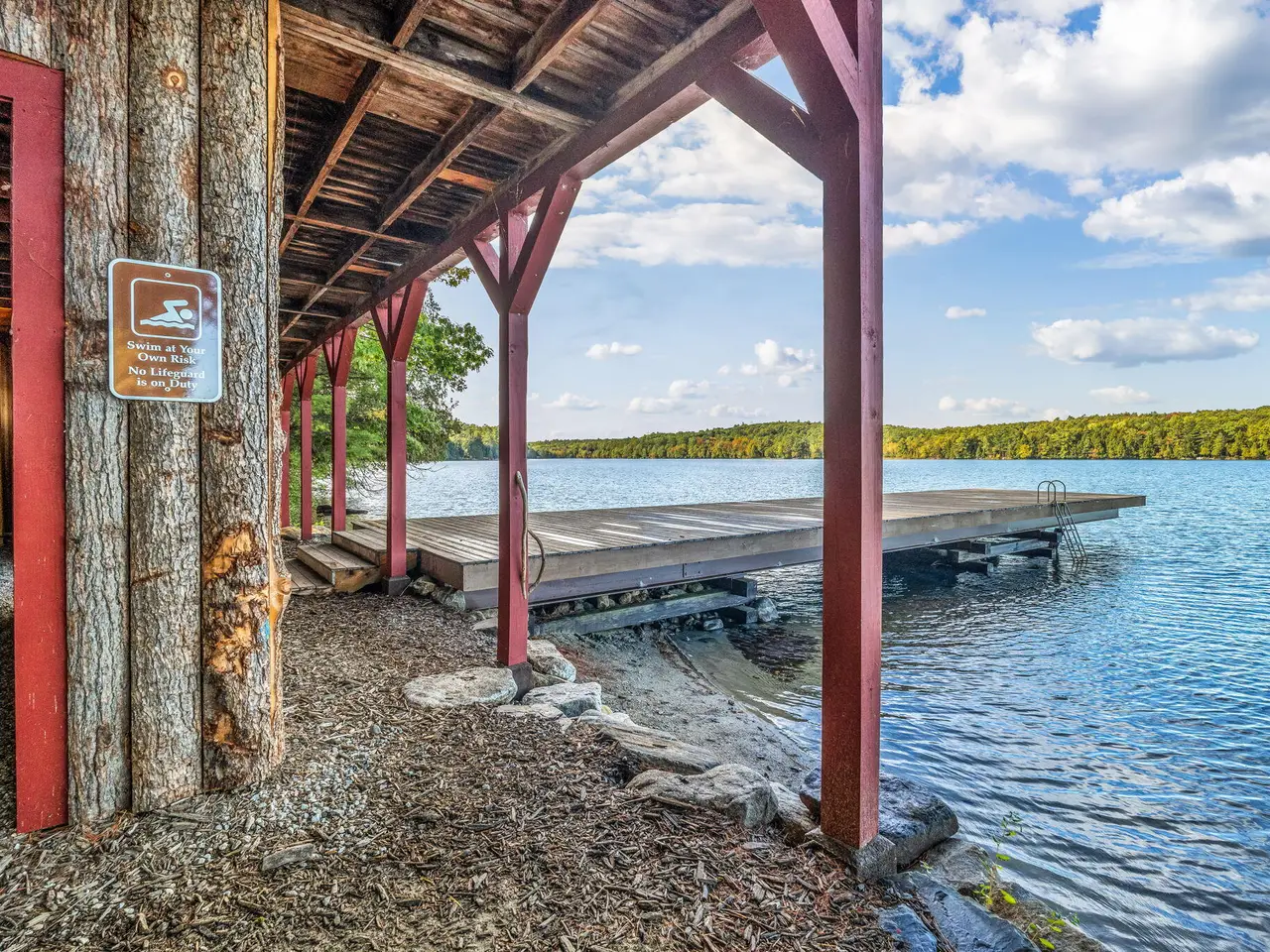 LOVEJOY POND Magnificent custom built Maine lodge architecturally designed to provide that classic, rustic feel with all the modern day amenities & system! Originally the Menatoma Camp ''Lodge'' sadly destroyed in a fire, this 2001 structure was built to encompass everything it means to be in nature at the lake with loved ones! The central living room is a wonderful place to gather around the gorgeous natural stone fireplace that reaches to a lofty ceiling with grand staircases on each side. Open game room & two dedicated dining areas adjacent to a fully equipped kitchen is ideal for entertaining large groups. Office/den & laundry room with half bath complete the main level, while 4 spacious bedrooms, two full baths, 2 walk-in linen closets & a nice sitting area complete the second level. Outside is a covered porch, 2 open decks & a wonderful screen porch allowing you to enjoy the outdoors while listening to the loons. The property is made up of 2 separate lots with 400' of beautiful lakefront with a gently sloping, pebble bottom swim area & private dock which can be accessed by a park-like walking path through the woods, or your own private road. While surrounded by woodlands on 3.74 acres, the rest of the association's amenities next door can easily be accessed by footpath or road. Dues include access to over 36 acres, 770' of shared lakefront with a sandy beach, protected swimming area with float, 2 large permanent docks, swim float & diving platform, Dining Hall, Laundry Building, Craft Shop, Tennis/Basketball/Pickleball Courts, Baseball Field, dumpster, grounds & tree service. Lovejoy is a beautiful lake with no public boat ramp, no invasive aquatic plants & excellent sport fishing with breeding pairs of loons that raise chicks on the lake each year! Lodge is fully insulated, has an 18 panel solar array supporting all needs, private septic system & access high speed internet if desired. Welcome to a comfortable, easy life at the lake with room for all!