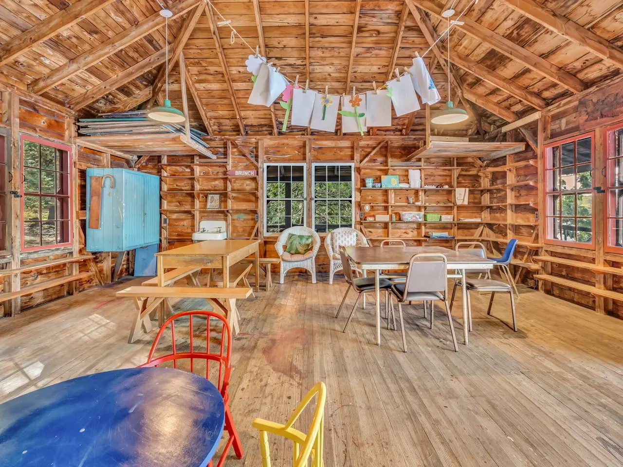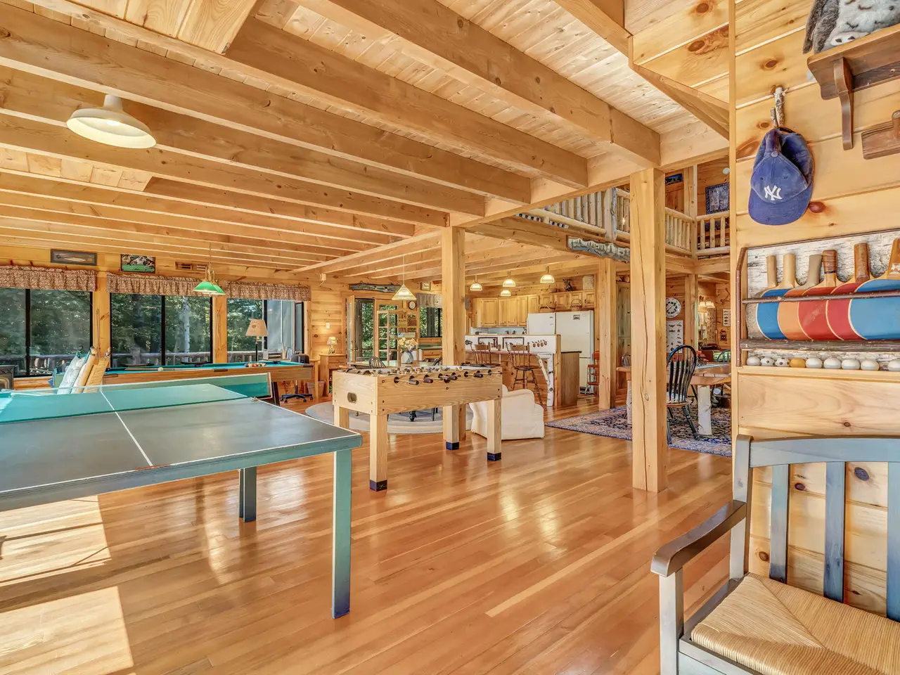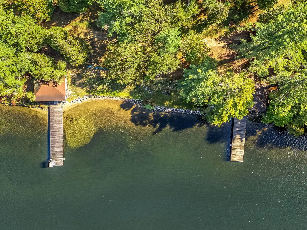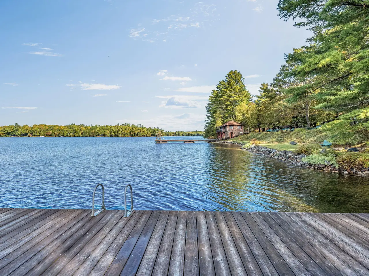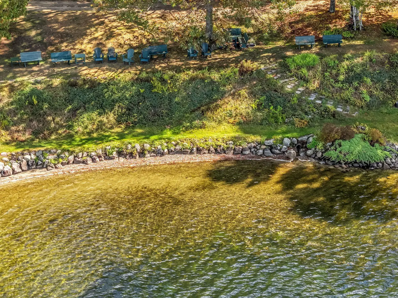 LOVEJOY POND Magnificent custom built Maine lodge architecturally designed to provide that classic, rustic feel with all the modern day amenities & system! Originally the Menatoma Camp ''Lodge'' sadly destroyed in a fire, this 2001 structure was built to encompass everything it means to be in nature at the lake with loved ones! The central living room is a wonderful place to gather around the gorgeous natural stone fireplace that reaches to a lofty ceiling with grand staircases on each side. Open game room & two dedicated dining areas adjacent to a fully equipped kitchen is ideal for entertaining large groups. Office/den & laundry room with half bath complete the main level, while 4 spacious bedrooms, two full baths, 2 walk-in linen closets & a nice sitting area complete the second level. Outside is a covered porch, 2 open decks & a wonderful screen porch allowing you to enjoy the outdoors while listening to the loons. The property is made up of 2 separate lots with 400' of beautiful lakefront with a gently sloping, pebble bottom swim area & private dock which can be accessed by a park-like walking path through the woods, or your own private road. While surrounded by woodlands on 3.74 acres, the rest of the association's amenities next door can easily be accessed by footpath or road. Dues include access to over 36 acres, 770' of shared lakefront with a sandy beach, protected swimming area with float, 2 large permanent docks, swim float & diving platform, Dining Hall, Laundry Building, Craft Shop, Tennis/Basketball/Pickleball Courts, Baseball Field, dumpster, grounds & tree service. Lovejoy is a beautiful lake with no public boat ramp, no invasive aquatic plants & excellent sport fishing with breeding pairs of loons that raise chicks on the lake each year! Lodge is fully insulated, has an 18 panel solar array supporting all needs, private septic system & access high speed internet if desired. Welcome to a comfortable, easy life at the lake with room for all!