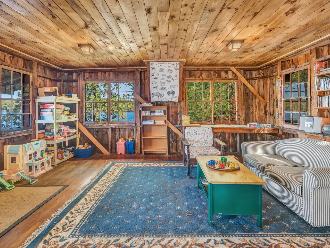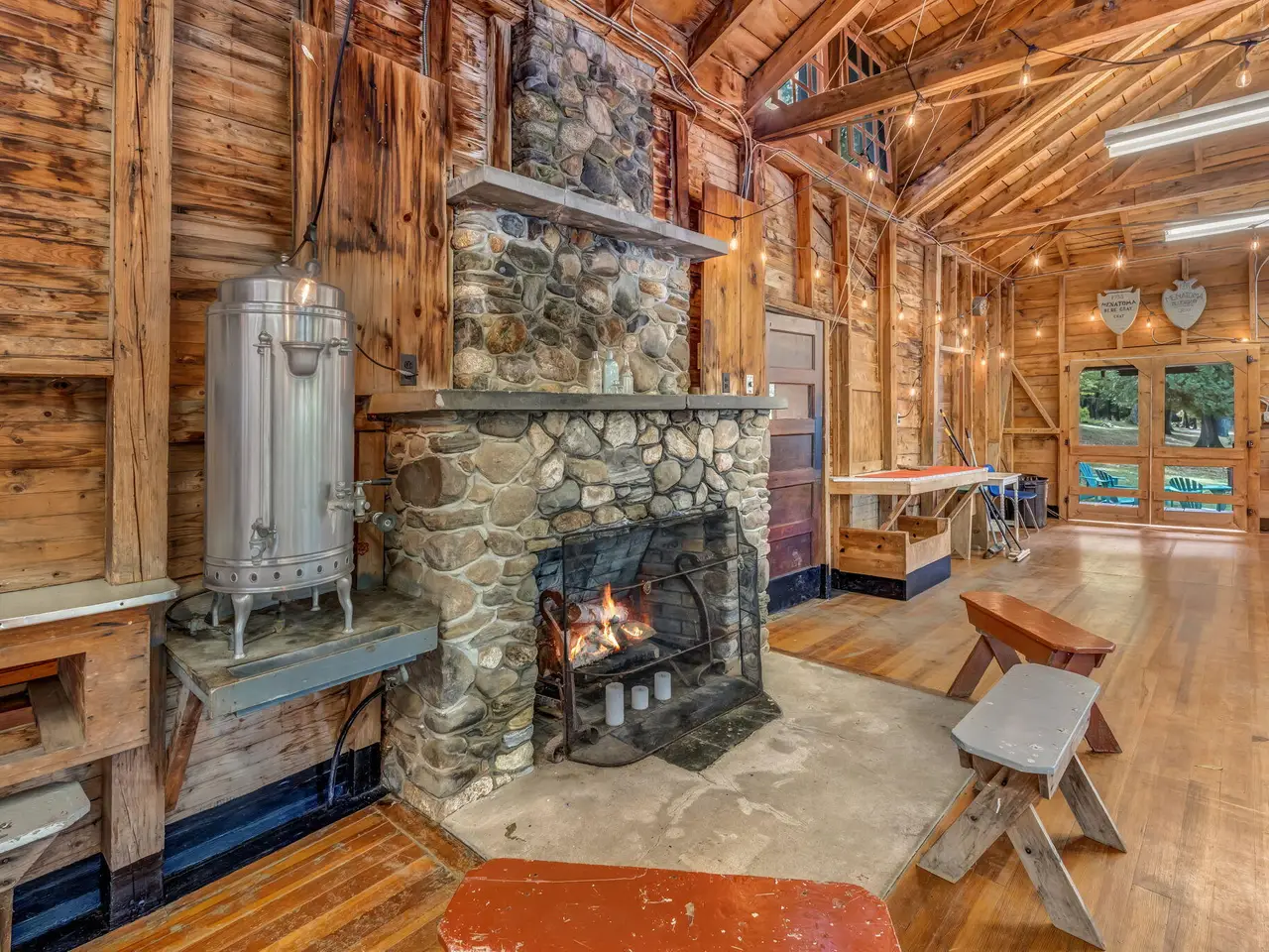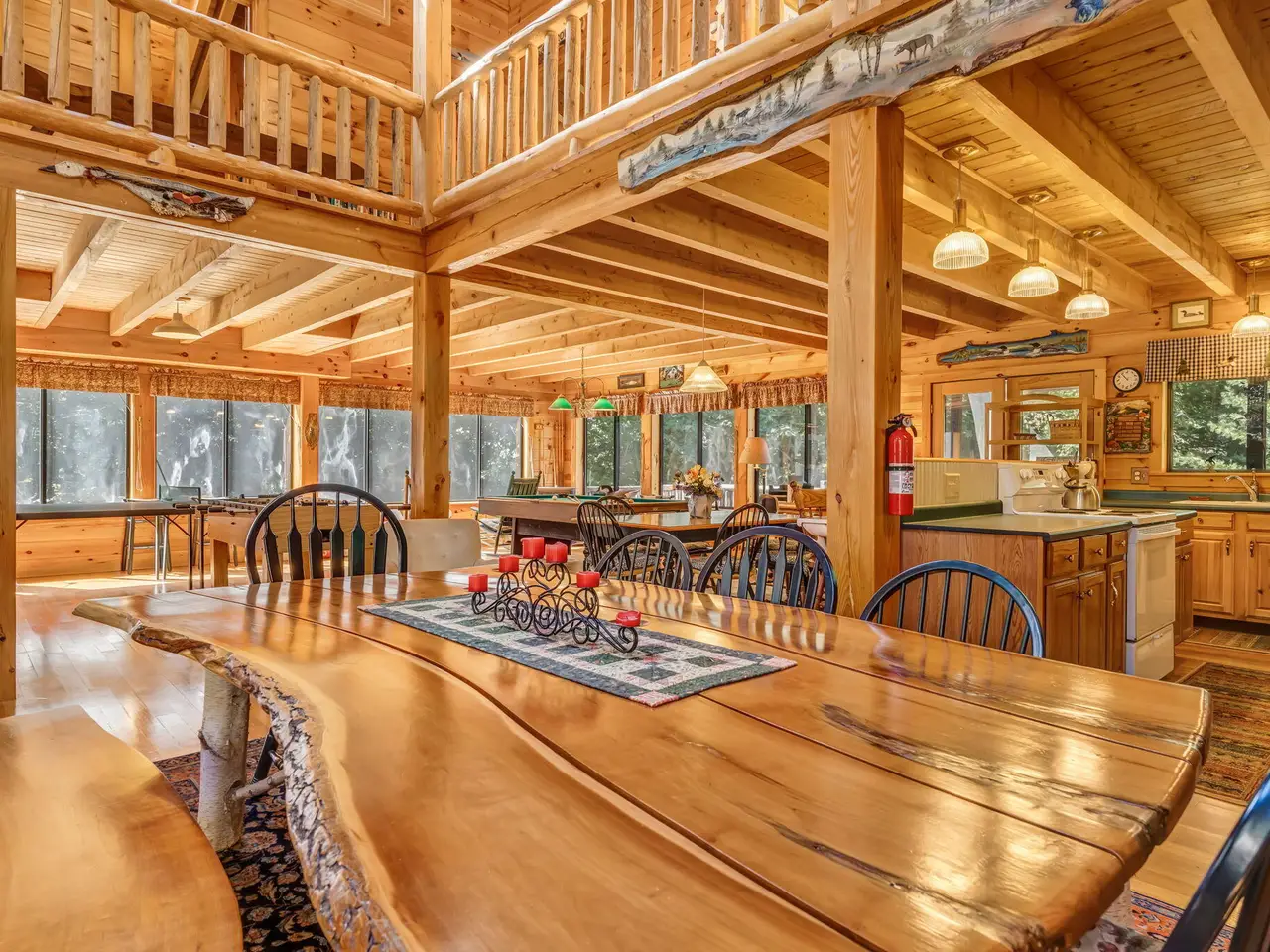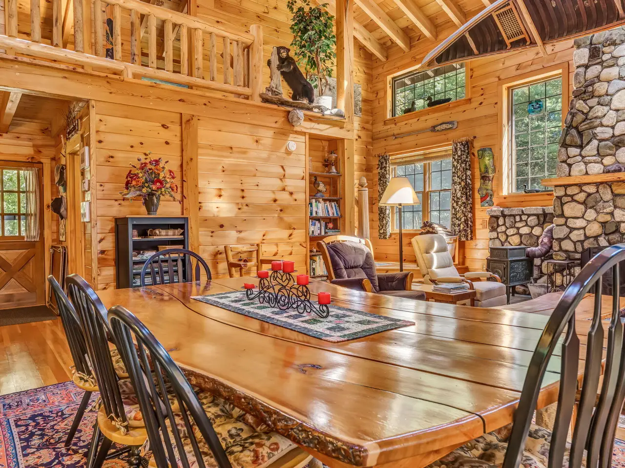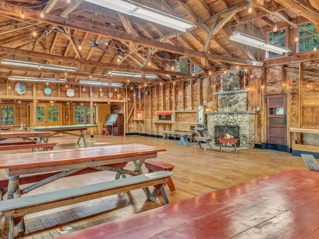 LOVEJOY POND Magnificent custom built Maine lodge architecturally designed to provide that classic, rustic feel with all the modern day amenities & system! Originally the Menatoma Camp ''Lodge'' sadly destroyed in a fire, this 2001 structure was built to encompass everything it means to be in nature at the lake with loved ones! The central living room is a wonderful place to gather around the gorgeous natural stone fireplace that reaches to a lofty ceiling with grand staircases on each side. Open game room & two dedicated dining areas adjacent to a fully equipped kitchen is ideal for entertaining large groups. Office/den & laundry room with half bath complete the main level, while 4 spacious bedrooms, two full baths, 2 walk-in linen closets & a nice sitting area complete the second level. Outside is a covered porch, 2 open decks & a wonderful screen porch allowing you to enjoy the outdoors while listening to the loons. The property is made up of 2 separate lots with 400' of beautiful lakefront with a gently sloping, pebble bottom swim area & private dock which can be accessed by a park-like walking path through the woods, or your own private road. While surrounded by woodlands on 3.74 acres, the rest of the association's amenities next door can easily be accessed by footpath or road. Dues include access to over 36 acres, 770' of shared lakefront with a sandy beach, protected swimming area with float, 2 large permanent docks, swim float & diving platform, Dining Hall, Laundry Building, Craft Shop, Tennis/Basketball/Pickleball Courts, Baseball Field, dumpster, grounds & tree service. Lovejoy is a beautiful lake with no public boat ramp, no invasive aquatic plants & excellent sport fishing with breeding pairs of loons that raise chicks on the lake each year! Lodge is fully insulated, has an 18 panel solar array supporting all needs, private septic system & access high speed internet if desired. Welcome to a comfortable, easy life at the lake with room for all!