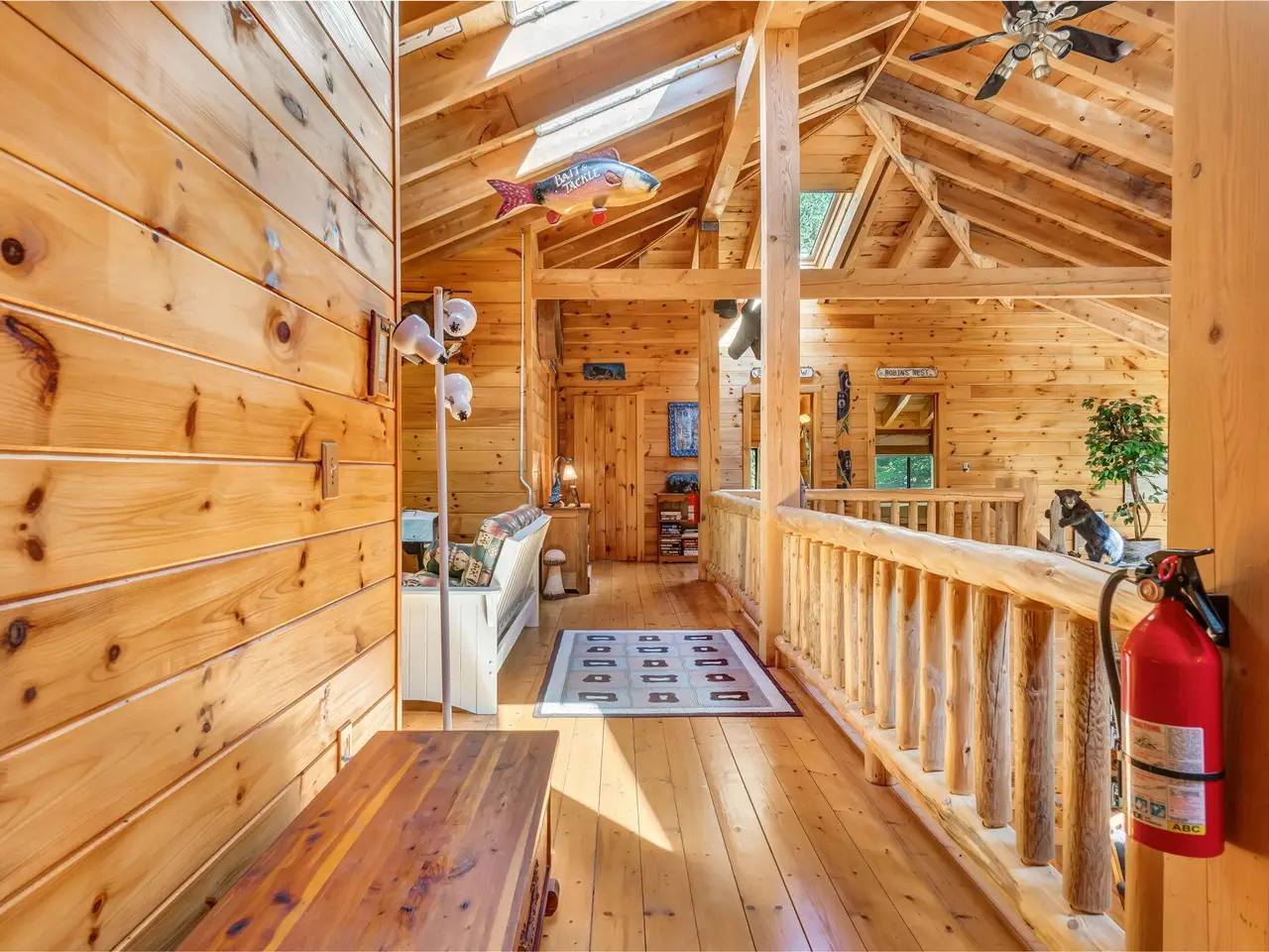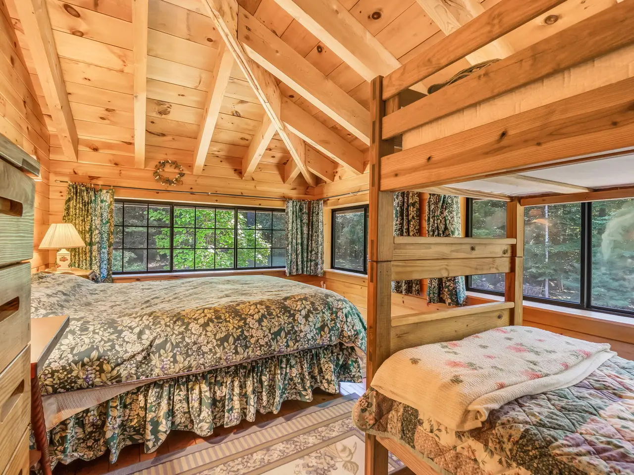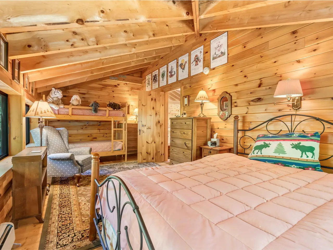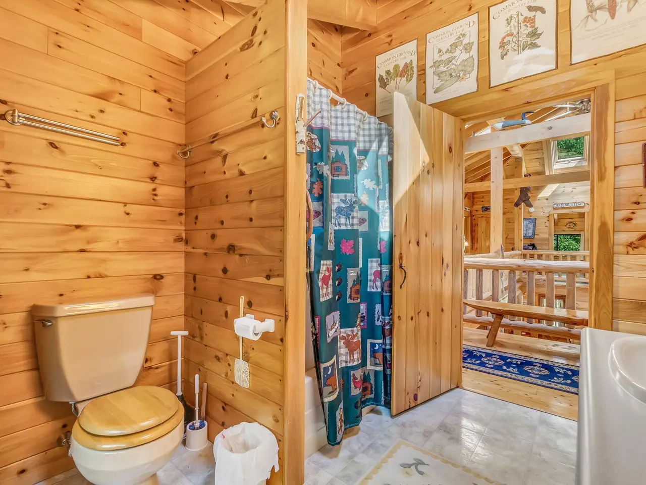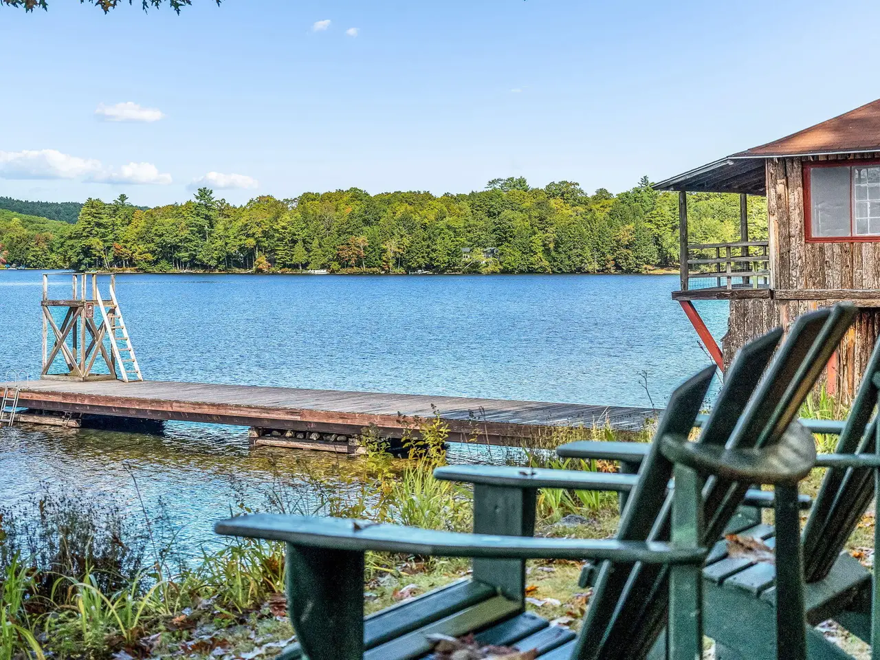 LOVEJOY POND Magnificent custom built Maine lodge architecturally designed to provide that classic, rustic feel with all the modern day amenities & system! Originally the Menatoma Camp ''Lodge'' sadly destroyed in a fire, this 2001 structure was built to encompass everything it means to be in nature at the lake with loved ones! The central living room is a wonderful place to gather around the gorgeous natural stone fireplace that reaches to a lofty ceiling with grand staircases on each side. Open game room & two dedicated dining areas adjacent to a fully equipped kitchen is ideal for entertaining large groups. Office/den & laundry room with half bath complete the main level, while 4 spacious bedrooms, two full baths, 2 walk-in linen closets & a nice sitting area complete the second level. Outside is a covered porch, 2 open decks & a wonderful screen porch allowing you to enjoy the outdoors while listening to the loons. The property is made up of 2 separate lots with 400' of beautiful lakefront with a gently sloping, pebble bottom swim area & private dock which can be accessed by a park-like walking path through the woods, or your own private road. While surrounded by woodlands on 3.74 acres, the rest of the association's amenities next door can easily be accessed by footpath or road. Dues include access to over 36 acres, 770' of shared lakefront with a sandy beach, protected swimming area with float, 2 large permanent docks, swim float & diving platform, Dining Hall, Laundry Building, Craft Shop, Tennis/Basketball/Pickleball Courts, Baseball Field, dumpster, grounds & tree service. Lovejoy is a beautiful lake with no public boat ramp, no invasive aquatic plants & excellent sport fishing with breeding pairs of loons that raise chicks on the lake each year! Lodge is fully insulated, has an 18 panel solar array supporting all needs, private septic system & access high speed internet if desired. Welcome to a comfortable, easy life at the lake with room for all!