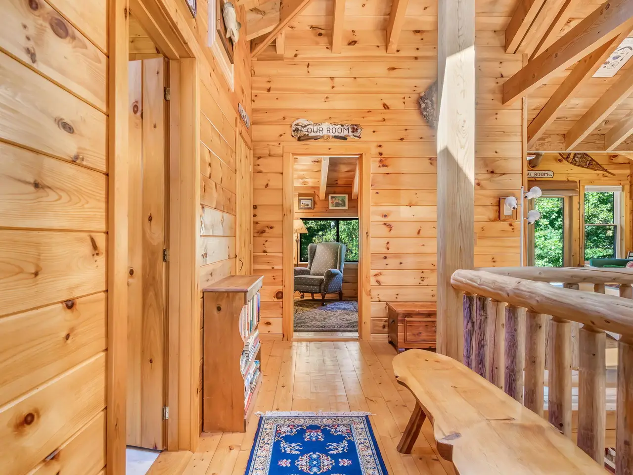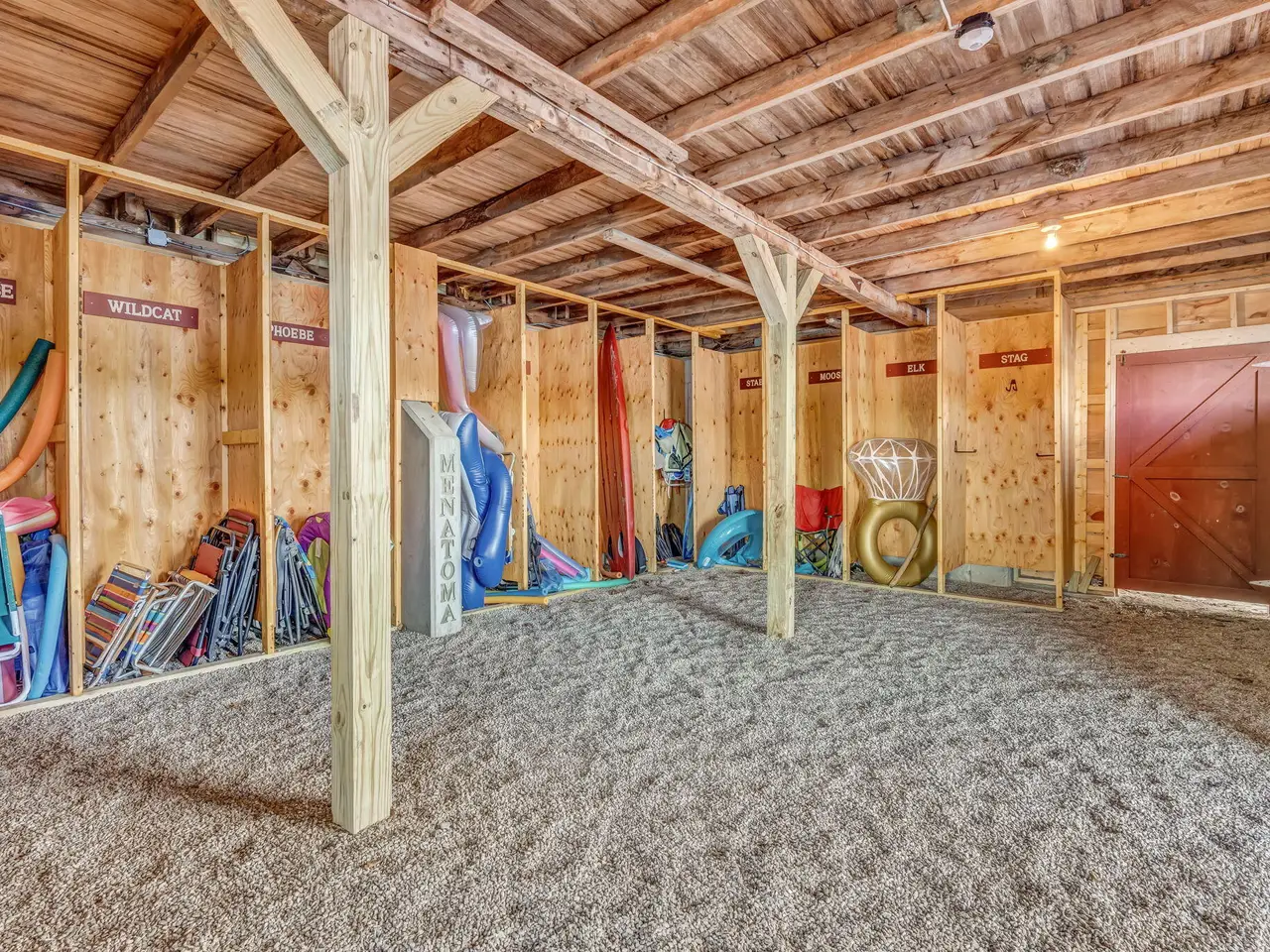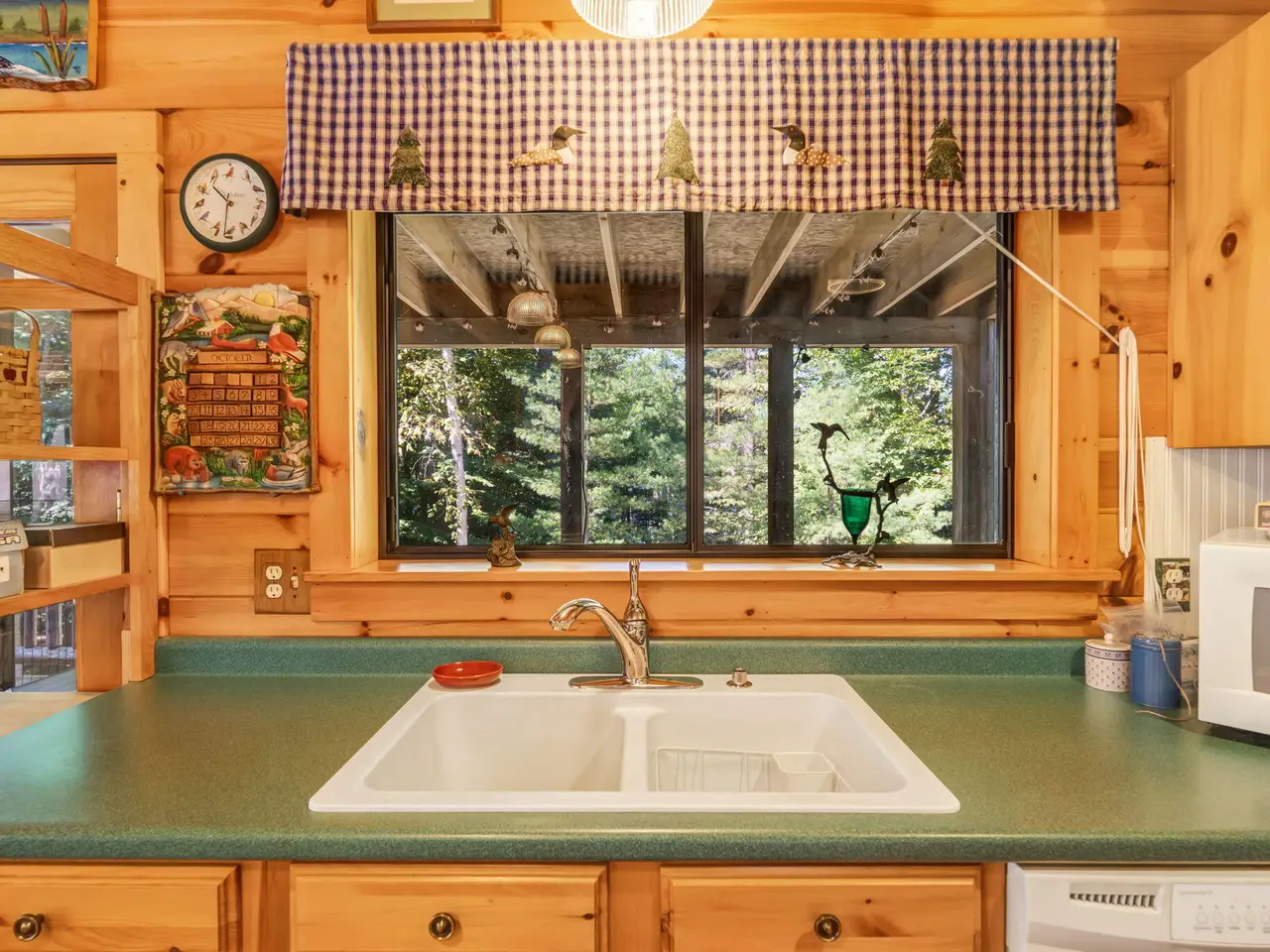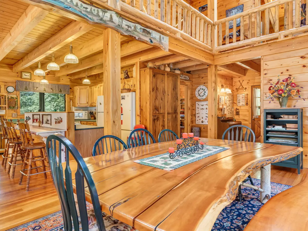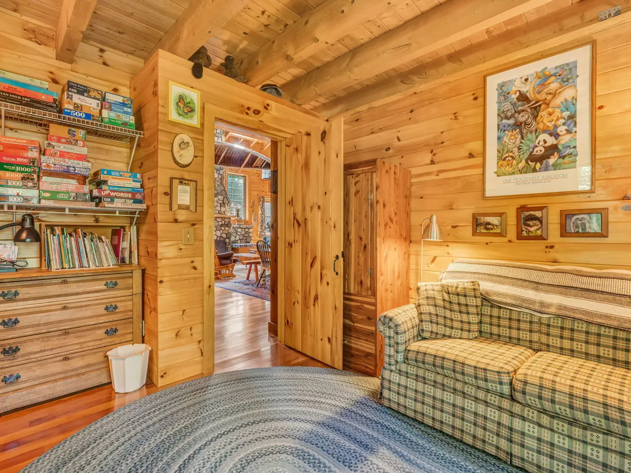 LOVEJOY POND Magnificent custom built Maine lodge architecturally designed to provide that classic, rustic feel with all the modern day amenities & system! Originally the Menatoma Camp ''Lodge'' sadly destroyed in a fire, this 2001 structure was built to encompass everything it means to be in nature at the lake with loved ones! The central living room is a wonderful place to gather around the gorgeous natural stone fireplace that reaches to a lofty ceiling with grand staircases on each side. Open game room & two dedicated dining areas adjacent to a fully equipped kitchen is ideal for entertaining large groups. Office/den & laundry room with half bath complete the main level, while 4 spacious bedrooms, two full baths, 2 walk-in linen closets & a nice sitting area complete the second level. Outside is a covered porch, 2 open decks & a wonderful screen porch allowing you to enjoy the outdoors while listening to the loons. The property is made up of 2 separate lots with 400' of beautiful lakefront with a gently sloping, pebble bottom swim area & private dock which can be accessed by a park-like walking path through the woods, or your own private road. While surrounded by woodlands on 3.74 acres, the rest of the association's amenities next door can easily be accessed by footpath or road. Dues include access to over 36 acres, 770' of shared lakefront with a sandy beach, protected swimming area with float, 2 large permanent docks, swim float & diving platform, Dining Hall, Laundry Building, Craft Shop, Tennis/Basketball/Pickleball Courts, Baseball Field, dumpster, grounds & tree service. Lovejoy is a beautiful lake with no public boat ramp, no invasive aquatic plants & excellent sport fishing with breeding pairs of loons that raise chicks on the lake each year! Lodge is fully insulated, has an 18 panel solar array supporting all needs, private septic system & access high speed internet if desired. Welcome to a comfortable, easy life at the lake with room for all!