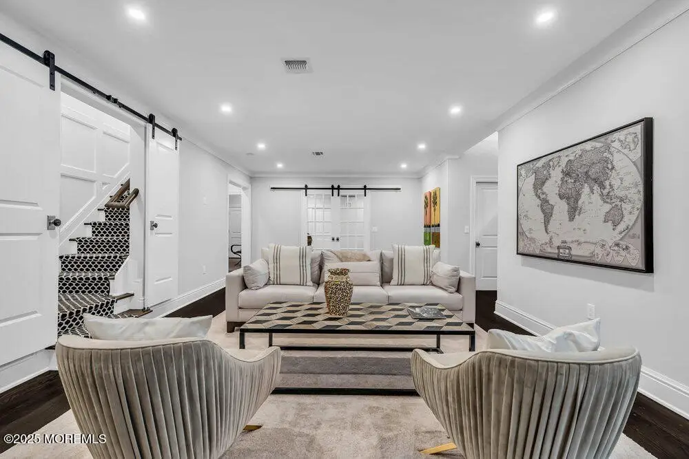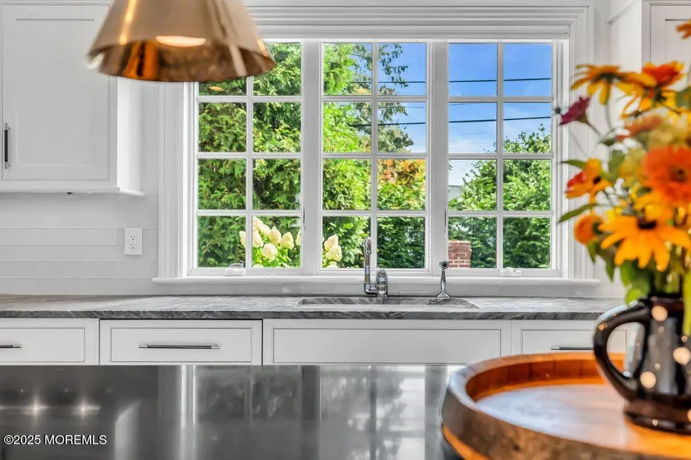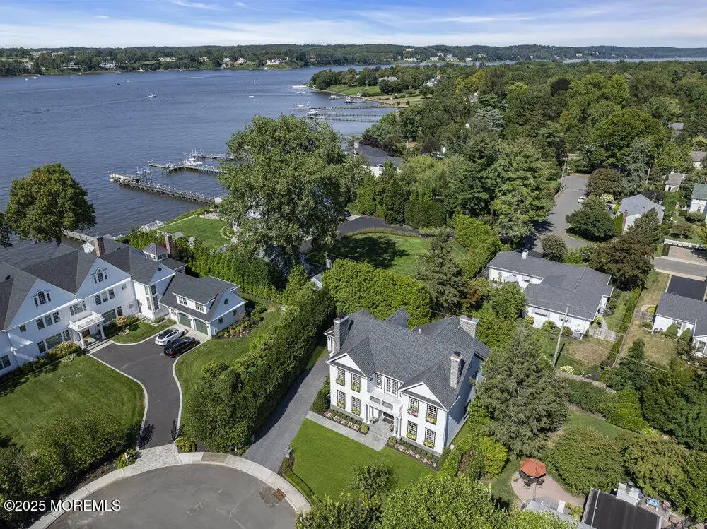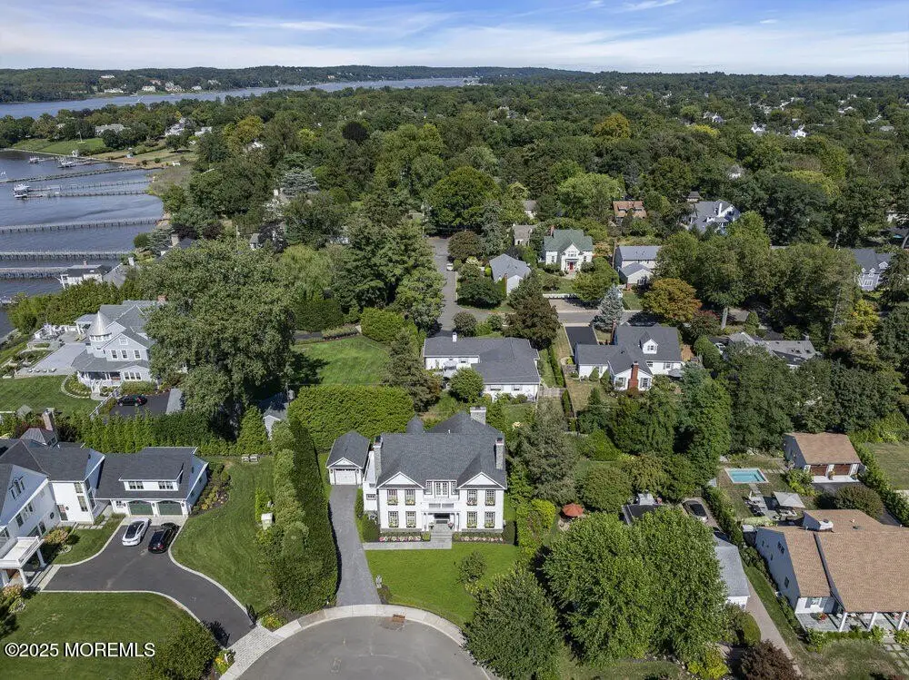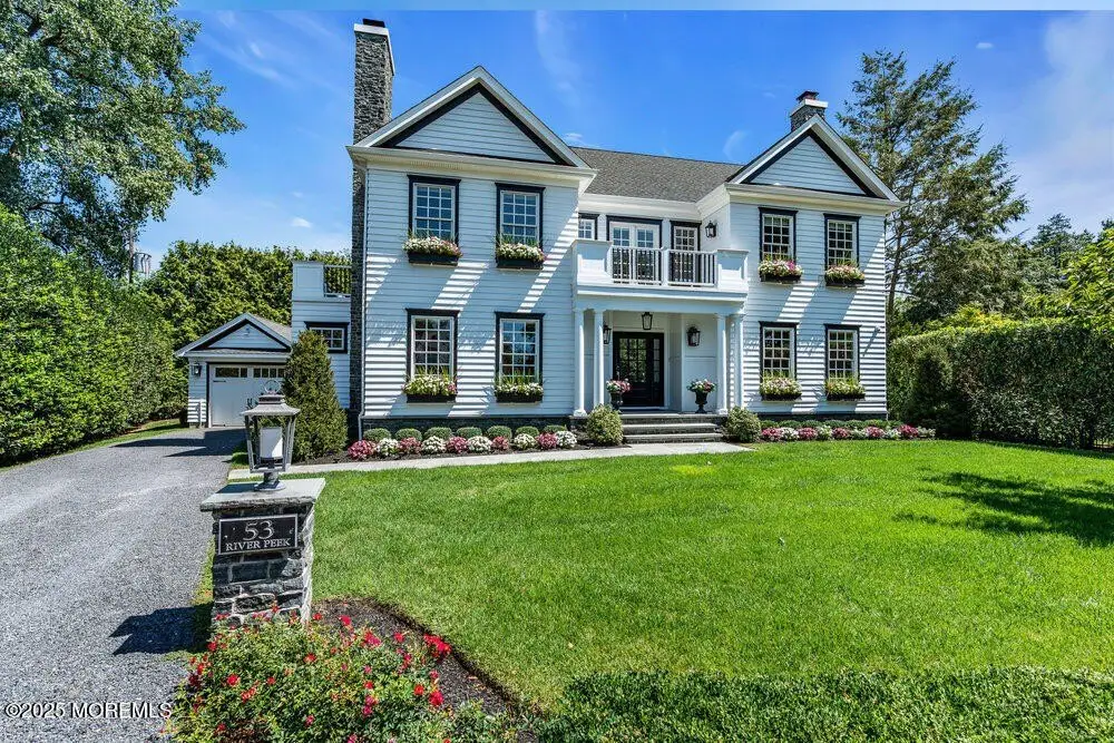 Experience ''River Peek'' a beautifully appointed, coastal-living property, with river views! Located on one of Red Bank's most desirable streets and situated at the end of a cul-de-sac, this custom-built home offers over 5400 sq feet of living space on 4 levels. There is exquisite attention to detail throughout, including superior millwork, 9 ft ceilings, and luxury finishes. The first floor captures natural lighting through its oversized windows and an open floor plan that flows seamlessly between living, dining and entertaining spaces. The light infused foyer flanks a formal living room with custom tray ceilings and an elegant Dining room that houses double Swarovski chandeliers. Both rooms provide warmth and ambience with their respective fireplaced settings. The classic kitchen includes a La Cornue (En France) range, custom refrigerator drawers, Uline freestanding ice maker, wine closet and both granite and marble counters. The Breakfast nook is purposely situated in front of a windowed wall, evoking sunshine and airiness. The kitchen transitions naturally to the kitchen lounge, with swivel club chairs that allow conversation to flow freely between the family room, Breakfast Nook and kitchen. The family room features an oversized fireplace that can be gas or wood burning, and a generous seating area to enjoy family and friends. The spacious Primary Suite is a retreat of its own, offering a fire-placed setting and French doors that lead to a private balcony. A spa-like bathroom with an oversized shower, and a generous walk-in closet completes the suite. A second ensuite bedroom, 2 additional bedrooms and a dedicated office complete the second floor. The 3rd floor bonus room offers beautiful river views from its private balcony, with 2 additional living areas. The lower level includes a family room, gym, full bath and 2 additional rooms that could be transformed into a media room, wine cellar or recreational room. There is a custom stoned walk-out access that leads to the back yard patio. Outdoor living is equally impressive, with landscaped areas and full privacy to relax and entertain. An additional bonus! Private deeded access that leads to the river is included when living on Fisher Place. Beyond the home itself, the location is unbeatable. Just minutes from downtown Red Bank, you'll have easy access to renowned restaurants, boutique shopping, theaters, and cultural events. Commuters will appreciate its close proximity to NJ Transit train service and major roadways, while beach lovers are only a short drive from the Jersey Shore. This is more than a house, its a lifestyle. A custom-built retreat with river views, tucked away on a quiet cul-de-sac, yet close to everything. Red Bank is one of New Jersey's most vibrant and sought-after towns.
