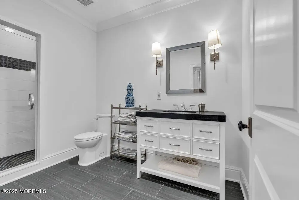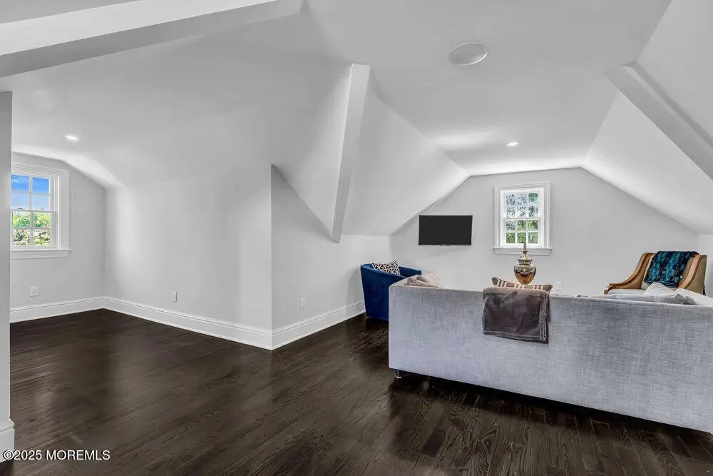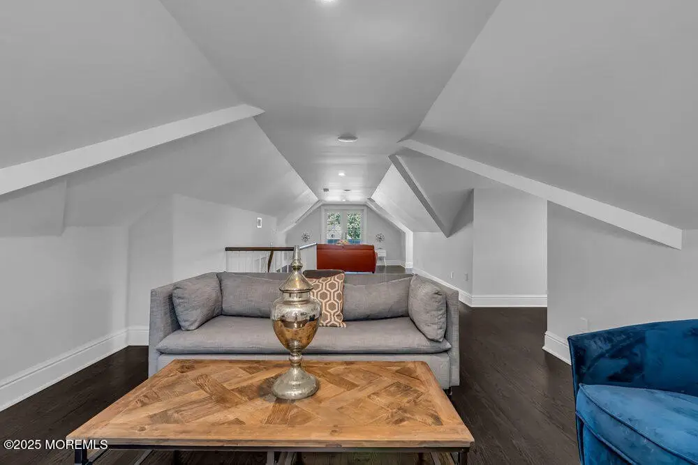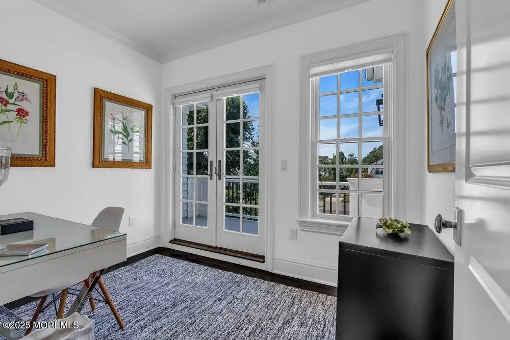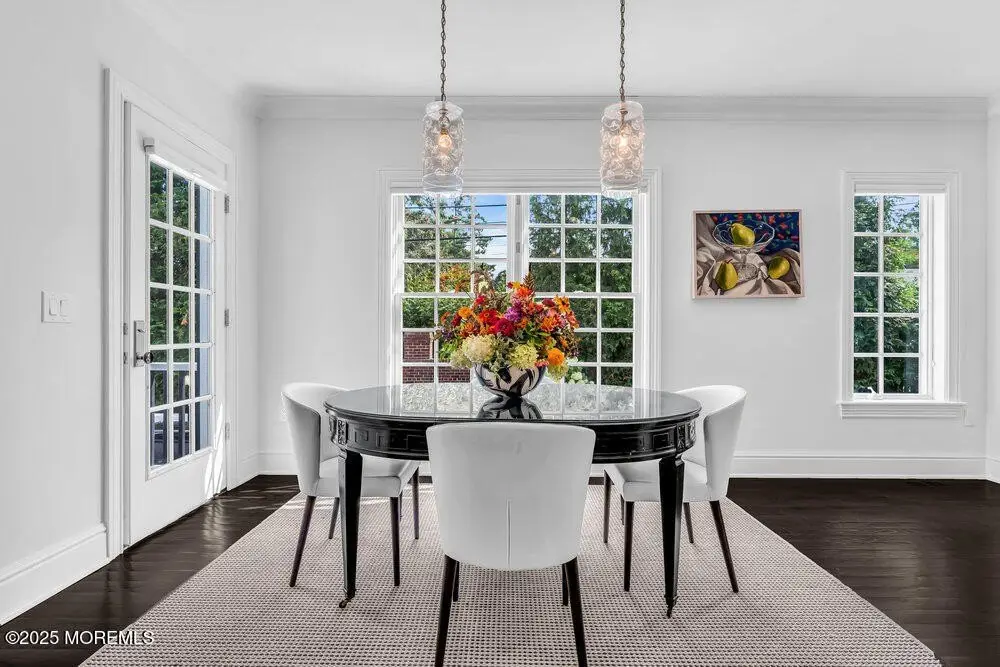 Experience ''River Peek'' a beautifully appointed, coastal-living property, with river views! Located on one of Red Bank's most desirable streets and situated at the end of a cul-de-sac, this custom-built home offers over 5400 sq feet of living space on 4 levels. There is exquisite attention to detail throughout, including superior millwork, 9 ft ceilings, and luxury finishes. The first floor captures natural lighting through its oversized windows and an open floor plan that flows seamlessly between living, dining and entertaining spaces. The light infused foyer flanks a formal living room with custom tray ceilings and an elegant Dining room that houses double Swarovski chandeliers. Both rooms provide warmth and ambience with their respective fireplaced settings. The classic kitchen includes a La Cornue (En France) range, custom refrigerator drawers, Uline freestanding ice maker, wine closet and both granite and marble counters. The Breakfast nook is purposely situated in front of a windowed wall, evoking sunshine and airiness. The kitchen transitions naturally to the kitchen lounge, with swivel club chairs that allow conversation to flow freely between the family room, Breakfast Nook and kitchen. The family room features an oversized fireplace that can be gas or wood burning, and a generous seating area to enjoy family and friends. The spacious Primary Suite is a retreat of its own, offering a fire-placed setting and French doors that lead to a private balcony. A spa-like bathroom with an oversized shower, and a generous walk-in closet completes the suite. A second ensuite bedroom, 2 additional bedrooms and a dedicated office complete the second floor. The 3rd floor bonus room offers beautiful river views from its private balcony, with 2 additional living areas. The lower level includes a family room, gym, full bath and 2 additional rooms that could be transformed into a media room, wine cellar or recreational room. There is a custom stoned walk-out access that leads to the back yard patio. Outdoor living is equally impressive, with landscaped areas and full privacy to relax and entertain. An additional bonus! Private deeded access that leads to the river is included when living on Fisher Place. Beyond the home itself, the location is unbeatable. Just minutes from downtown Red Bank, you'll have easy access to renowned restaurants, boutique shopping, theaters, and cultural events. Commuters will appreciate its close proximity to NJ Transit train service and major roadways, while beach lovers are only a short drive from the Jersey Shore. This is more than a house, its a lifestyle. A custom-built retreat with river views, tucked away on a quiet cul-de-sac, yet close to everything. Red Bank is one of New Jersey's most vibrant and sought-after towns.