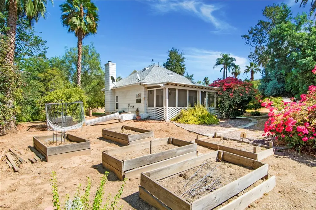 A separate two-bedroom, one-bath guest house with its own kitchen and living room provides flexible living options and adds significant versatility to the property. Outdoors, a sparkling saltwater pool and cabana with owned solar are complemented by an expansive orchard of more than sixty fruit trees, including citrus, apple, guava, jujube, lemon, pomegranate, grapefruit & olive. Raised garden beds provide an ideal space for fresh produce.