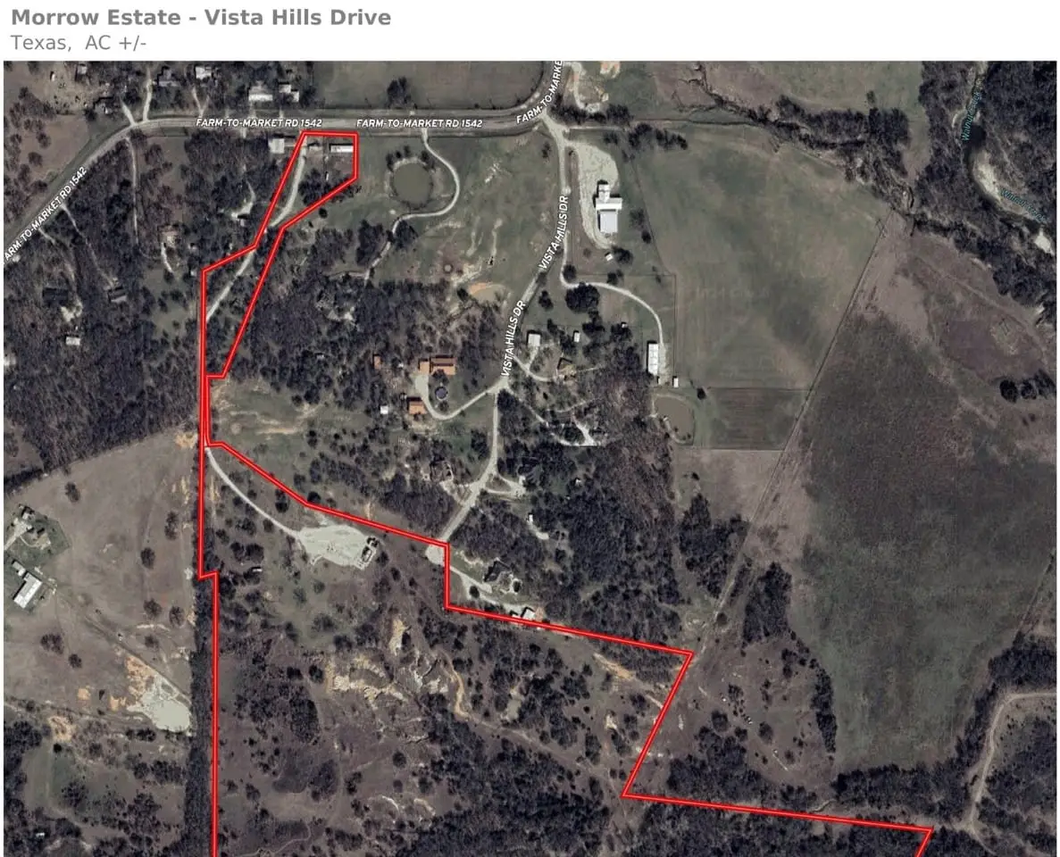 Beautiful acreage located in the City of Reno! This approximate 95 acre tract features road frontage on FM 1542 and Vista Hills Drive dead ends into the property. This gorgeous property has varied terrain, magnificent hardwoods, a seasonal creek, and offers extreme tranquility considering such an ideal location. There are two commercial buildings up front that also convey with the property. This is an excellent opportunity for Development, or would make an excellent ranch with great proximity to Fort Worth and all the local attractions!