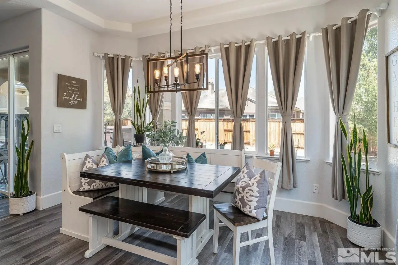 The entry foyer has all the WOW factor leading to this Elegantly designed 4 bed/4 bath home in the gated Damonte Ranch! A must see state-of-the-art entertainment system! One bedroom conveniently located downstairs, also suitable for an office/Den. Iron spindle staircase paves the way to the Primary Suite. The additional 2 bedrooms are mini-suites with their own bathrooms. The colossal bonus room is ideal for a playroom/gym. The LVP floor has a modern grey accent and the granite slab kitchen island is impressive!