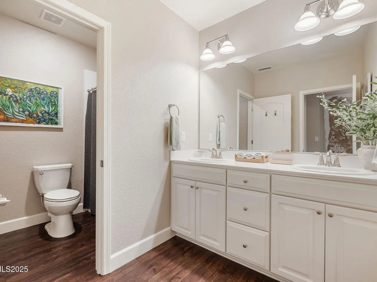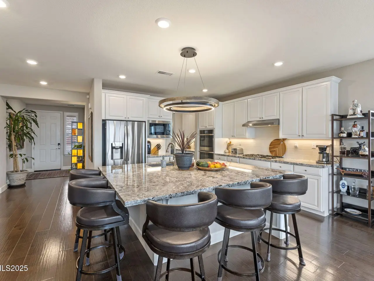 Exceptional Custom Home with Over 200K in Upgrades! Unmatched panoramic views of Mt. Rose and Downtown Reno! Energy-efficient features include a tankless water heater, dual-pane low-E windows, a Honeywell Smart Thermostat, Ring Doorbell, and a 14 SEER HVAC system—providing year-round comfort and savings. Additional upgrades include custom gutters, a whole-home upgraded Wi-Fi system, and integrated smart-home technology for seamless modern living. Enjoy two outdoor living spaces, including an elevated deck, perfectly positioned to capture the stunning views—ideal for entertaining or unwinding. The finished garage features epoxy flooring, built-in shelving, and abundant storage—both stylish and functional. Professionally designed landscaping by Fire Sky Design and NVision Landscaping creates a tranquil outdoor retreat, complete with four 8x2 raised garden beds and one 3x4 raised garden bed. Unwind in the HotSpring spa or the fully finished outdoor sauna for year-round relaxation. A highlight of this home is the multigenerational living area, complete with a private kitchenette, upgraded cabinetry, granite counters, stainless steel appliances, and a full bathroom—ideal for guests, extended family, or independent living. Inside, designer flooring flows throughout, including hardwood, tile, and plush carpet, complemented by elegant Alaska White granite countertops. The gourmet kitchen features GE Profile stainless steel appliances, 42-inch custom cabinetry, granite slab counters, and a striking tile backsplash. The primary suite is designed for rest and renewal, offering dual vanities, a soaking tub, and an oversized walk-in closet. Custom designer lighting and LED chandeliers enhance every space with warmth and elegance, while D-LUX Window Coverings and plantation shutters complete the sophisticated design. RV access/storage measuring 12x22 adds exceptional convenience to this stunning home.