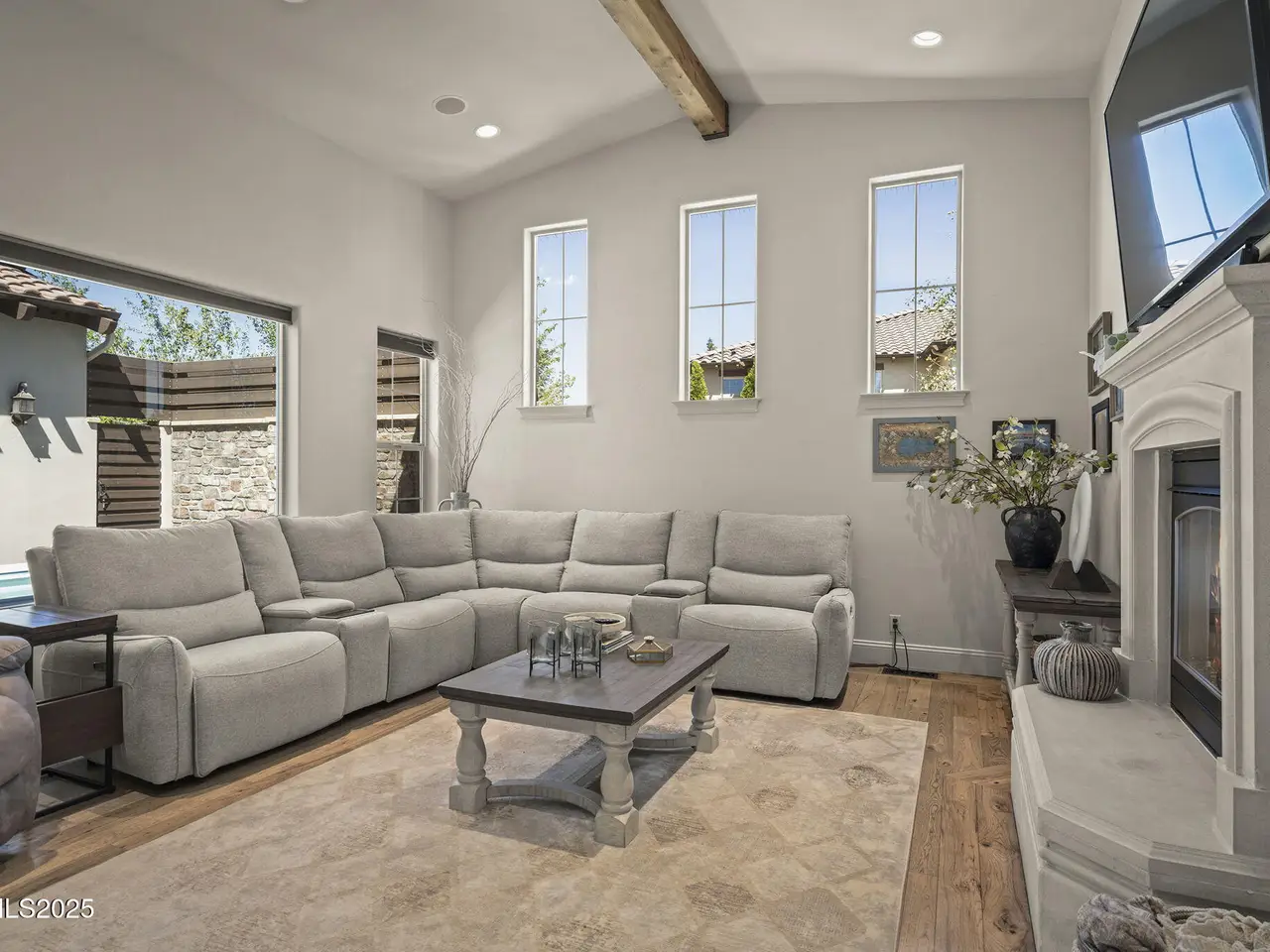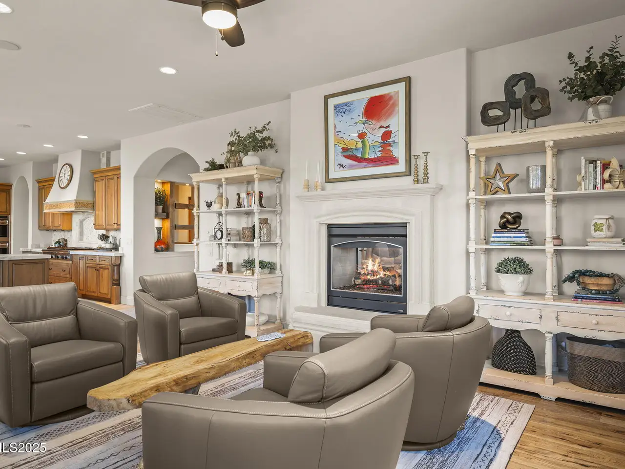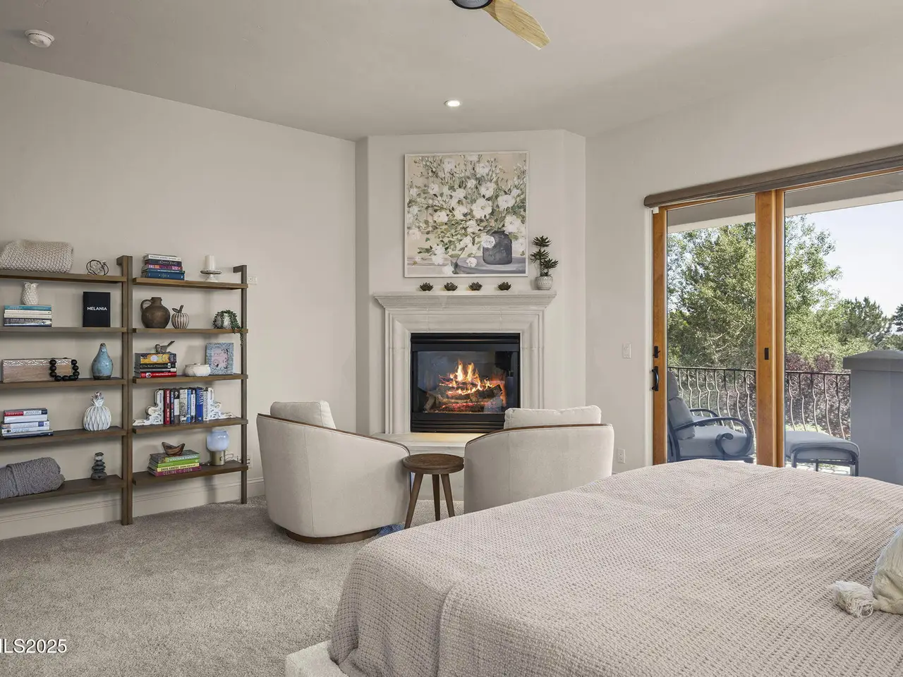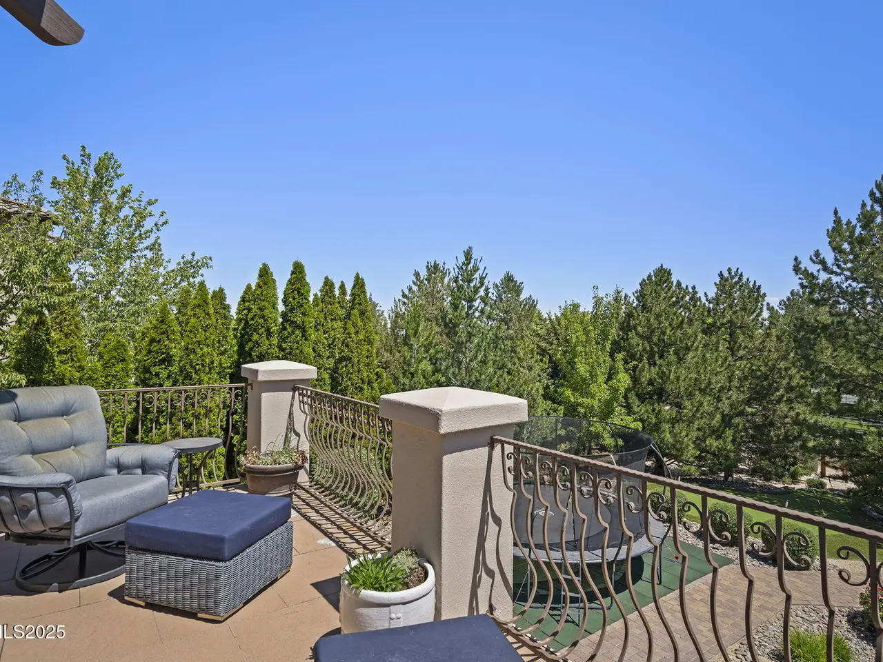Welcome to this stunning luxury estate property, located in the prestigious Saddlehorn community. Nestled on a serene cul-de-sac, this exquisite 5 bedroom, 5 1/2 bath residence has undergone a multitude of designer renovations, offering the finest in upscale living. The chef's kitchen is a true showpiece—featuring leathered Taj Mahal quartzite countertops, two built-in refrigerators, dual Bosch dishwashers, warming drawers, added custom soft-close cabinetry, and three spacious pantries. Expanded custom built-ins elevate both functionality and elegance, making this kitchen a culinary dream. Relax and unwind in the spa-inspired primary suite on the main level which includes a steam shower, gas fireplace, custom lighting, and sophisticated tilework. Downstairs you will find a spacious in-law suite including its own kitchenette with l Leather Taj Mahal quartzite counter, new sink, dishwasher, and beverage fridge- plus a versatile bonus space perfect for a game room, home theater, or additional living quarters creating the ultimate entertaining space, and two additional private bedrooms with ensuites. Additional interior highlights include a double-sided gas fireplace between the living and great rooms, a custom bunk room with exposed beam detail, a private man cave, updated designer lighting, and extensive electrical upgrades throughout. Step outside to enjoy the resort-style grounds—complete with an expanded paver patio, grand fountain, raised vegetable gardens, privacy hedging, and a swim spa with new pump & cover, custom decking for easy maintenance access. A built-in outdoor BBQ with griddle enhances alfresco living. Premium appliances include two washers, two dryers, five beverage refrigerators, and so much more. This turnkey luxury retreat combines timeless elegance with modern comfort in one of Reno's most sought-after neighborhoods. See newly remodeled upgrade list in documents for additional information.