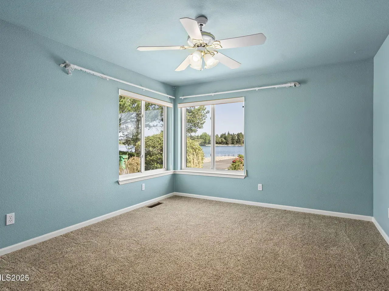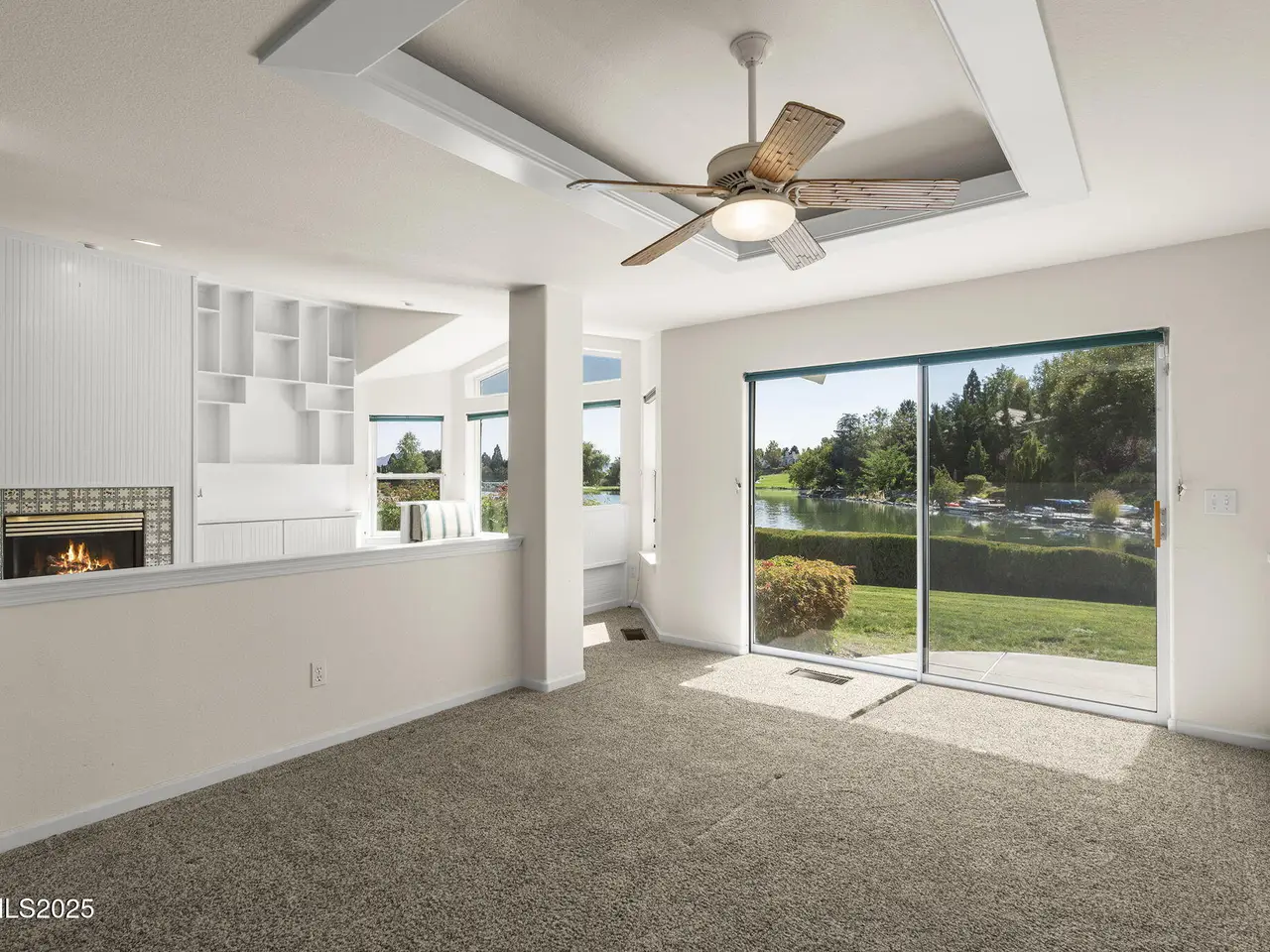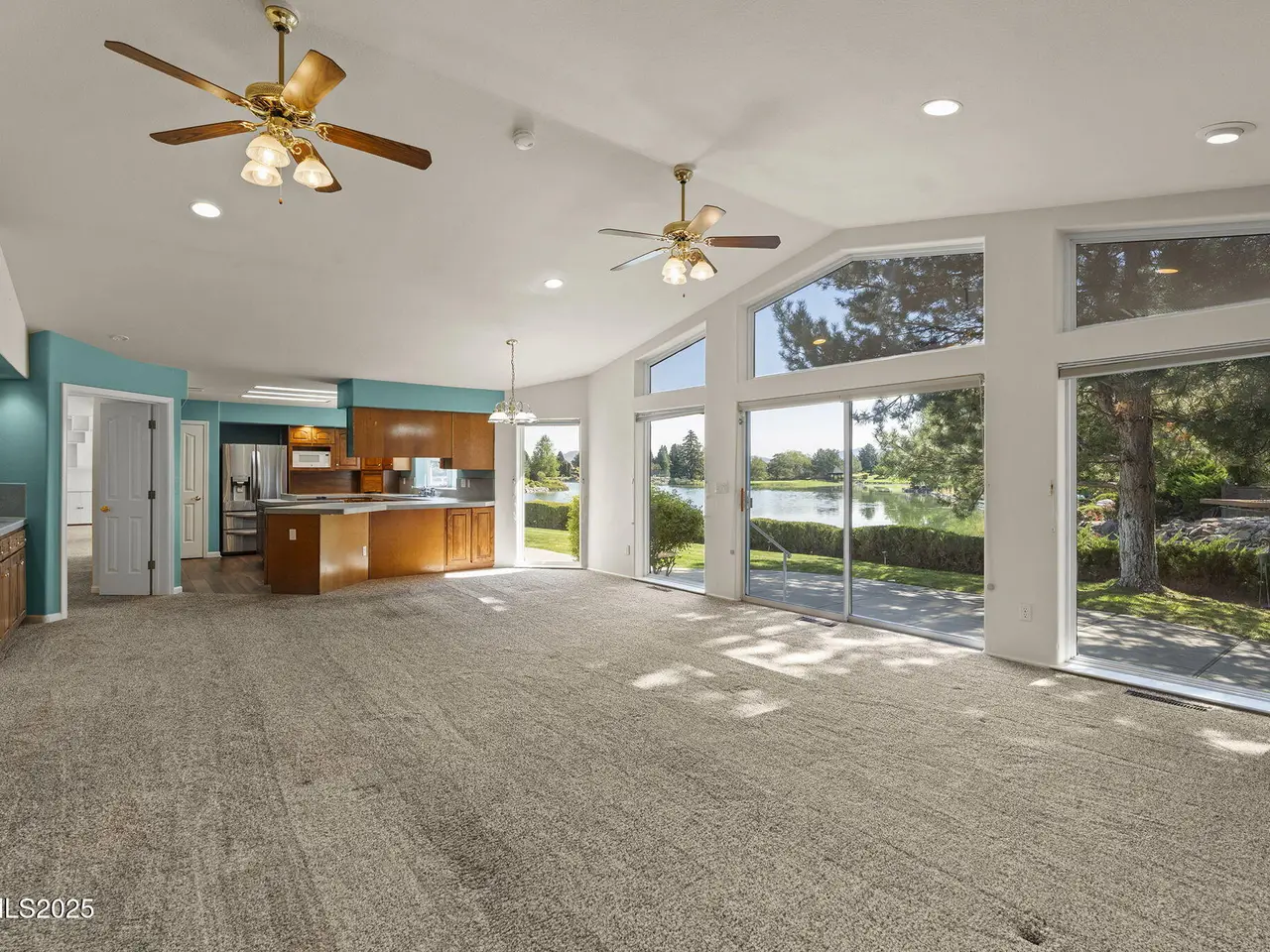 Enjoy beautiful views of peaceful Lake Stanley and the Lakeridge Golf Course island hole #15 from this 1/3 acre lakefront property. The Lake Ridge neighborhood is a private gated retreat with 24-hour security, tennis, & private marina for electric and muscle powered watercraft. Throughout this 4 bedroom, 3 bath residence, you'll find multiple living areas and three fireplaces - perfect for creating warm, inviting spaces throughout. Great for entertaining while expansive windows frame the tranquil views offering privacy within the 3-home cul-de-sac. The primary suite is spacious, with ample closet space, and the bathroom has been stripped down, offering a blank canvas for your architectural vision and plenty of potential for luxury upgrades. The property exudes a quiet charm, and could be amazing with the right touch. Outside, the landscaping is mature and there is a large 3-car garage that provides plenty of storage and work space plus a heated paver driveway so no snow shoveling is needed. This neighborhood has the feel of a private retreat, but is centrally located with close proximity to shopping, schools, dining, & less than 15 minutes from the Reno/Tahoe Airport.