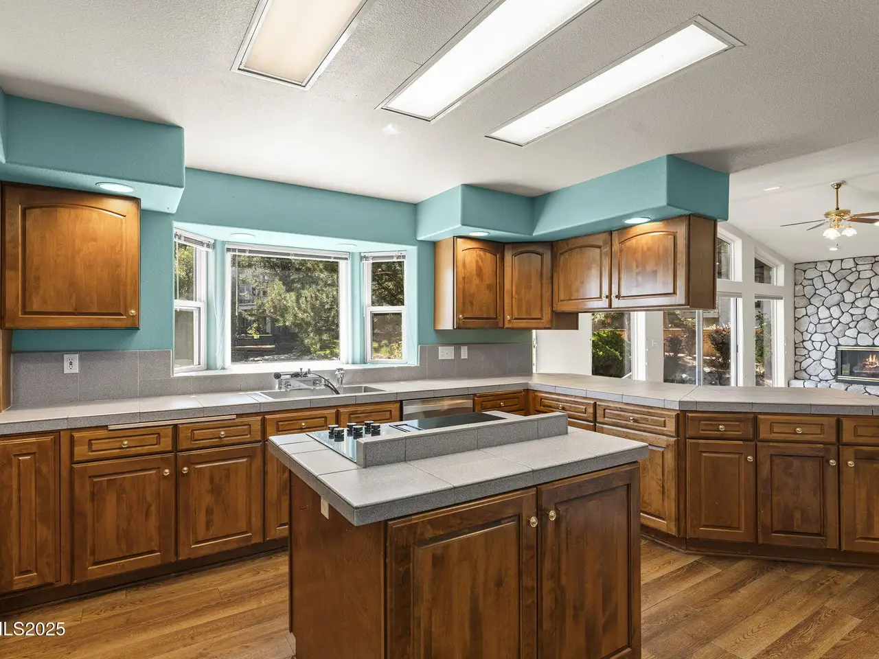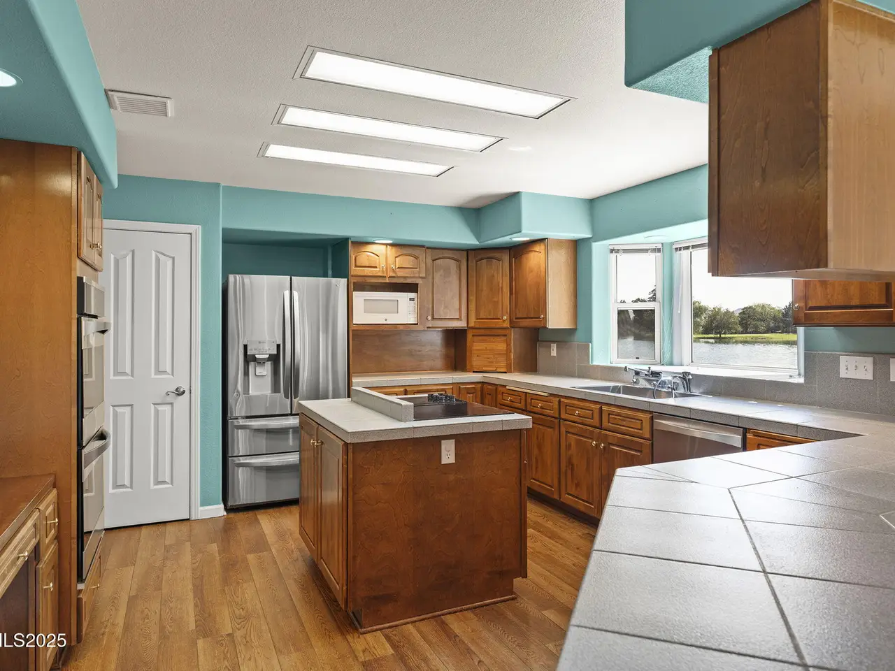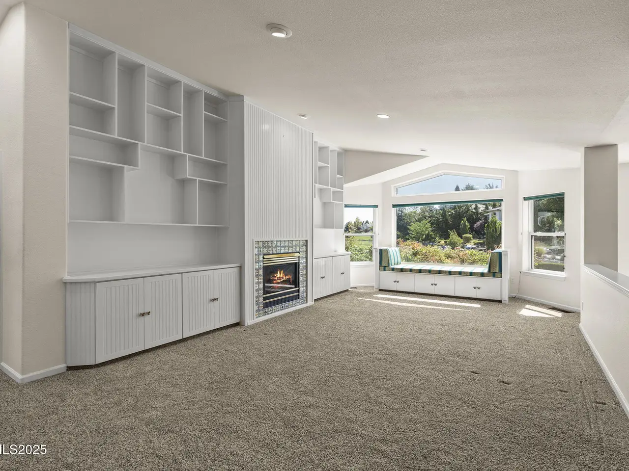Enjoy beautiful views of peaceful Lake Stanley and the Lakeridge Golf Course island hole #15 from this 1/3 acre lakefront property. The Lake Ridge neighborhood is a private gated retreat with 24-hour security, tennis, & private marina for electric and muscle powered watercraft. Throughout this 4 bedroom, 3 bath residence, you'll find multiple living areas and three fireplaces - perfect for creating warm, inviting spaces throughout. Great for entertaining while expansive windows frame the tranquil views offering privacy within the 3-home cul-de-sac. The primary suite is spacious, with ample closet space, and the bathroom has been stripped down, offering a blank canvas for your architectural vision and plenty of potential for luxury upgrades. The property exudes a quiet charm, and could be amazing with the right touch. Outside, the landscaping is mature and there is a large 3-car garage that provides plenty of storage and work space plus a heated paver driveway so no snow shoveling is needed. This neighborhood has the feel of a private retreat, but is centrally located with close proximity to shopping, schools, dining, & less than 15 minutes from the Reno/Tahoe Airport.