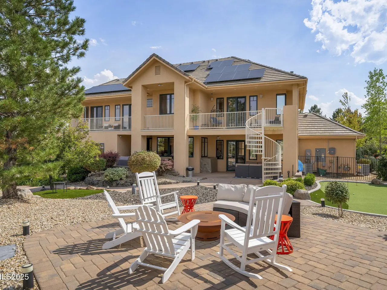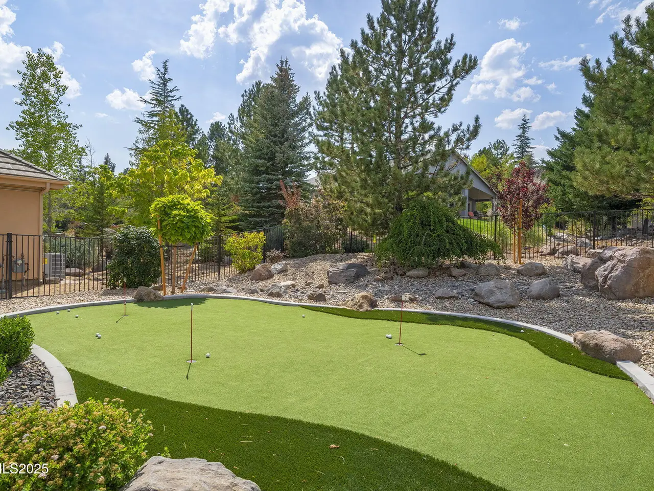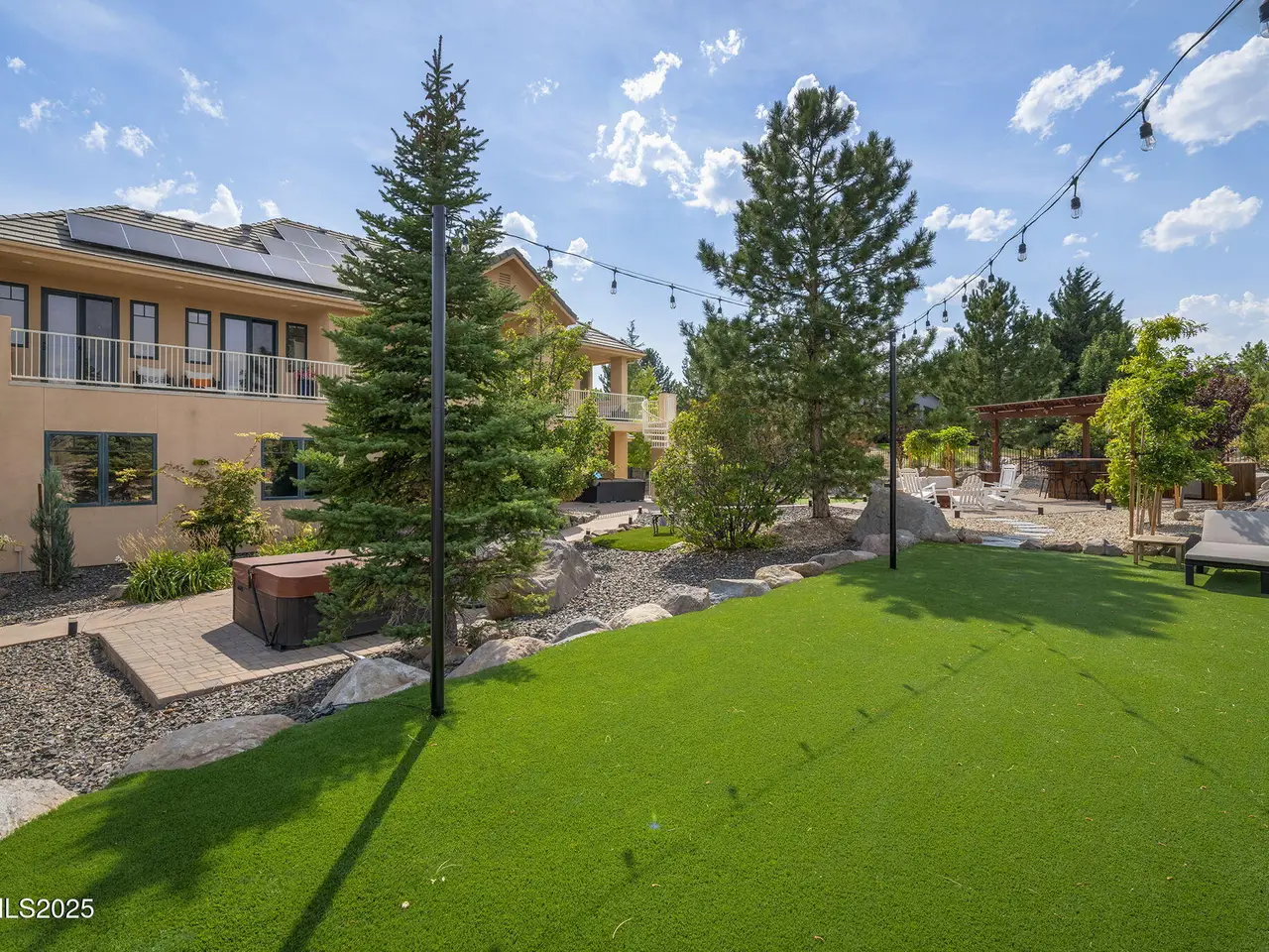 Welcome to this stunning custom executive home just outside the highly sought-after Saddlehorn community, offering the perfect blend of luxury, functionality, and location — all with no HOA. Situated on over ½ acre, this home boasts an oversized 3-car attached garage plus a 33' deep RV garage with a 12x12 door, providing ample space for all your vehicles, toys, and hobbies. Inside, you'll find a dramatic floorplan designed for both comfort and entertaining. The primary suite features a cozy fireplace, a large private balcony with sweeping city views, and a spa-like retreat. Each of the additional three bedrooms is en suite, with one bedroom and bathroom conveniently located on the main floor. The home also includes a spacious loft, an oversized den/office making this layout exceptionally flexible. The gourmet kitchen with new stainless appliances, expansive patios, and upper decks create seamless indoor-outdoor living, ideal for entertaining family and friends. The backyard is truly an entertainer's dream, featuring a covered barbeque area with bar, a putting green, and a hot tub and spiral staircase to the master— the perfect setup for year-round enjoyment. Dual stairways provide easy access to the second floor, while a large upstairs laundry room with sink and folding area adds everyday convenience. Detached RV garage is plumbing-ready and has mini splits for temperature control Built with R55 quality construction for enhanced sound resistance and energy efficiency Enjoy city and mountain views from multiple vantage points throughout the home Unmatched Location: Just 5 minutes to Galena Walking Trails Walking distance to parks, tennis courts, school, and hiking trails Less than 20 minutes to world-class skiing and Lake Tahoe recreation This executive residence in Saddlehorn is the perfect combination of luxury living, versatile design, and outdoor lifestyle — a rare opportunity that is sure to impress.