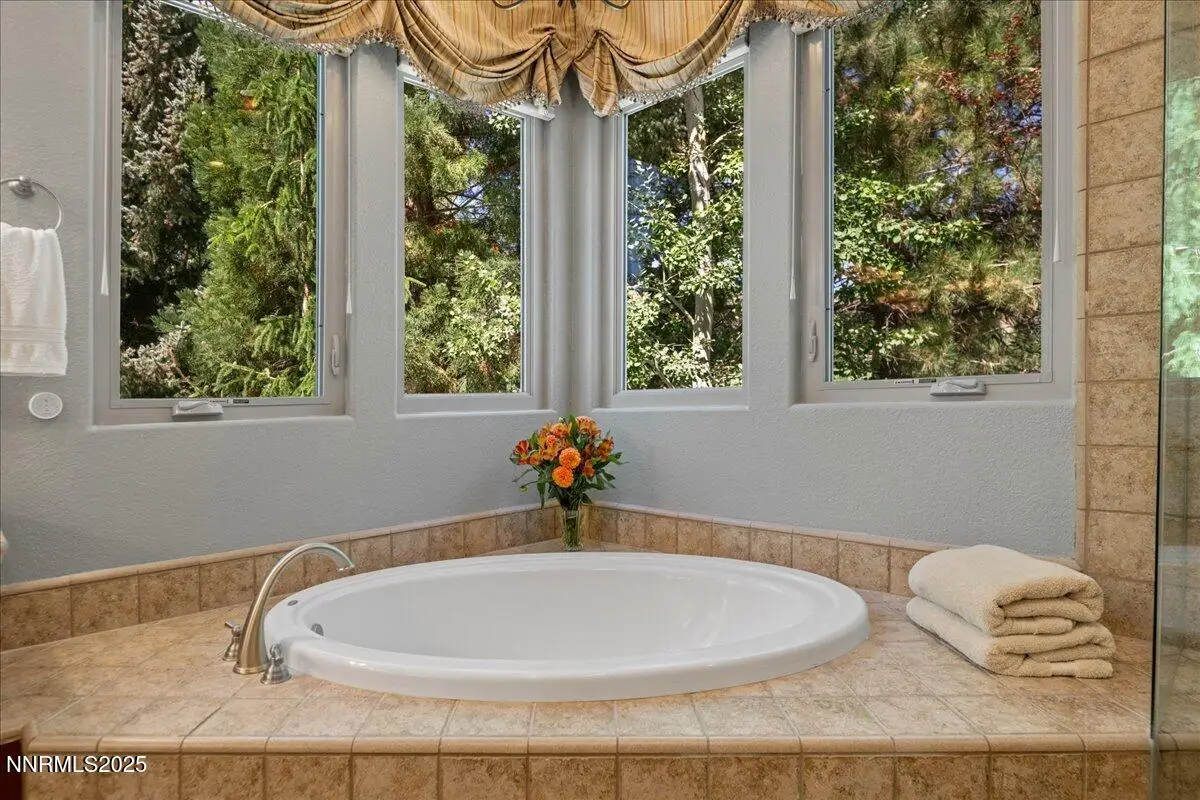 Mountain Views in Montreux! This luxurious single-level presents outstanding curb appeal, private lush landscaping, and extensive upgrades. The interior courtyard is an open-air oasis, providing luminous natural sunlight. Recent improvements include Thermador double oven, new interior paint, Primary Bath bidet, new LED lights, new attic ladder access, and approximately 50 new foliage plantings. Ease right into the Country Club lifestyle - Montreux Sports Membership included. Gourmet Kitchen features Granite countertops, Miele dishwasher, Thermador cooktop, warming drawer, and pull-out cabinet shelves. Kitchen and Laundry were expanded to create extra space and storage. Second Living Room/Bar is impressively equipped with temperature- controlled wine cabinet, ice maker, and refrigerator drawer. Slate tile, hardwood floors, Alder baseboards, and remarkable built-ins throughout. Other recent improvements include new electrical in Kitchen, new interior garage steps, and recently repaired furnace. The home has two almost new water heaters, newer acrylic stucco, roof system, reinforced shear walls, insulated garage doors, and re-sealed and re-installed windows. Surround Sound in Family Room. Peaceful backyard is outfitted with a built-in BBQ, expansive paver patio, hot tub, full mature trees, and 11 rose bushes. Interior Courtyard includes cables that support drop canvas covering. Welcome to Montreux, Northern Nevada's premier private golf course community. This 24/7 security gated luxury community surrounds an 18-hole, Jack Nicklaus Signature Championship Course (Par 72), with world-class Clubhouse amenities. This home on 16956 Rue du Parc is conveniently located near Montreux's main entrance, enjoys easy access to the community's paver walking trail, and is just a short stroll to all the Clubhouse action. In only 20 minutes, you can be skiing at Mt. Rose Ski Resort or jetting off from the Reno-Tahoe International Airport. Beautiful Lake Tahoe is a just a 30-minute leisurely drive away.