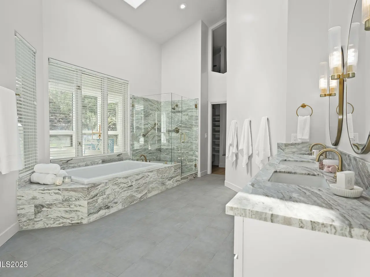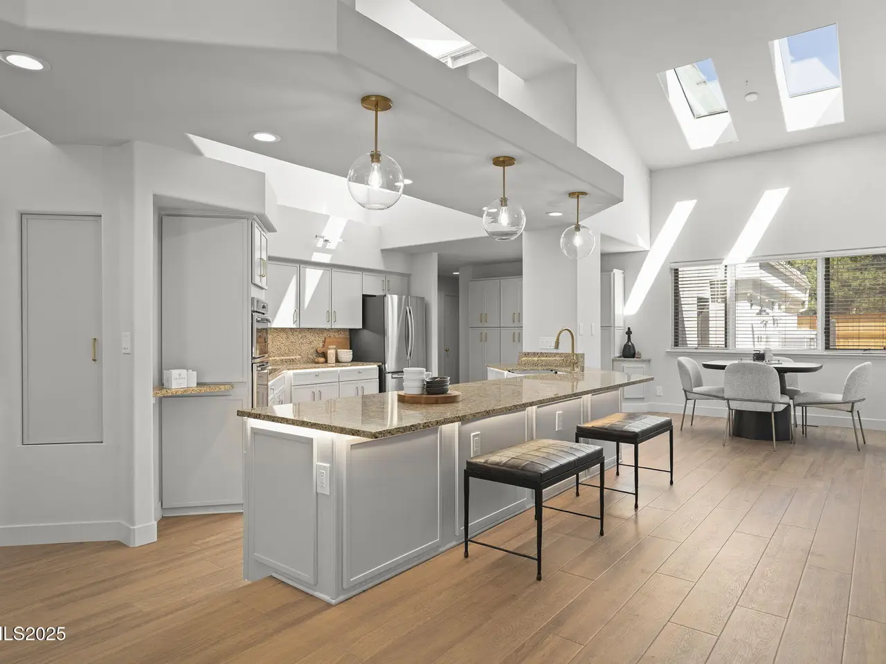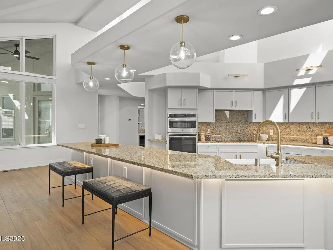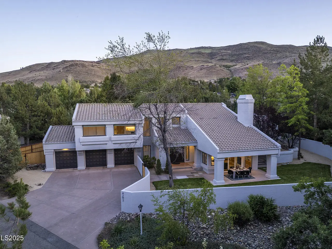 Extensively Renovated in the Heart of Caughlin Ranch. This newly reimagined custom home offers the perfect balance of outdoor entertaining and refined living. Nestled in one of Reno's most desirable neighborhoods, surrounded by miles of beautifully maintained walking and biking trails, tranquil ponds and open green space are just steps from your front door. Over the past year, this home has undergone a stunning transformation with over six hundred thousand dollars in recent renovations and improvements—every detail chosen to blend modern sophistication with the natural beauty of its setting. Soaring cathedral ceilings rise above expansive living areas anchored by two elegant fireplaces. Walls of glass and skylights fill the space with natural light, framing views of mature trees and the mountains beyond. Multiple covered patios create seamless indoor-outdoor living—ideal for hosting gatherings, enjoying a quiet morning coffee, or savoring an evening glass of wine. The stunning chef's kitchen flows effortlessly into the great room, creating a warm hub for daily living. A generous island invites conversation, while refinished cabinets, designer lighting, a premium induction cooktop, farmhouse sink, and custom pantry combine style with function, making cooking and entertaining a joy. On the main level, the oversized primary suite offers a serene retreat. Spa-like finishes include a double vanity, luxurious soaking tub, and custom shower. A remarkable two-story walk-in closet provides abundant storage and a touch of architectural drama. Upstairs, three additional bedrooms and two full bathrooms ensure comfort and privacy for family or guests. A versatile enclosed loft—complete with wet bar and beverage fridge, offers the perfect space for a home office, playroom, or additional lounge area. The exterior is equally impressive, with fresh stucco and paint, new and thoughtfully designed landscaping, and a custom wood and iron entry gate marking the entry. A lush lawn, enclosed by a privacy stucco wall, creates a secure and tranquil outdoor escape. Caughlin Ranch residents enjoy exceptional community amenities, including a recreation center, tennis courts, and swimming pool—all just moments away. With coffee shops, restaurants, top-rated schools and shopping nearby, this home offers unmatched convenience alongside its peaceful, trail-connected setting.