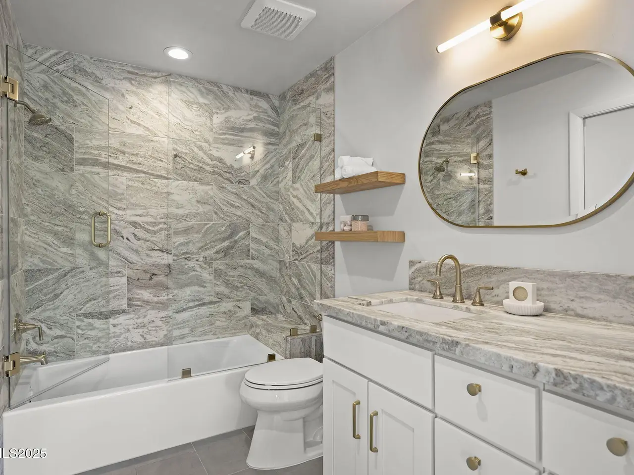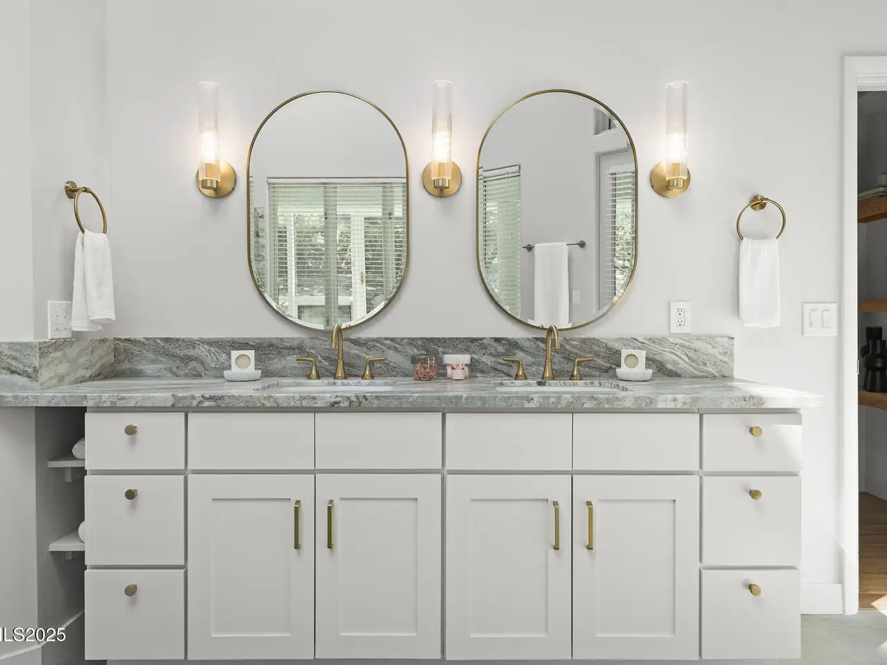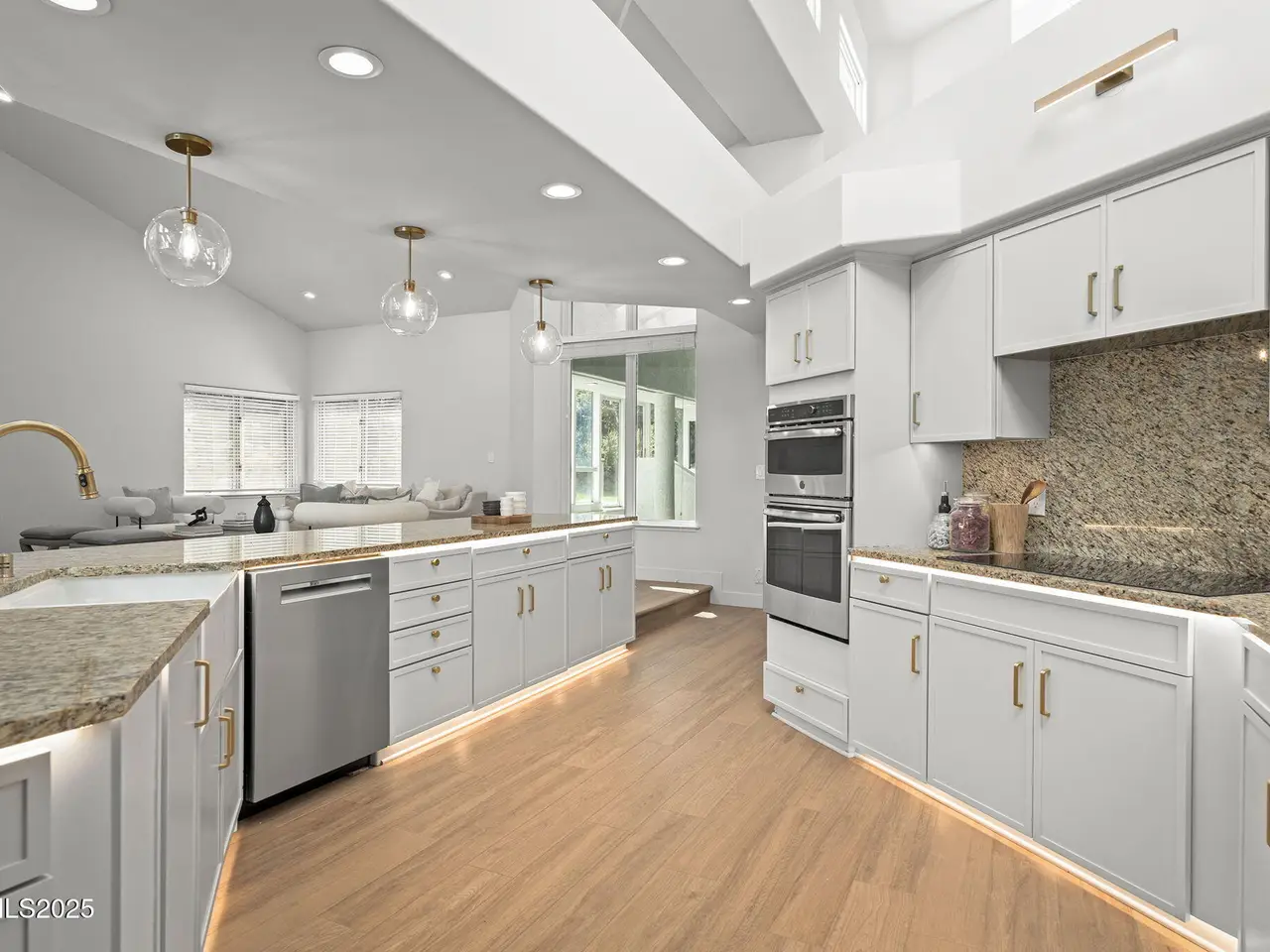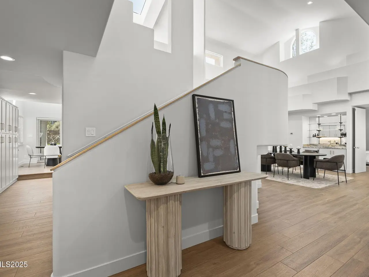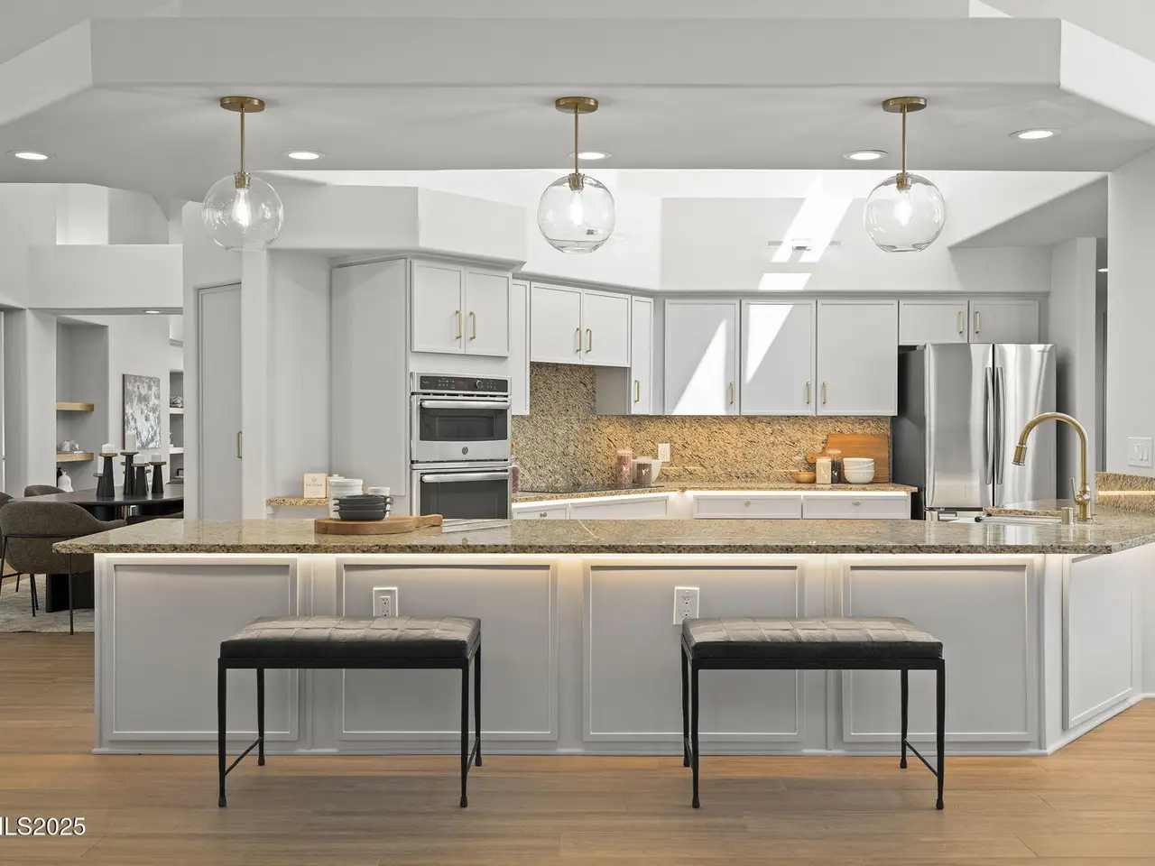 Extensively Renovated in the Heart of Caughlin Ranch. This newly reimagined custom home offers the perfect balance of outdoor entertaining and refined living. Nestled in one of Reno's most desirable neighborhoods, surrounded by miles of beautifully maintained walking and biking trails, tranquil ponds and open green space are just steps from your front door. Over the past year, this home has undergone a stunning transformation with over six hundred thousand dollars in recent renovations and improvements—every detail chosen to blend modern sophistication with the natural beauty of its setting. Soaring cathedral ceilings rise above expansive living areas anchored by two elegant fireplaces. Walls of glass and skylights fill the space with natural light, framing views of mature trees and the mountains beyond. Multiple covered patios create seamless indoor-outdoor living—ideal for hosting gatherings, enjoying a quiet morning coffee, or savoring an evening glass of wine. The stunning chef's kitchen flows effortlessly into the great room, creating a warm hub for daily living. A generous island invites conversation, while refinished cabinets, designer lighting, a premium induction cooktop, farmhouse sink, and custom pantry combine style with function, making cooking and entertaining a joy. On the main level, the oversized primary suite offers a serene retreat. Spa-like finishes include a double vanity, luxurious soaking tub, and custom shower. A remarkable two-story walk-in closet provides abundant storage and a touch of architectural drama. Upstairs, three additional bedrooms and two full bathrooms ensure comfort and privacy for family or guests. A versatile enclosed loft—complete with wet bar and beverage fridge, offers the perfect space for a home office, playroom, or additional lounge area. The exterior is equally impressive, with fresh stucco and paint, new and thoughtfully designed landscaping, and a custom wood and iron entry gate marking the entry. A lush lawn, enclosed by a privacy stucco wall, creates a secure and tranquil outdoor escape. Caughlin Ranch residents enjoy exceptional community amenities, including a recreation center, tennis courts, and swimming pool—all just moments away. With coffee shops, restaurants, top-rated schools and shopping nearby, this home offers unmatched convenience alongside its peaceful, trail-connected setting.