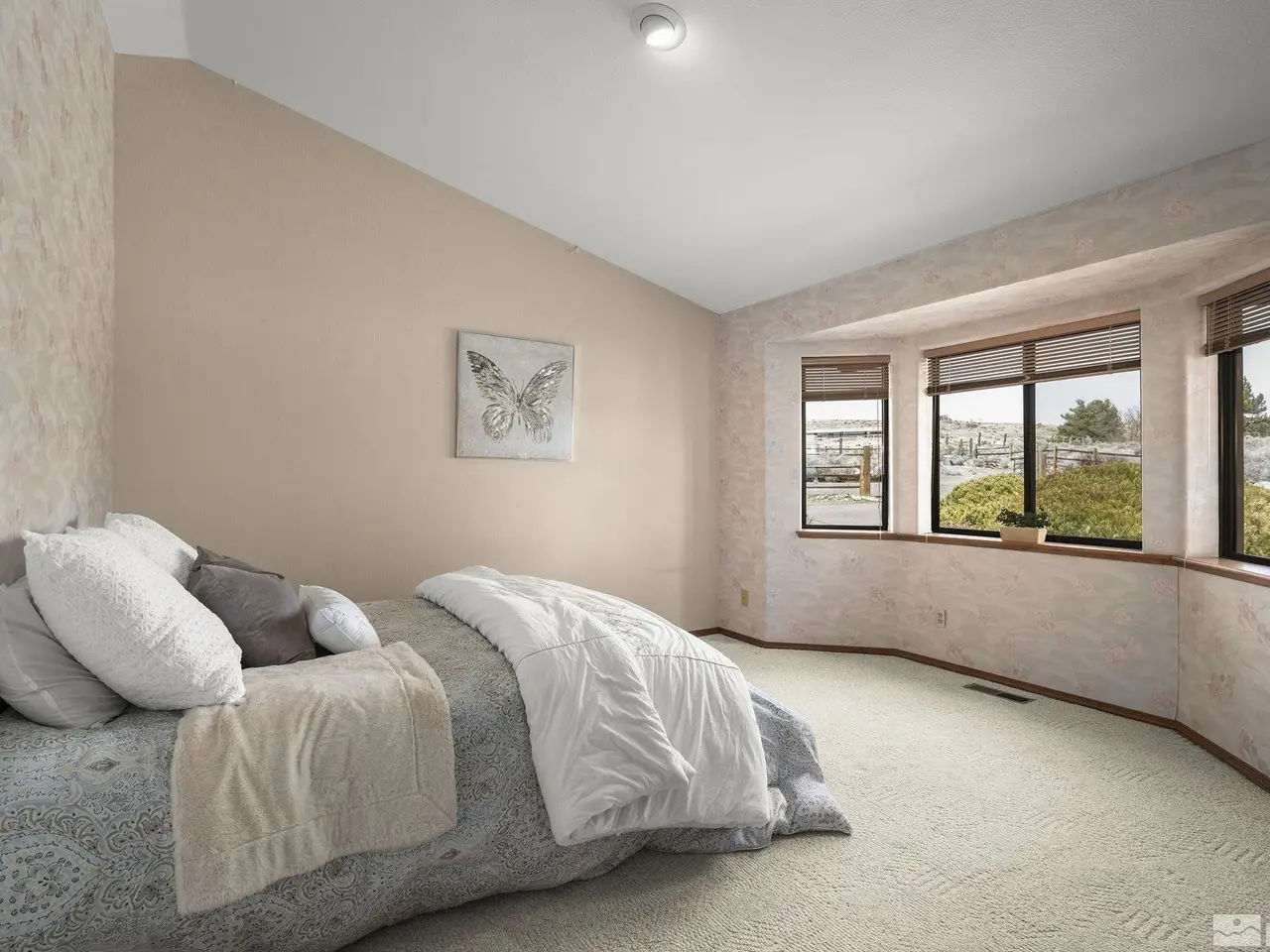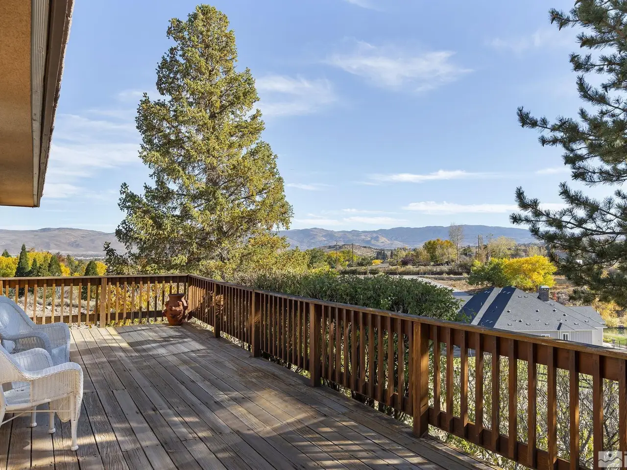 2.665 acre ranchette in the heart of highly desirable southwest suburban Reno. Super quiet with beautiful views of the valley and mountains located at the end of a private cul-de-sac adjacent to the Ballardini Ranch! Horse property with barn, stalls, tack room, and large riding arena. Great curb appeal with mature landscaping. Lots of natural light, vaulted ceilings, 3 bedrooms plus large office/den. Fantastic potential both inside and out. Great opportunity to make this your SW Reno dream property!, The 3-car garage, primary suite, den/office or bonus room, secondary bedroom and full bath, laundry with sink, and a mud room/drop zone can be found on the main level. Head up just a few stairs to the living area overlooking the valley, formal dining with access to the spacious deck, and kitchen with bright breakfast nook. The walk out basement has a family room, 1 bedrooms, office, and a full bath. The backyard features a large upstairs deck, second screened-in and covered lower deck with access from home walk out basement, concrete patio, & fire pit. This wonderful location offers a peaceful and serene setting with close proximity to shopping, restaurants, freeway access, and the airport.