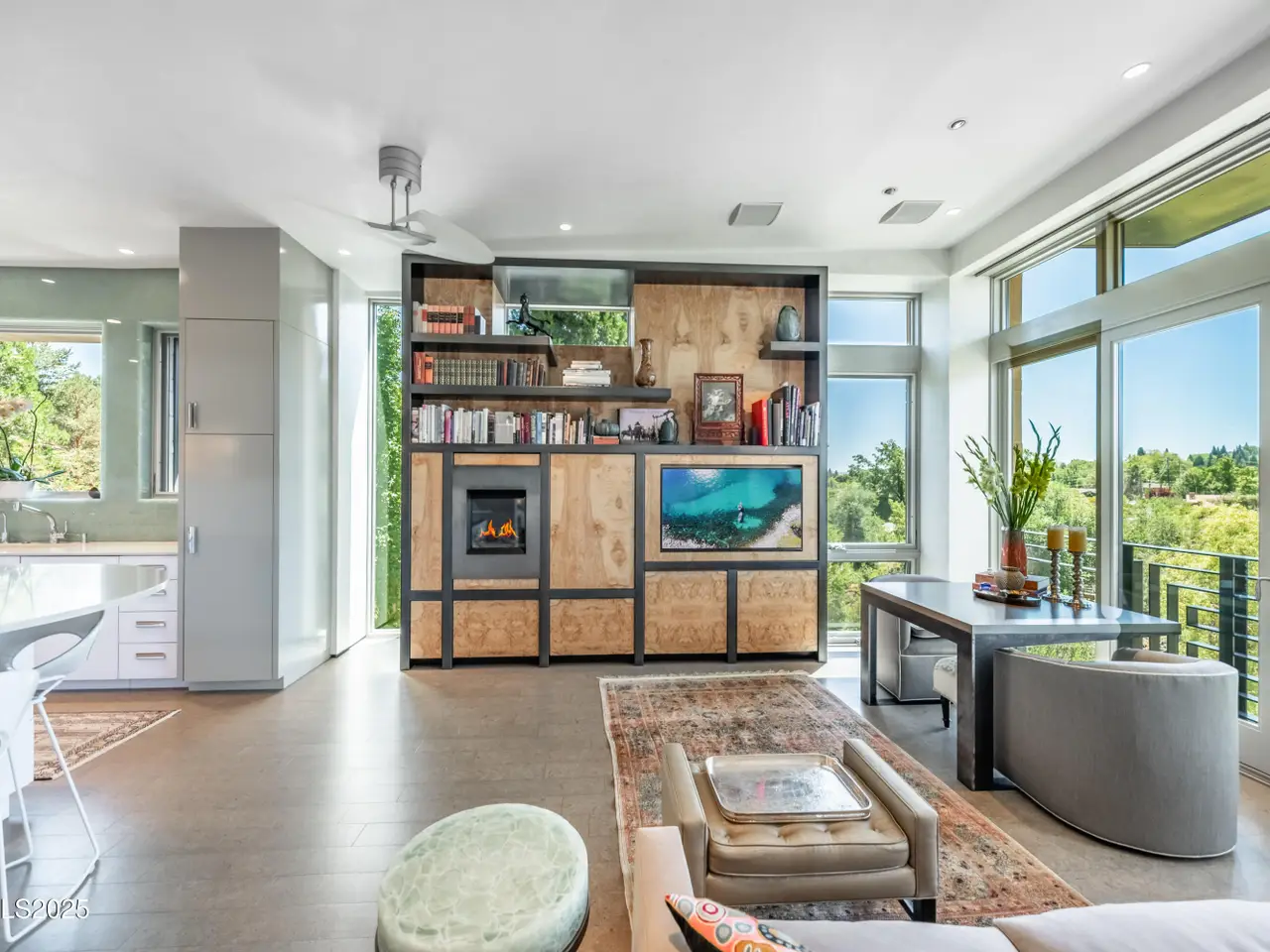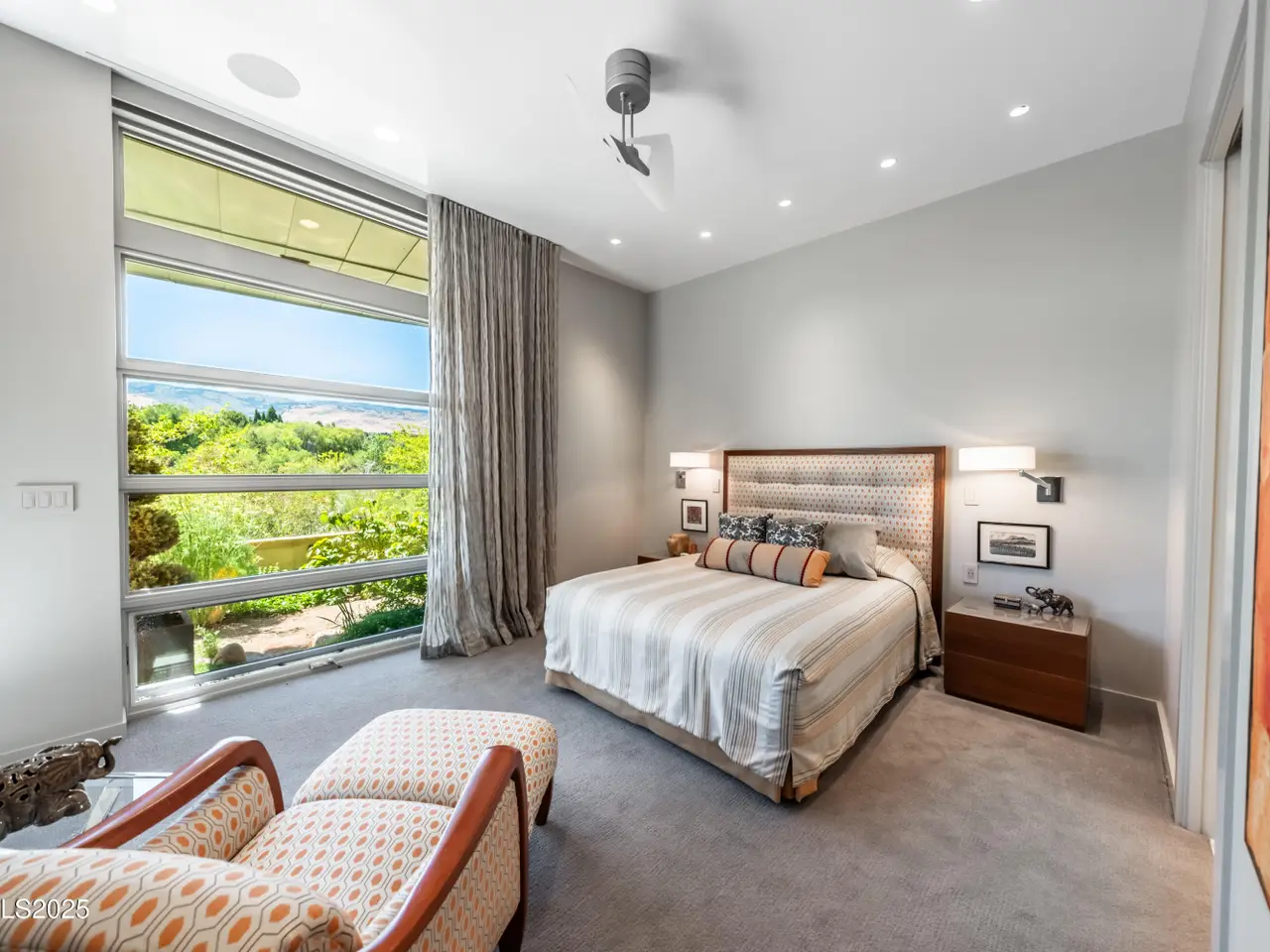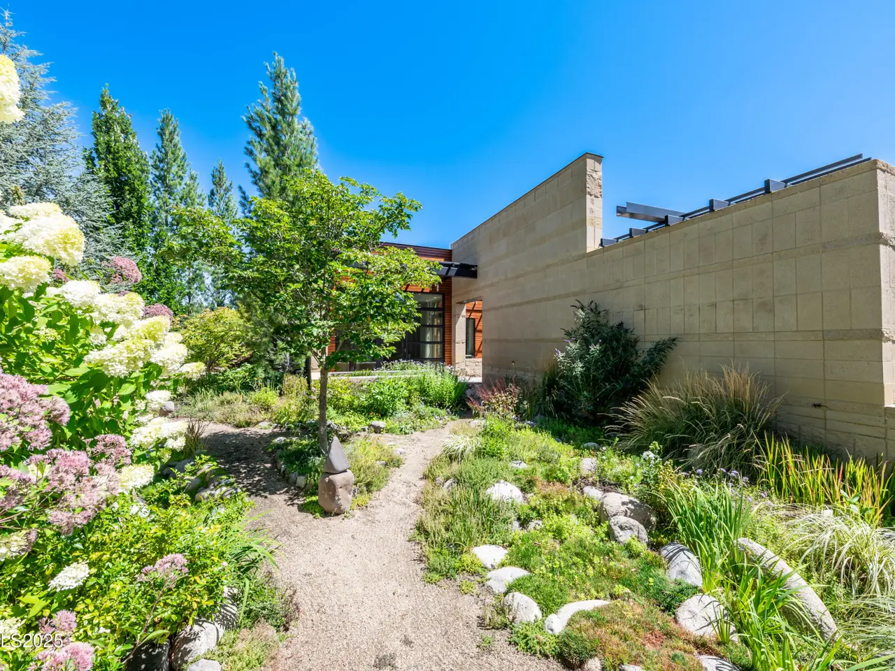 This architecturally significant home, constructed with concrete, metal, and wood siding elements, harmonizes modern design with its natural surroundings. Its state-of-the-art systems include hydronic heating powered by solar energy and evaporative cooling, offering both comfort and sustainability. The seamless connection between indoor and outdoor spaces is a defining feature, with the courtyard and pool creating a tranquil retreat. Art lovers and architecture enthusiasts alike will appreciate the home's thoughtful design and integration with the environment. This remarkable home extends its artistry into the landscape with extensive, curated gardens featuring custom metal fencing, sculptures, and a serene lily pond. A dedicated gardening room makes maintaining this outdoor sanctuary a pleasure. Additional features include a mudroom, outdoor shower, and a gym for an active lifestyle. Inside, cutting-edge technology enhances daily living, with high-tech LED lighting perfect for art displays, automated shades, and a full house automation system controlling audio, visual, and security systems seamlessly.
