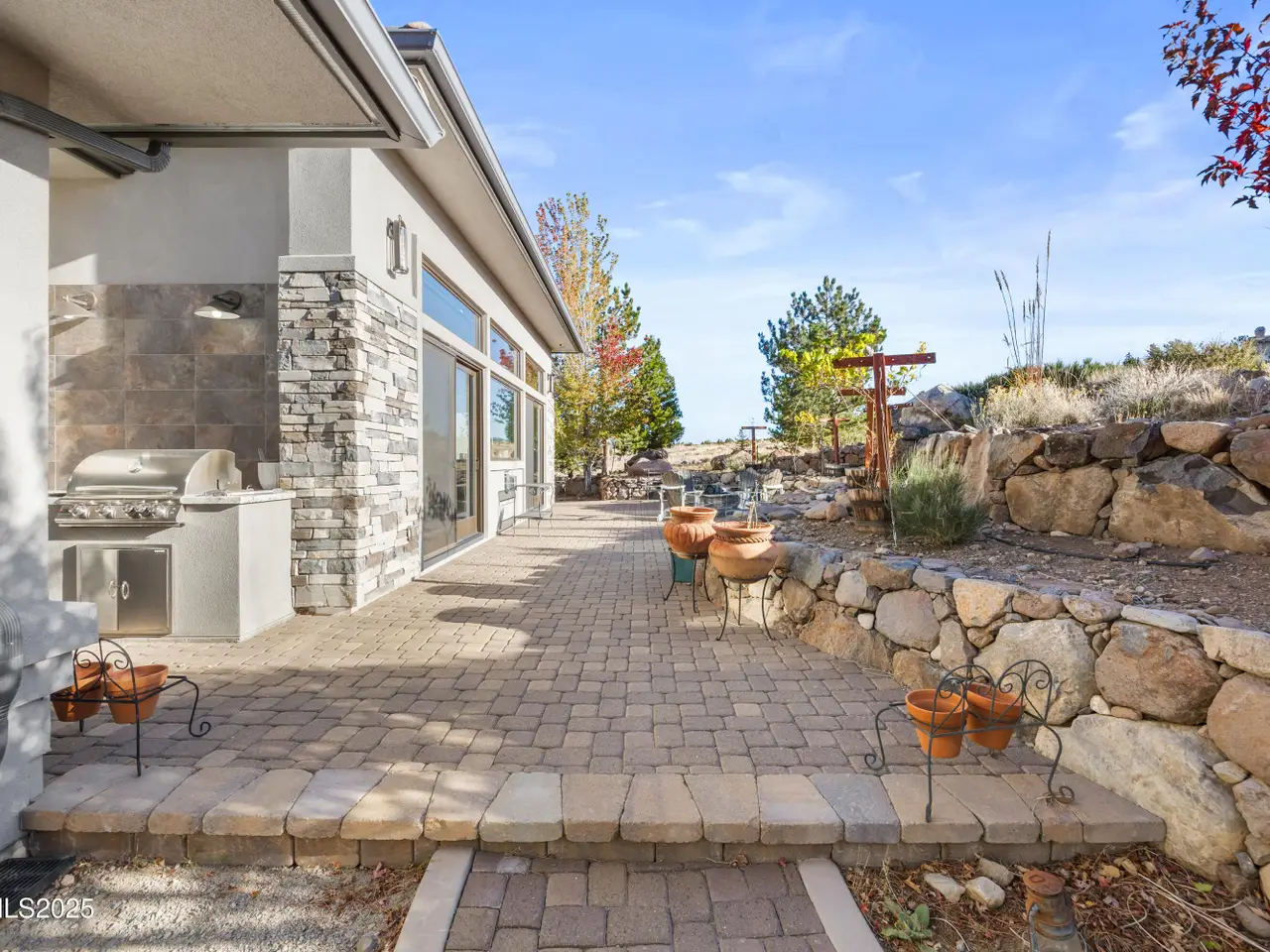Welcome to your dream home in the prestigious gated community of Nambi Estates within Arrowcreek! This exquisitely remodeled residence boasts an array of luxurious features designed for comfort and elegance. As you enter, the thoughtfully designed addition enhances your living experience by seamlessly blending the outdoors with the indoors. Open the bi-fold doors to let in fresh air and natural light, creating an inviting ambiance for any occasion. Whether you're entertaining guests or enjoying a quiet evening, you'll love cozying up to the fireplace while watching the sunrise or the gentle snowfall outside With a spacious 1,433 sq ft garage featuring 10-foot doors, there's ample room for vehicles and storage, while inside you'll find the seller has lovingly remodeled much of the home,. Wine enthusiasts will be delighted by the climate-controlled wine cave, capable of storing up to 500 bottles, making it the perfect space to showcase your collection. The home's sophisticated technology is evident with remotely operated blinds that allow you to effortlessly adjust your ambiance. Retreat to the primary suite, featuring panoramic views of the city and a spa-like primary bathroom complete with a luxurious sauna—a true oasis after a long day. The peaceful backyard is a sanctuary, bordered by protected open space on two sides for the utmost privacy. Enjoy outdoor cooking and entertaining with a built-in BBQ and stove, all while taking in the serene surroundings. unparalleled city views right from the spacious primary suite, where you'll find ample room to create your ideal reading nook or exercise space. Imagine waking up to breathtaking vistas that inspire your day!
