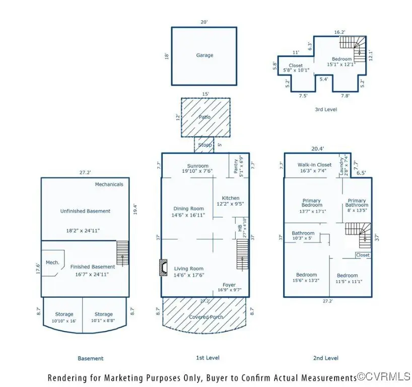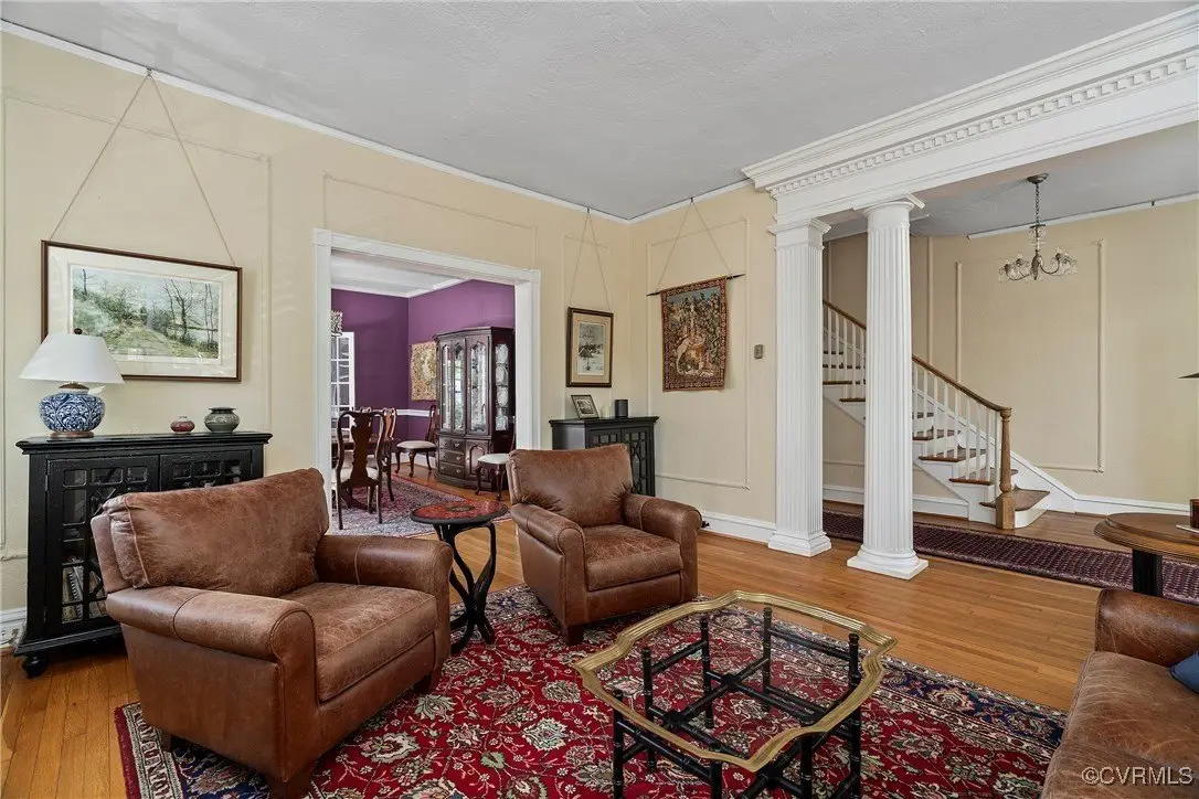 3201 Kensington Avenue is a classic 1921 Colonial Revival home situated in Richmond's historic Museum District. This stately residence combines timeless elegance with modern comfort across four spacious levels. The home features a beautifully restored front porch with Doric columns, formal living and dining rooms with soaring ceilings and intricate millwork, a cozy family room/sunroom with built-ins, and a private rear patio. Upstairs, there are three generous bedrooms and two renovated baths, including a serene primary suite with a large walk-in-closet! The finished third floor offers flexible space ideal for a fourth bedroom, home office, or studio. The full basement provides additional living space, ample storage, secondary laundry hookups, a workshop with a walkout door to the backyard, and potential for future expansion. Corner lot on Kensington & Cleveland coupled with two inviting outdoor living spaces and a detached 1.5-car garage make this a rare gem in a spectacular location! Home is located just steps from local shops, restaurants, and museums, including the Virginia Museum of Fine Arts. This home was on the 2022 Museum District Mother's Day House & Garden Tour.