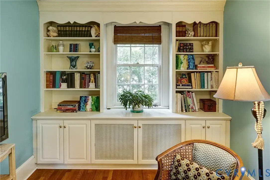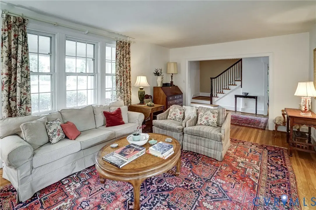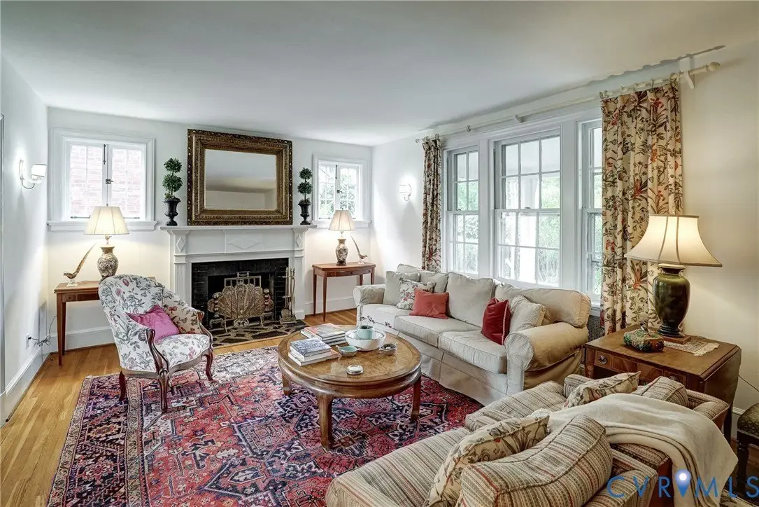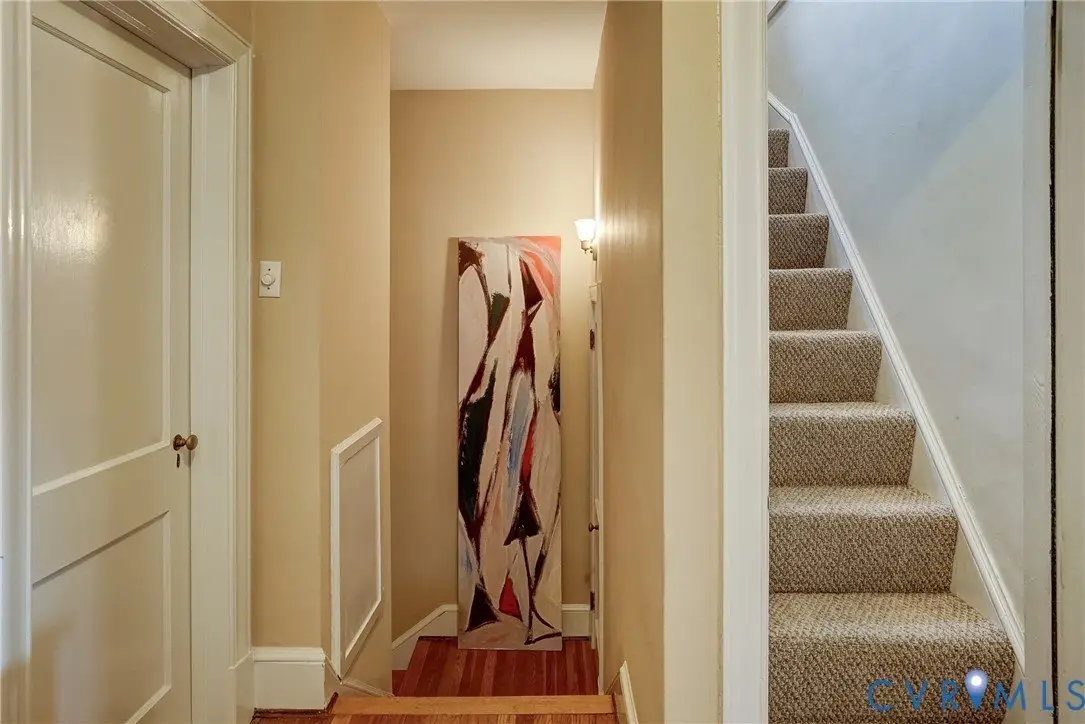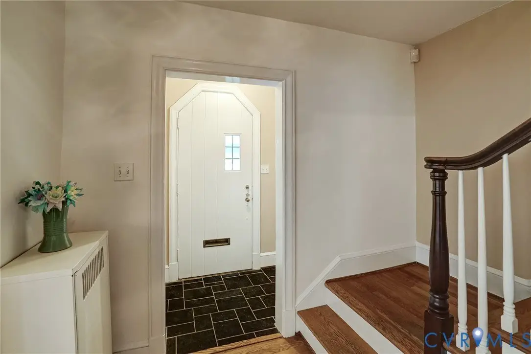 This timeless 1930's Tudor brick and slate home sits nicely tucked away off the beautiful historic Monument Avenue combining classic architecture with fresh updates and thoughtful design. The beautiful full covered front porch boasts original hand-hewn beams displaying the true Arts and Crafts style. Freshly painted in soft, neutral tones, the interiors highlight beautiful hardwood floors, tall ceilings, and abundant natural light. The kitchen is a standout with Blanco granite countertops, a crisp white subway tile backsplash, floor-to-ceiling cabinetry, tile flooring, pantry, butler's stairs, and a charming breakfast nook. A rear door leads to the back patios for easy indoor-outdoor living. Entertain in style in the grand dining room, anchored by a sparkling crystal chandelier and original mouldings. The foyer welcomes with neutral paint, a coat closet, and an open flow into the great room, where a wood-burning fireplace is flanked by original windows and hardware. An additional den/office with built-in bookcases and rattan blinds offers a cozy retreat. Upstairs, the primary suite features a traditional en-suite bath with classic black-and-white tile. Two additional bedrooms share a full bath with the same timeless tile, along with a linen closet and dressing/vanity area. The third floor provides a flexible fourth bedroom or bonus room, complete with Berber carpet, two closets, built-in drawers, and additional eave storage. A full walk-out basement with half bath remains unfinished, offering potential for future customization. Outside, the property includes a detached brick garage with automatic door and private rear brick and slate patios with a rear fenced in yard. Lovely landscaping front and back to enjoy throughout the seasons. This Monument Avenue gem blends original character with modern comforts, making it a truly special offering in one of Richmond's most sought-after neighborhoods in the Near Westend. Walkable to Stella's and close to Scott's Addition, VMFA, highway access, and more.