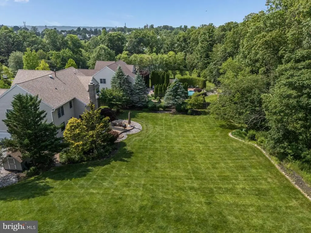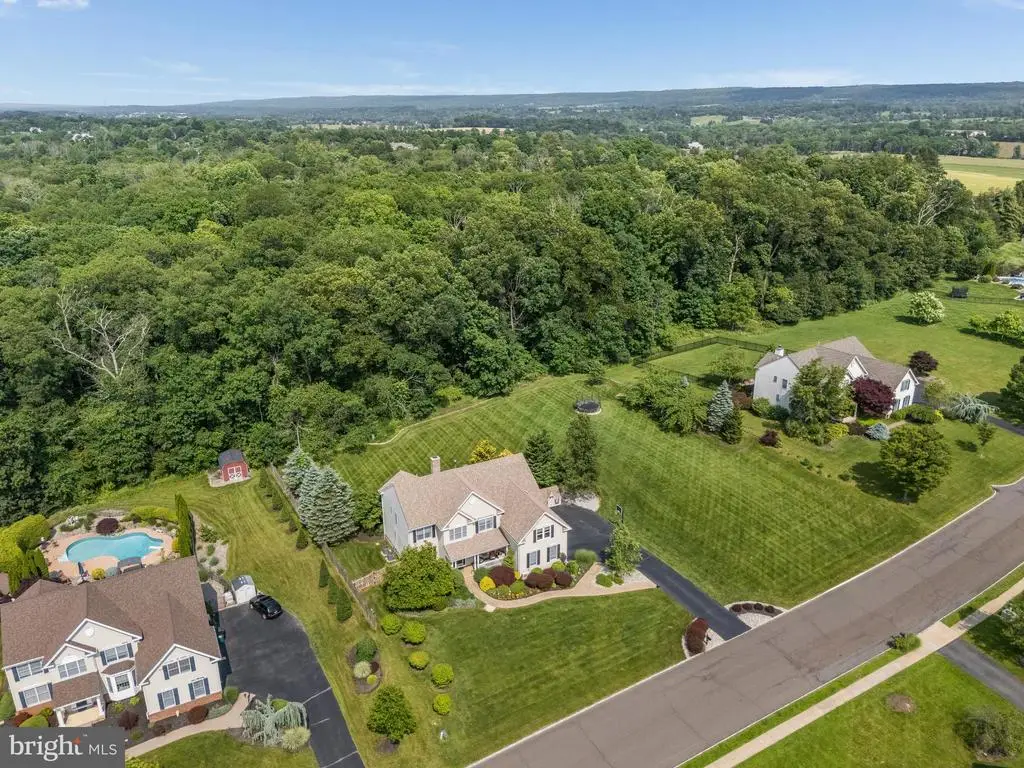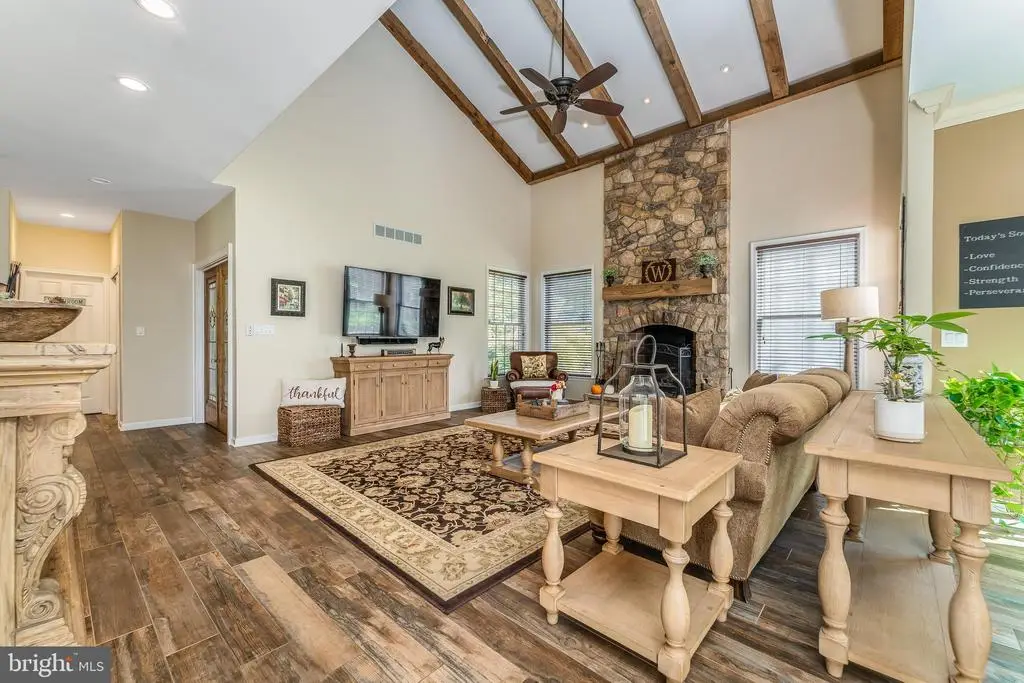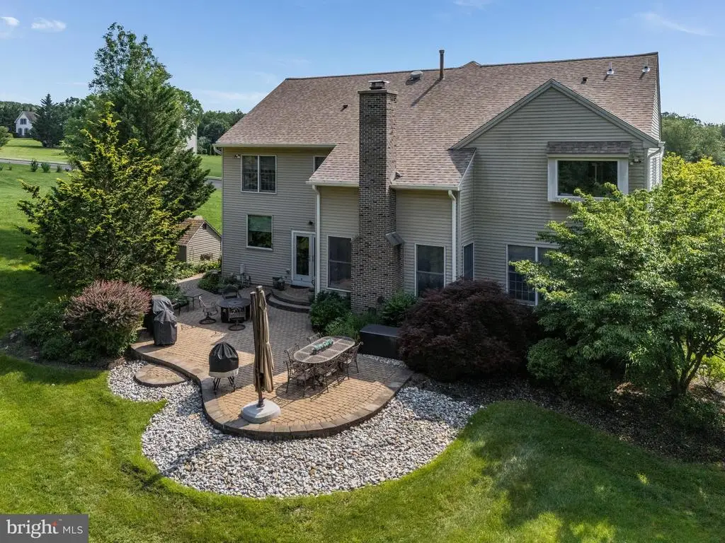 Meticulously maintained and thoughtfully updated, this expansive Colonial offers an open floor plan and a tranquil cul-de-sac setting. Surrounded by lush landscaping and backing to woods for added privacy, the home invites relaxation on the rocking chair front porch at sunset or entertaining on the spacious paver patio overlooking the park-like backyard. At the heart of this home is the large, recently renovated gourmet kitchen, featuring a generous center island and high-end appliances. The kitchen opens to a dramatic two-story Family Room showcasing a custom floor-to-ceiling stone wood-burning fireplace with a gas log starter, reclaimed hand-hewn beams, and a beautifully crafted custom mantle the perfect blend of rustic warmth and modern luxury. The first floor offers both front and back staircases for easy access throughout the home. A spacious office provides a bright and inspiring workspace, highlighted by custom doors sourced from France. Formal living and dining rooms create an elegant setting for entertaining, while a convenient powder room and laundry room add everyday functionality. Ceramic tile flooring extends throughout the first level, enhancing the homes clean, cohesive design. The second-floor primary suite is a true retreat, featuring three walk-in closets with custom organization systems and a spa-like bath with a soaking tub and double vanities. A beautifully renovated hall bath serves the three additional bedrooms, each offering generous space and natural light. A large gym completes the second floor, providing a perfect area for fitness and wellness at home. The finished basement extends the homes living space, featuring stained epoxy flooring and a spacious recreation room ideal for gatherings or media. Two additional flex rooms offer versatility for a home office, hobby space, or guest area. A powder room, walk-in closet, multiple additional storage closets, and a large unfinished area provide ample room for comfort and organization. A three-car garage completes the home, featuring built-in storage systems and an epoxy-coated floor for a clean, organized, and functional space. Enjoy complete peace of mind with recent upgrades, including a new roof (2024), updated HVAC system, two commercial-grade sump pumps in the basement, a new hot water heater, and a septic pump installed in 2025. The septic system has been inspected and approved by the Health Department, ensuring everything is in top working order for the next homeowner.