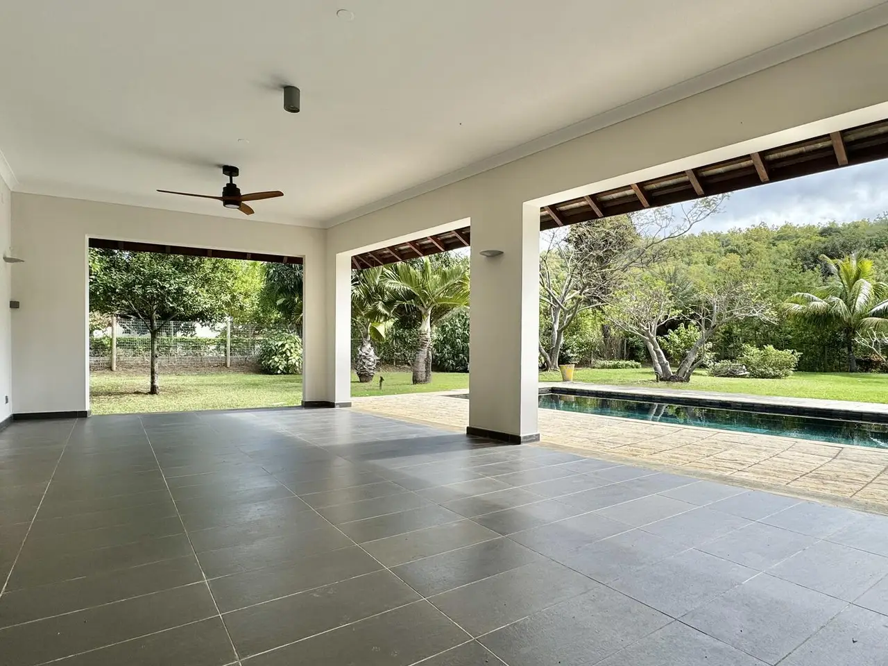 Surrounded by mature gardens and framed by mountain views, this 4-bedroom villa in Rivière Noire presents a refined lifestyle opportunity under the IRS scheme — ideal for foreign buyers seeking a luxury property in Mauritius. Set on 2086 m² of land with 497 m² of built area, the home combines contemporary comfort with fluid indoor-outdoor living. A covered veranda extends beside a private stone-edged pool, creating a natural flow from the spacious lounge and dining zones. Inside, soft light enhances the clean finishes and feature stonework, while the kitchen invites easy, sociable cooking. The villa offers four generously sized bedrooms and three well-appointed bathrooms, ensuring space and privacy for family or guests. One of the bedrooms opens onto a panoramic terrace with sweeping views — perfect for relaxing moments from sunrise to sunset. Built in 2015 and located in a secure residential estate, the property includes three parking bays and electric water heaters. A peaceful yet connected address for those seeking a long-term investment in Mauritius' west coast lifestyle. Contact DIANE WATKINS – Property Consult for a private viewing!