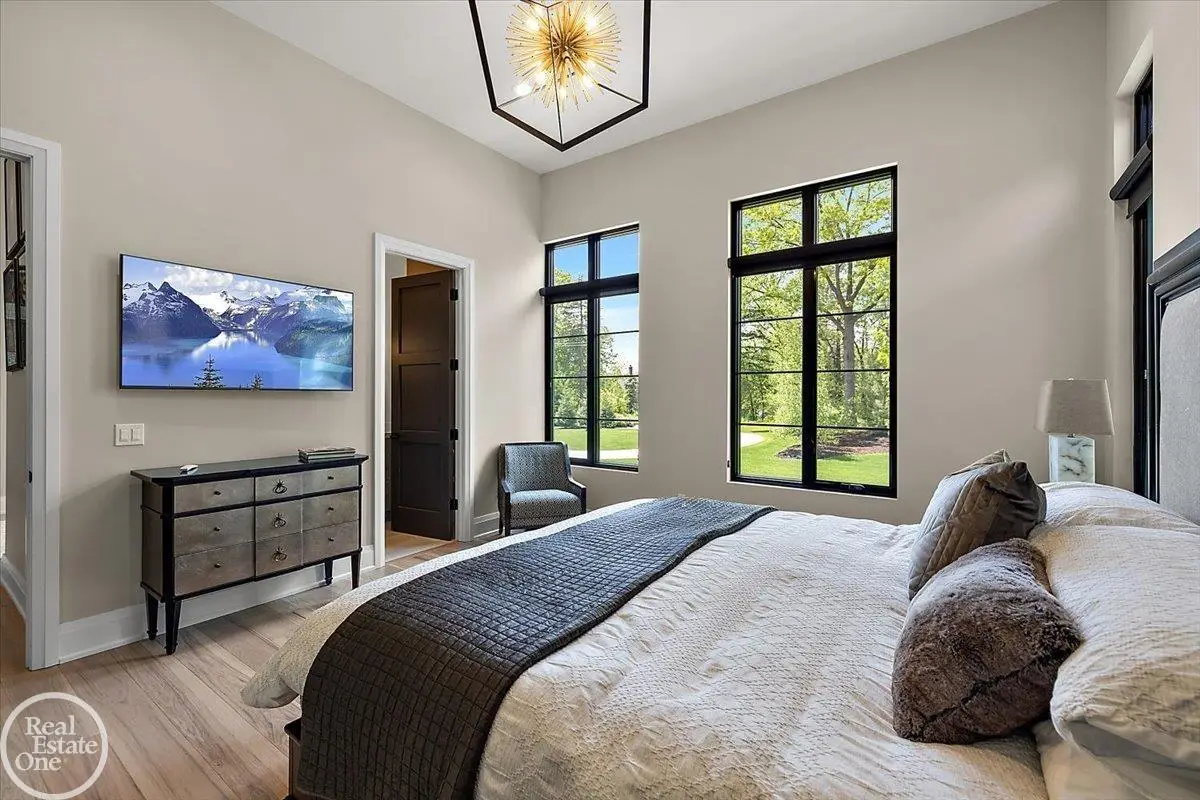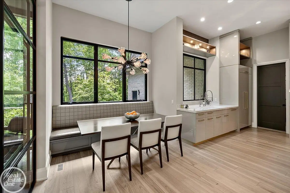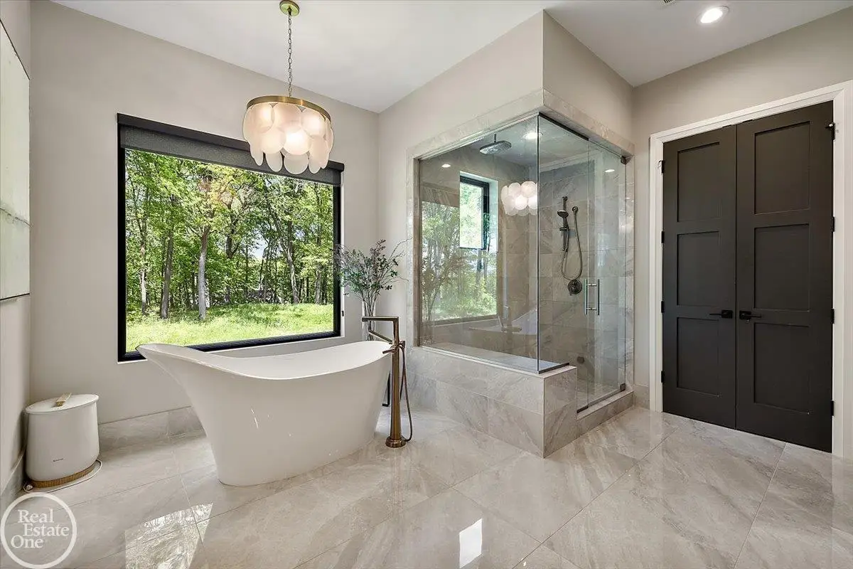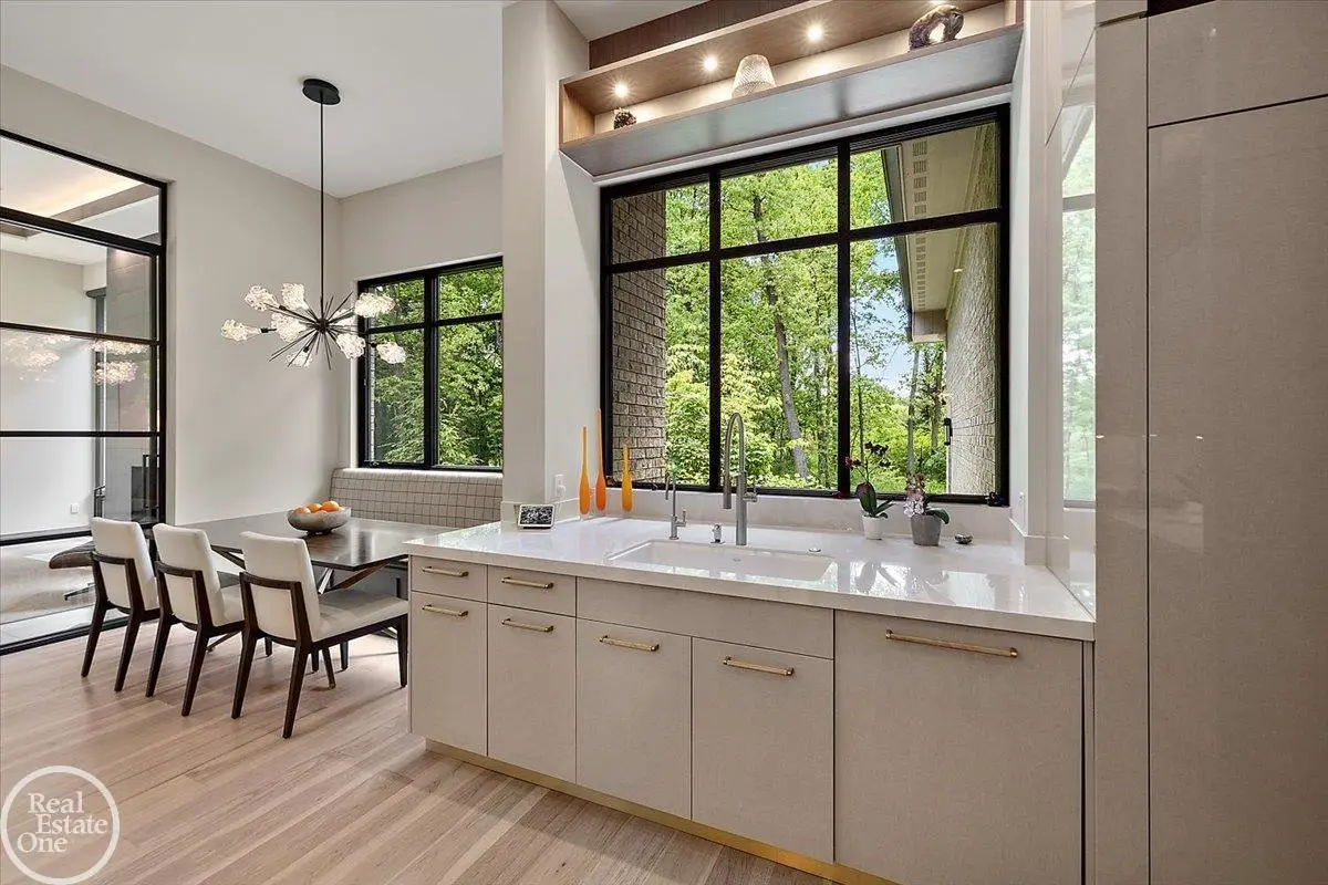 Experience unparalleled modern luxury in this custom-built 2021 Cranbrook masterpiece. Featured in Detroit Design Magazine, this home showcases exquisite interior design by Tutto Interiors, boasting the finest materials and craftsmanship throughout. Situated on 3 private wooded acres, this residence offers a serene escape with an urban edge. The open floor plan, highlighted by soaring 14-foot ceilings and expansive walls of windows, floods the home with natural light and breathtaking views. The gourmet kitchen, equipped with Thermador appliances, is an entertainer's dream. Relax in the stunning great room with its floating fireplace or unwind in the four-seasons glass room, featuring an industrial loft aesthetic and a natural fireplace. The primary suite offers a spa-like experience with a luxurious bath, steam shower, and dual walk-in closets, all overlooking the tranquil wooded landscape. The finished walk-out lower level leads to a 35x12 inground pool, complete with a custom pergola and firepit, perfect for outdoor gatherings.
