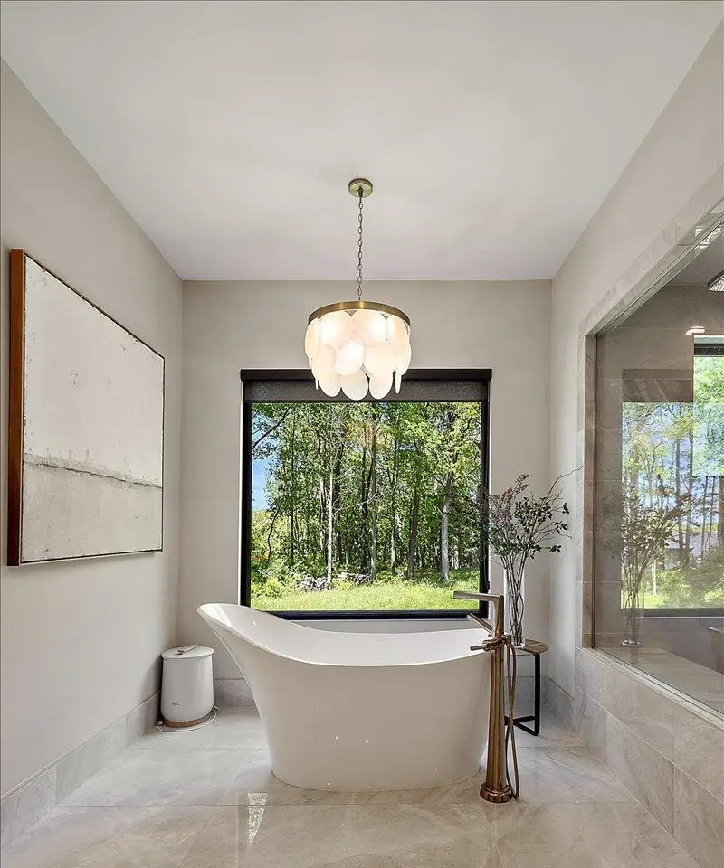 Luxurious primary suite with spa-like bath