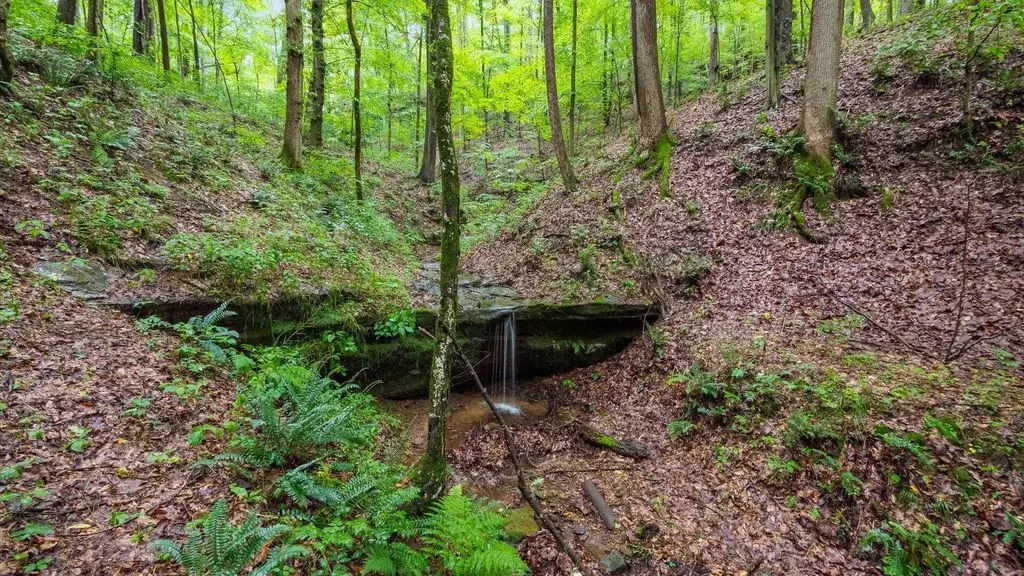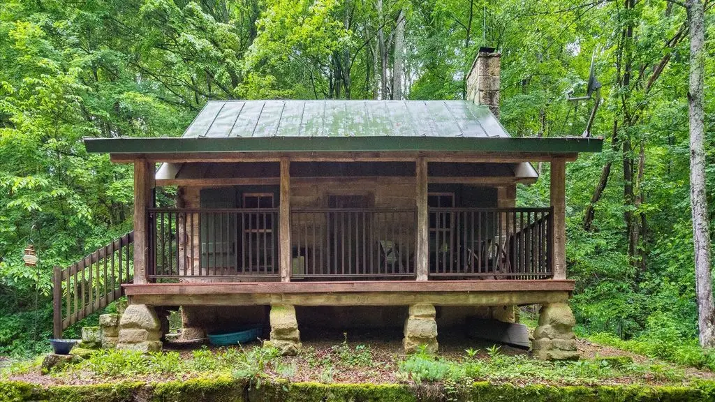 This might be the most unique house you'll ever see. Originally built in 1808 and meticulously relocated to its current setting in Rockbridge - just minutes from Hocking Hills - this 2-bedroom, 2.5-bath home is a rare blend of historic charm and natural beauty. Inside, you'll find rich natural wood and massive stonework - features that showcase a level of craftsmanship you simply don't see in homes today. Enjoy peaceful mornings on the balcony, cozy afternoons in the sunroom, and quiet evenings listening to the waterfall. The property spans nearly 37 private acres and includes two stunning waterfalls, well-kept trails perfect for riding or exploring, and a separate 1-bedroom cabin - ideal for guests or short-term rentals. This isn't just a home - it's a truly special retreat where history, nature, and serenity all come together.