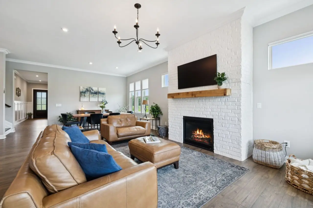 Welcome to a home that provides a blend of tranquility & luxury. This 2-story brick home set on over 3 acres invites you to breathe deeply the moment you arrive. Step through the grand iron lined front door into a bright foyer with high ceilings that lift your gaze. Each space is composed with intention, leading to the heart of the home an unparalleled open concept center. It is the perfect space for everything from warm family gatherings to an entertainer's dream with laughter and shared toasts! Start the morning with an espresso from the coffee bar adjacent to the kitchen. The kitchen features a double oven, gas cooktop, stainless steel appliances with included refrigerator, a spacious island with a ceramic farmhouse sink. The primary main floor suite features a large walk-in dressing room style closet, double vanities, and an oversized tiled shower. The utility area which consists of the laundry, featuring a stackable washer and dryer, and a family foyer leading to the garages. Behind sliding barn doors is a serene study/home office with a coffered ceiling. An additional bedroom and full bath complete the main level living area. Upstairs offers a continuation of warmth and fun for family and friends. A large, but cozy media room is ready for gaming, music, movies, reading or other hobbies. Additionally, another vast recreation area has room enough for features such as a 9-foot pool table, ping pong table, pinball/arcade machine, or any number of other pursuits. Two more bedrooms and a full bath complete the second level living area. Outside, a symphony of serenity awaits: a covered porch overlooks a spa-like pool glistening under Tennessee skies, a hot tub with privacy fencing beckons and a firepit casts flickering shadows as stars rise above. Exterior features also include a covered grilling area with electrical power for potential outdoor kitchen. The carriage garage provides storage for a boat, camper, etc. Country living w/ city conveniences minutes away.