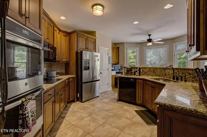 Nestled on 5.43 acres this home offers so many special things. Main level living Primary bedroom with double tray ceiling and walk in shower and a soaker tub. Two other bedrooms with a bath a laundry room. Kitchen with wall ovens a induction smooth cooktop does have a gas outlet if you want to convert and also has a nice breakfast area looking out on the patio and the woods with access to deck for grilling meals. Great room with a fireplace and a formal dining area complete this level. There is a bedroom suite upstairs with a bath and hidden office. A walk-in full attic storage area that can be finished for a bonus room. Lower level features living area/ Bedroom studio and full bath with access to outdoor patio, a well appointed Wet Bar and Game room, Indoor Spa room with access to outdoor patio. The kitchen with double ovens, fridge. Tons of storage areas and a workshop. The lower patio area has a fenced back yard for your animals or play area to go out and enjoy the outdoors. 2 Car garage with a portable ramp for easy access into the home if needed. Oh did I mention the whole house generator all located in a Gated community on Watts Bar Lake. If you saw this house before the floors have all been refinished and new carpet, new HVAC. Please visit us again it is time to sell.