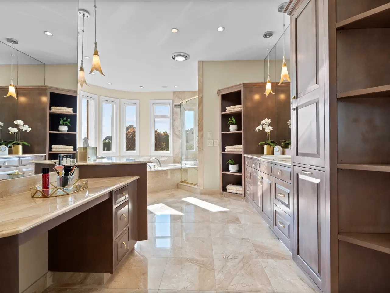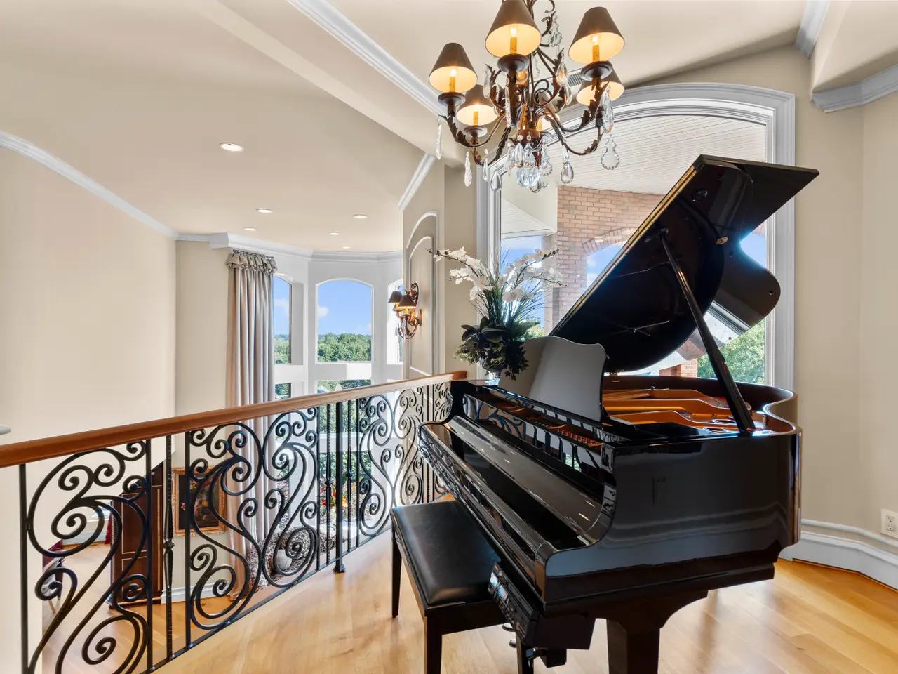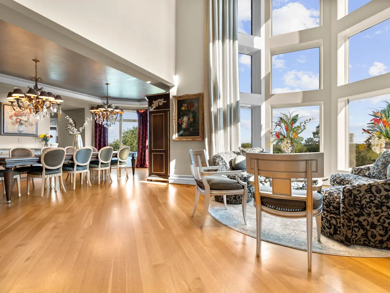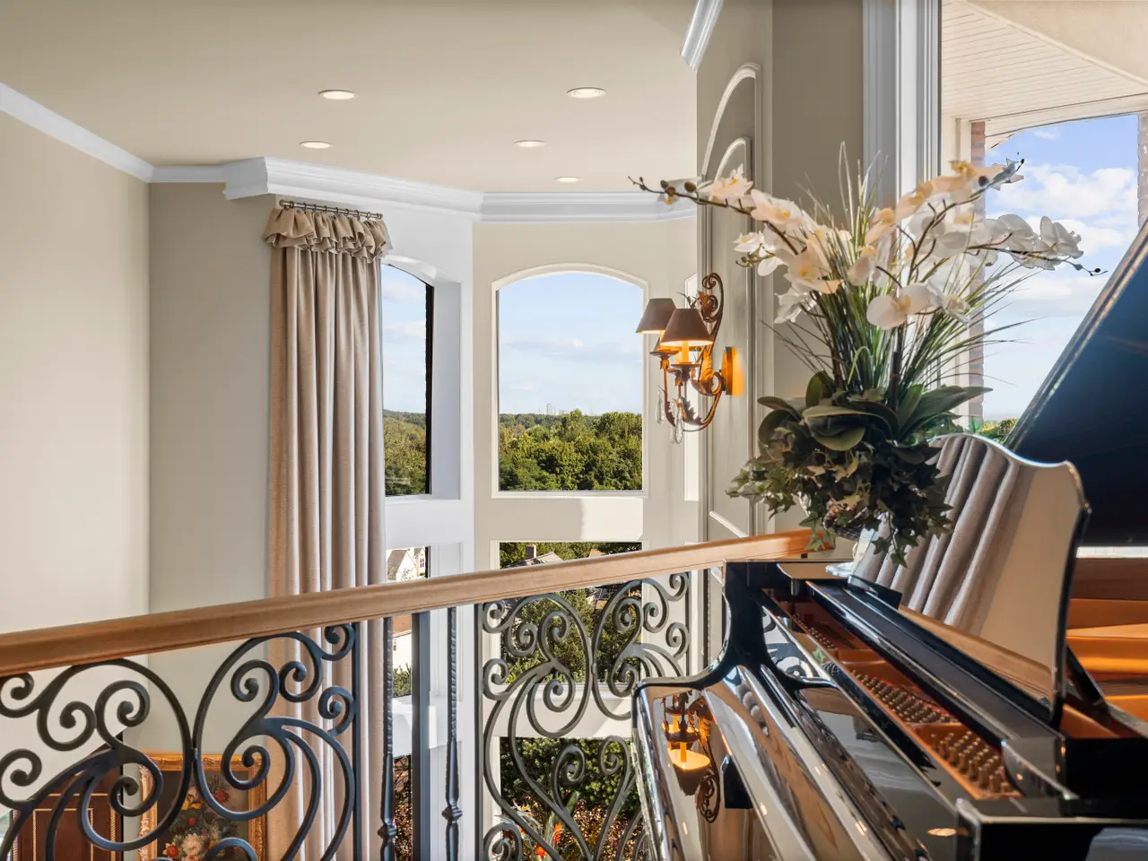 A true masterpiece of architecture and design, this one-of-a-kind estate commands attention from every angle. Perched in an exclusive enclave, the residence boasts breathtaking, unobstructed views of the Hartford skyline, offering a rare combination of elegance, privacy, and city vistas. The stately brick exterior, accented by soaring turrets and expansive walls of glass, exudes timeless grandeur. By day, the home is filled with natural light that pours through oversized windows, while by night, dramatic architectural lighting transforms the estate into a glowing landmark. Inside, craftsmanship meets modern luxury at every turn. The grand foyer makes a striking first impression with intricate inlaid flooring, sweeping staircase, and custom ironwork. Multiple living areas showcase floor-to-ceiling windows framing skyline views, while the gourmet kitchen is a chef's dream, outfitted with rich custom cabinetry, premium appliances, and granite counters. Designed for both intimate living and large-scale entertaining, the home features a lower-level entertainment suite complete with stone archways, a full bar, and game room. Luxurious bathrooms, elegant finishes, and curated design details elevate every space. Outdoor terraces and balconies extend the living experience, perfect for morning coffee with city views or evening gatherings under the stars. This estate is not simply a home-it's a statement. One of one.