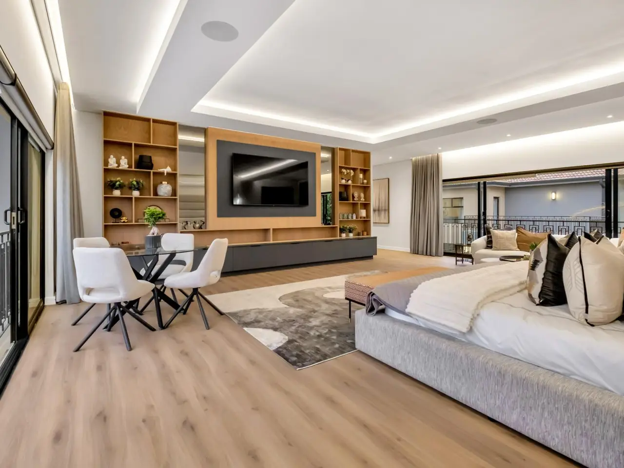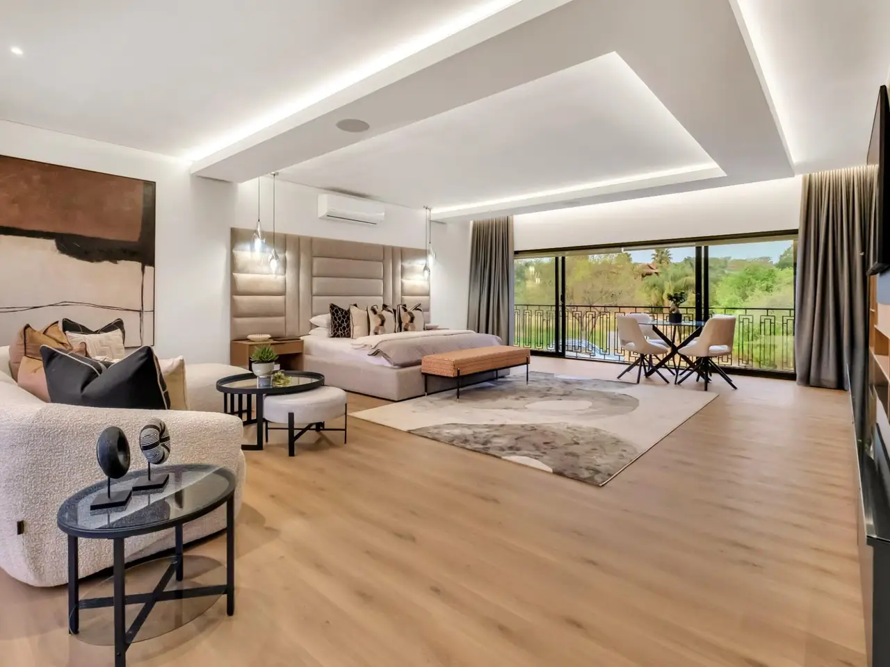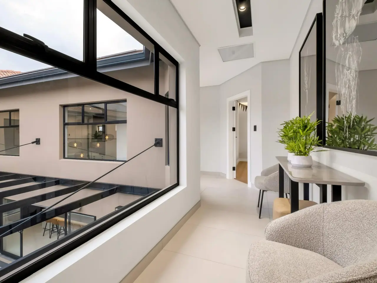 This magnificent residence is a true masterpiece - a symphony of whites, blacks, and greys that come together in perfect harmony. Recently completed with a brand-new renovation and crafted under the vision of a professional interior designer, the home is a flawless blend of contemporary elegance and timeless sophistication. All kitchen appliances and TV are included, with the option to purchase the bespoke furniture and d+¬cor for a complete, move-in-ready lifestyle. From the very first impression, this home captivates. Its striking fa+ºade and meticulous attention to detail create unmatched street appeal, while the elevated open-stand position ensures uninterrupted, breath-taking views of the golf course, clubhouse, and rolling surrounds. With abundant off-road parking for up to six vehicles, plus two expansive double garages accommodating a further four cars, practicality meets prestige at every turn. Ground Floor: Open-Plan Luxury The entrance opens into a soaring double-volume space, instantly enveloping you in light and openness. At the heart of the home lies the gourmet double-volume kitchen GÇô a chefGÇÖs dream with sleek finishes, an enormous pantry, and a fully fitted scullery. The breakfast nook and intimate formal lounge extend seamlessly from this central hub, offering serene views of the courtyard garden and the expansive pool. The open-plan entertainment wing epitomises effortless indoor-outdoor living, featuring two inviting lounges, a grand dining space, and a magnificent pub. Integrated design ensures flow and connection, while a built-in braai and dual guest cloakrooms complete this impressive area. A separate downstairs wing houses the fourth en-suite bedroom with dressing room, enjoying private garden access GÇô ideal for guests or extended family. Upstairs: A Retreat of Pure Indulgence A striking floating lightwood staircase, beautifully underlit at night, leads to the upper level. Here, three magnificent bedroom suites are complemented by an expansive enclosed pyjama lounge with sweeping estate views and an airy study area. The main suite is nothing short of spectacular GÇô oversized, opulent, and crafted to the highest standard. It boasts a designer dressing room and a five-star en-suite bathroom, where luxury and serenity merge. The two additional en-suite bedrooms, each with its own dressing room, provide comfort and privacy for family or guests. Outdoors & Features Set on one of the largest stands within the estate, the property offers landscaped gardens with a full irrigation system. The oversized pool becomes a central feature, framed by the homeGÇÖs entertainment areas. Additional highlights include: - En-suite staff accommodation - 16 kW solar and inverter system for sustainable living - Seamless balance of openness, privacy, and spectacular views This is more than a home GÇô it is a lifestyle statement, designed for the discerning buyer who values exclusivity, sophistication, and effortless comfort.
