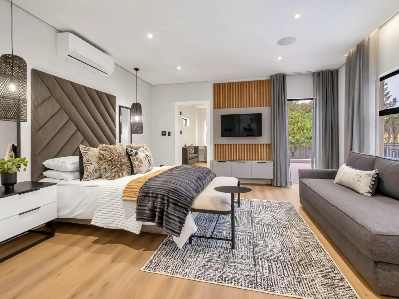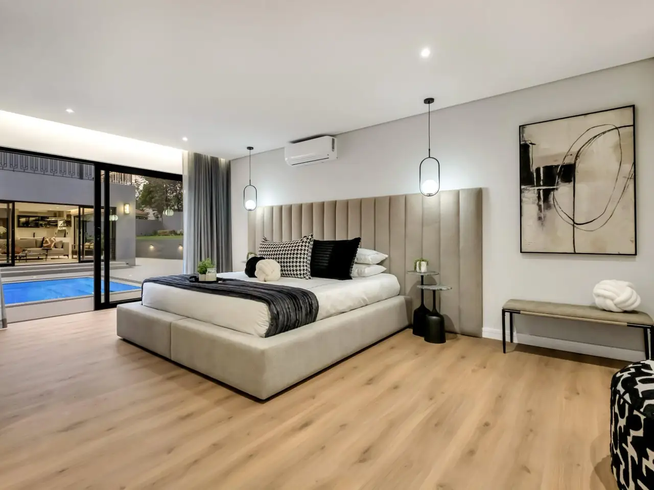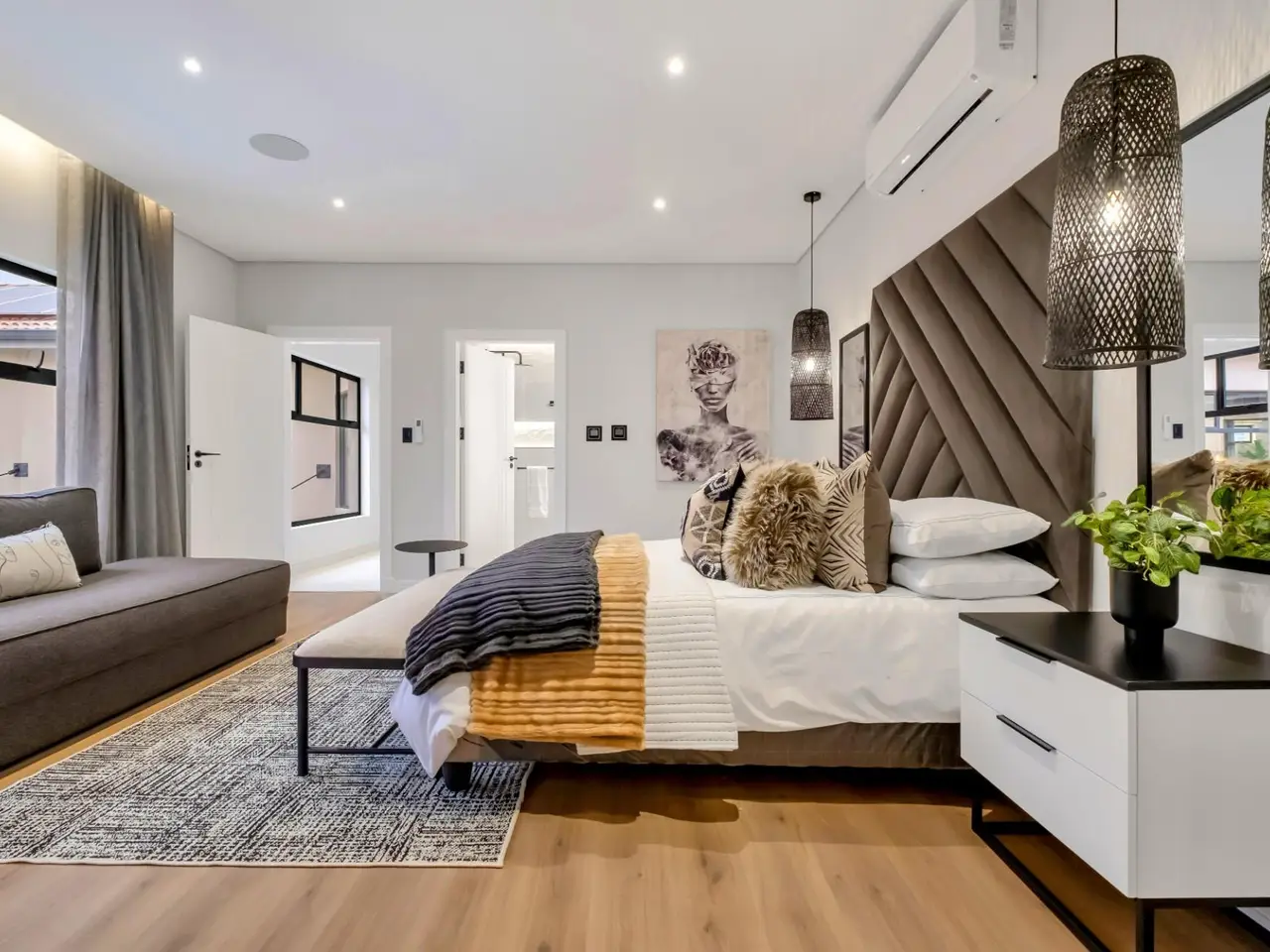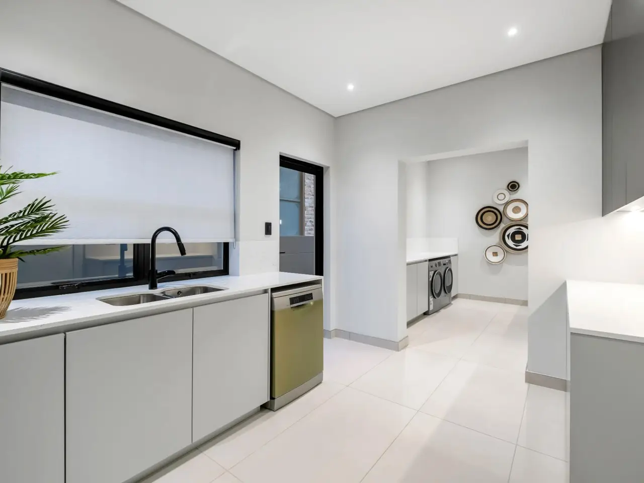 This magnificent residence is a true masterpiece - a symphony of whites, blacks, and greys that come together in perfect harmony. Recently completed with a brand-new renovation and crafted under the vision of a professional interior designer, the home is a flawless blend of contemporary elegance and timeless sophistication. All kitchen appliances and TV are included, with the option to purchase the bespoke furniture and d+¬cor for a complete, move-in-ready lifestyle. From the very first impression, this home captivates. Its striking fa+ºade and meticulous attention to detail create unmatched street appeal, while the elevated open-stand position ensures uninterrupted, breath-taking views of the golf course, clubhouse, and rolling surrounds. With abundant off-road parking for up to six vehicles, plus two expansive double garages accommodating a further four cars, practicality meets prestige at every turn. Ground Floor: Open-Plan Luxury The entrance opens into a soaring double-volume space, instantly enveloping you in light and openness. At the heart of the home lies the gourmet double-volume kitchen GÇô a chefGÇÖs dream with sleek finishes, an enormous pantry, and a fully fitted scullery. The breakfast nook and intimate formal lounge extend seamlessly from this central hub, offering serene views of the courtyard garden and the expansive pool. The open-plan entertainment wing epitomises effortless indoor-outdoor living, featuring two inviting lounges, a grand dining space, and a magnificent pub. Integrated design ensures flow and connection, while a built-in braai and dual guest cloakrooms complete this impressive area. A separate downstairs wing houses the fourth en-suite bedroom with dressing room, enjoying private garden access GÇô ideal for guests or extended family. Upstairs: A Retreat of Pure Indulgence A striking floating lightwood staircase, beautifully underlit at night, leads to the upper level. Here, three magnificent bedroom suites are complemented by an expansive enclosed pyjama lounge with sweeping estate views and an airy study area. The main suite is nothing short of spectacular GÇô oversized, opulent, and crafted to the highest standard. It boasts a designer dressing room and a five-star en-suite bathroom, where luxury and serenity merge. The two additional en-suite bedrooms, each with its own dressing room, provide comfort and privacy for family or guests. Outdoors & Features Set on one of the largest stands within the estate, the property offers landscaped gardens with a full irrigation system. The oversized pool becomes a central feature, framed by the homeGÇÖs entertainment areas. Additional highlights include: - En-suite staff accommodation - 16 kW solar and inverter system for sustainable living - Seamless balance of openness, privacy, and spectacular views This is more than a home GÇô it is a lifestyle statement, designed for the discerning buyer who values exclusivity, sophistication, and effortless comfort.