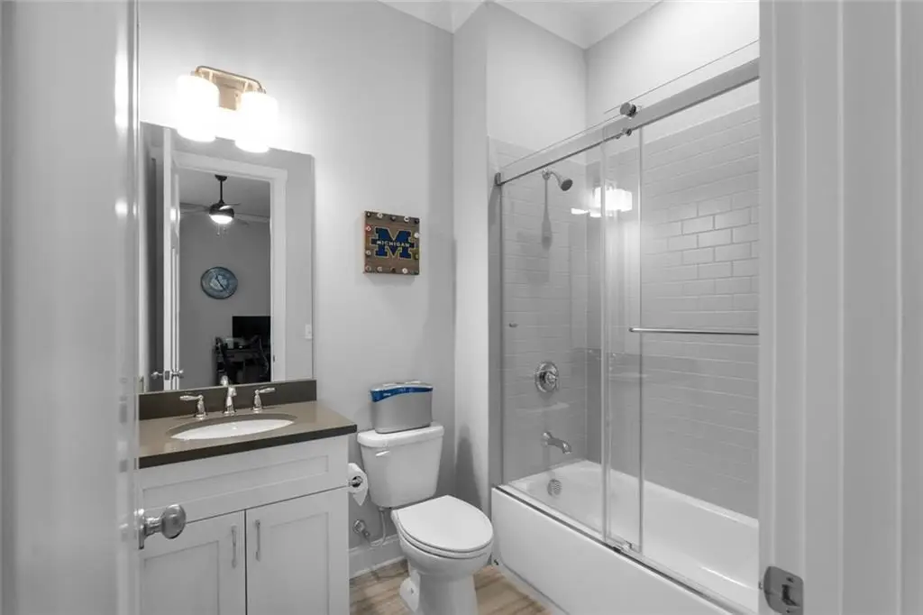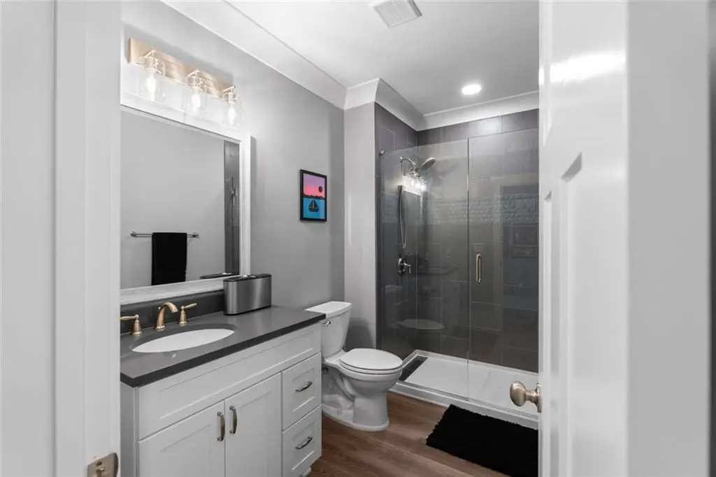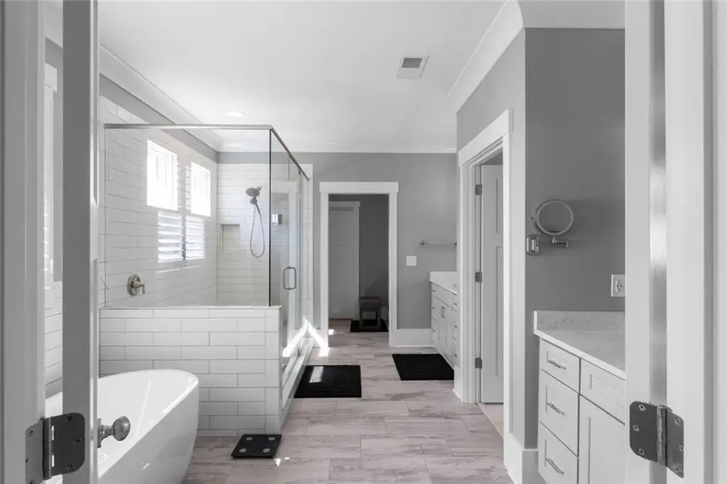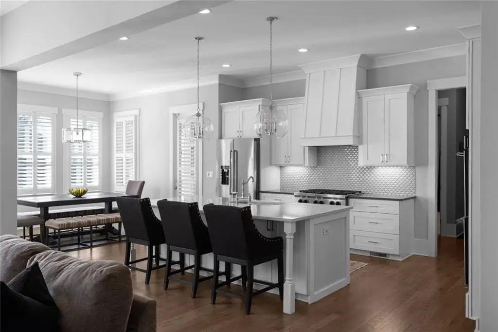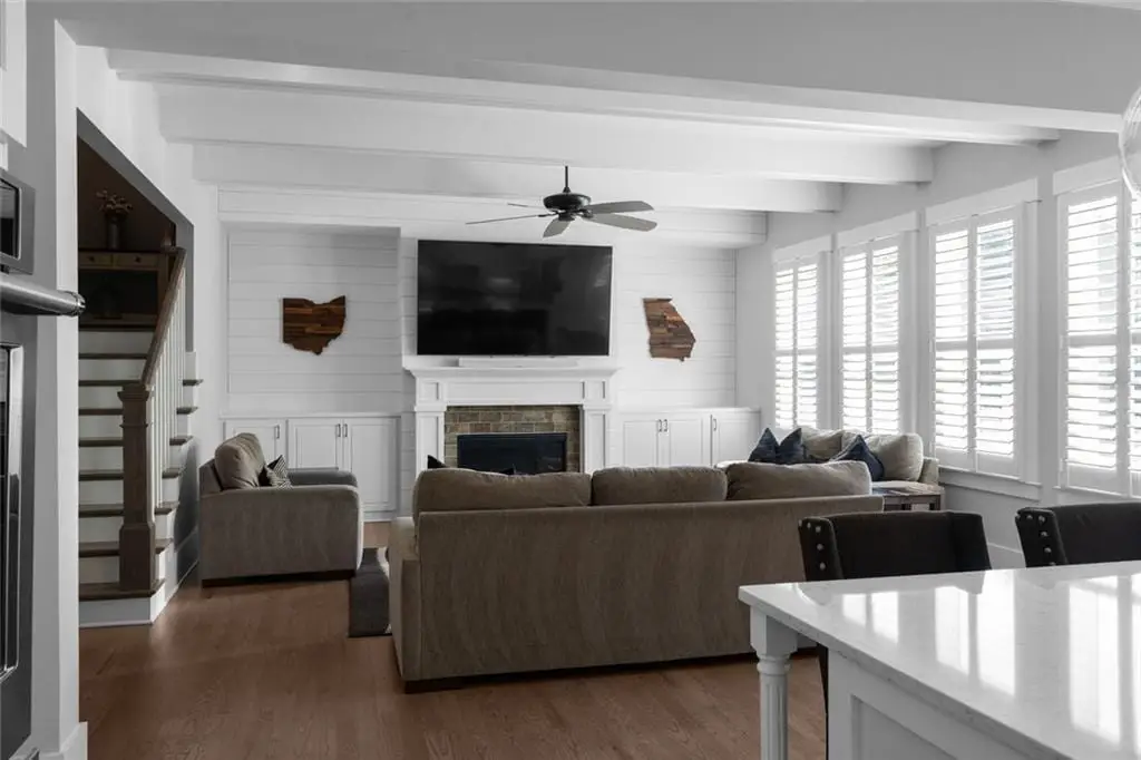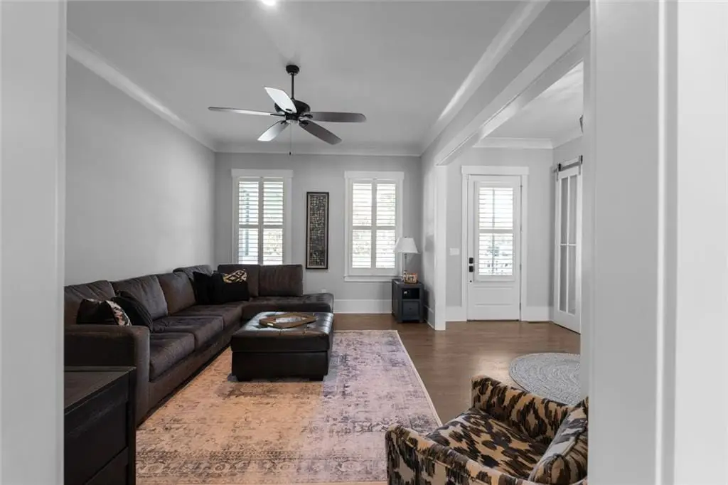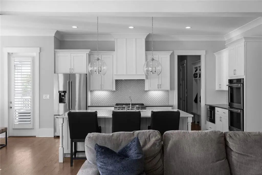 Stunning Modern Farmhouse by Peachland Homes This beautifully designed modern farmhouse blends timeless charm with contemporary elegance. Step through the inviting foyer into an open and airy layout featuring a spacious formal dining room and a private study perfect for a home office or library.The gourmet chef's kitchen is the heart of the home, offering custom cabinetry, high-end stainless steel appliances, a large center island with seating, quartz countertops, and a walk-in pantry. The kitchen seamlessly flows into the great room, highlighted by a cozy fireplace and walls of windows that fill the space with natural light. Enjoy indoor-outdoor living on the screened and covered porch, ideal for year-round entertaining.The main floor guest suite, privately located at the rear of the home, provides comfort and convenience for visitors or extended family.Upstairs, the luxurious owner's suite is a true retreat featuring a spa-inspired bathroom with a soaking tub, separate frameless glass shower, dual vanities, and a generous walk-in closet. Three additional large secondary bedrooms with ample closet space and two full bathrooms complete the upper level.The finished basement offers an impressive extension of living space featuring a custom bar, fitness room, recreation area, and additional bedroom and full bath.Outside, enjoy the expansive backyard, beautifully landscaped and ready for your dream pool or outdoor oasis.Located just minutes from Downtown Crabapple and Milton, this home combines luxury living with convenience. Enjoy being within walking distance to Hembree Park, top-rated schools, and local shops and restaurants. 6 Bedrooms | 5.5 Bathrooms | Finished Basement | 3-Car Garage | Large Level Lot