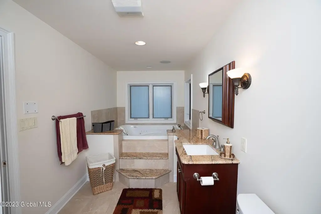 This magnificent estate has a mini, private amusement park w/ helicopter pad! Enjoy huge water slide in heated salt-water pool, go-kart track w/ go-karts included, tennis court, koi pond & volcano display. Two-3 car, temperature controlled oversized garages (6 bays). House comes furnished w/ 5,132 sq. ft. 6 BR, 5 1/2 baths. Surrounded by 30 acres of land, just 20 min from Albany Int'l Airport & 18 min from Sch'dy Airport. Gorgeous, coffered ceilings, gourmet kit, game room & many more upscale features like 4-person jetted tub in one of 3 primary suites! Includes an in-law or guest suite w/ separate entrance. Soak in outdoor hot tub or hang out at the fire pit. Enjoy fall foliage, apple picking, hiking & ski at nearby Maple Ski Ridge or Gore Mt. Close to Saratoga & Lake George. Must see!