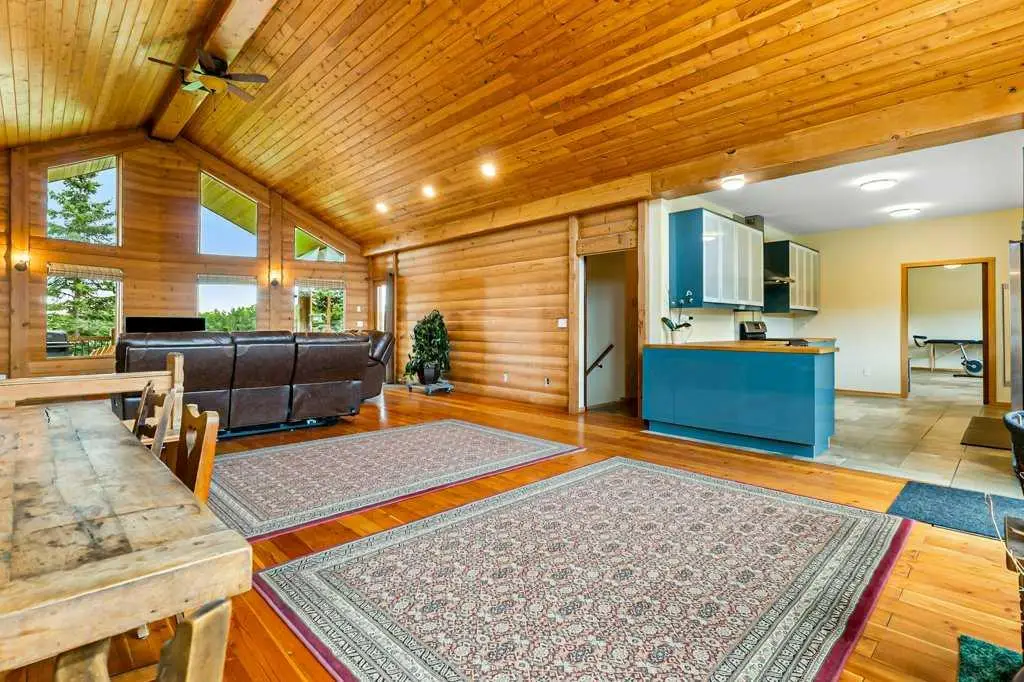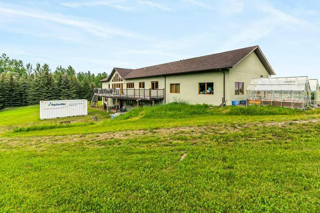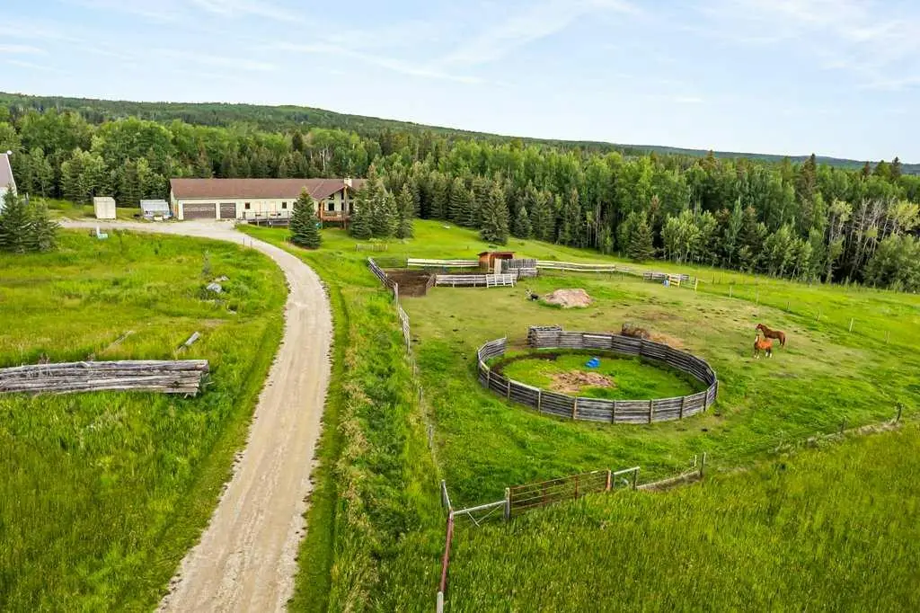 Stunning location just 10 minutes west of Water Valley. This beautiful 150-acre fenced and gated property offers a rare blend of open pasture, spacious yard, and dense forest with meandering creeks, creating an ideal setting for nature lovers and horse enthusiasts alike. Approximately 50 acres are dedicated to hay and pasture, while the balance is mature forest, offering privacy and recreational opportunities. Set up for a few horses with corrals and a round-pen, the property includes a massive 100’ x 75’ indoor riding arena with a full-length 16’ side storage area along the east side—perfect for equipment, tack, and feed. The unique 2,571 square foot walkout bungalow features vaulted ceilings and warm fir finishing throughout. The open-concept main living space includes a wood-burning stove, a huge kitchen ideal for gatherings, and a cozy family room perfect for relaxing. The spacious primary suite is located just off the living area and boasts a luxurious ensuite with a freestanding tub, dual vanities, water closet, brand new shower, wet sauna, and an expansive walk-in closet with custom cabinetry. The main floor also includes a second living area, flex space that was previously a second kitchen and a convenient laundry room complete with a full bathroom, utility sink, and a shower that is also handy as a dog wash station. The bright and spacious lower walkout level includes a large living and recreation room, a full second kitchen, two generous bedrooms, a newly finished four-piece bath, another laundry station, plenty of storage, and a beautiful office with built-in cabinetry—ideal for working from home. A great space for multi-generational living. Additional features include a heated triple attached garage, 30'x65' tarp storage building, back up natural gas generator, two greenhouses for gardening, wood boiler system for the house in-floor heat and a massive west-facing deck to enjoy summer evenings. This exceptional property must be seen to be truly appreciated. Book your showing today!