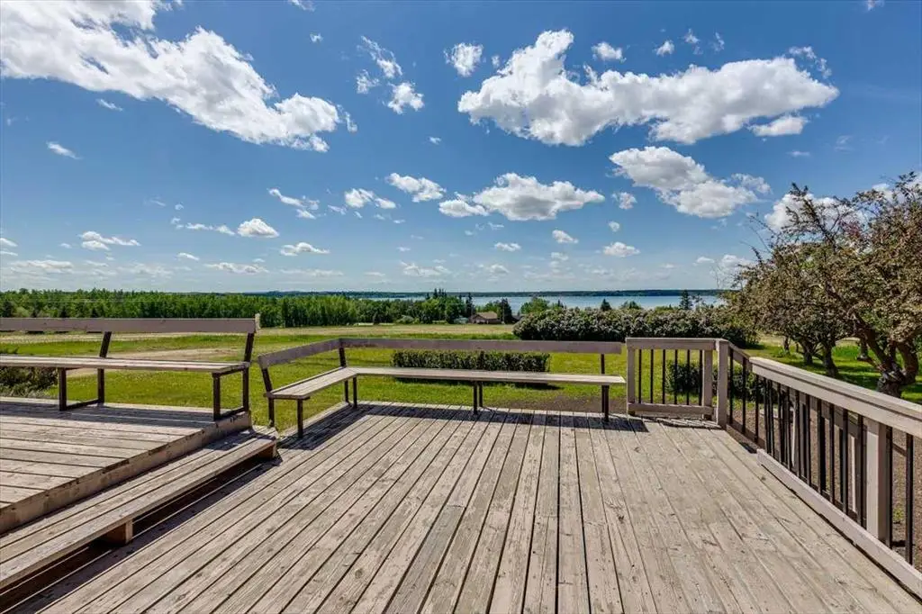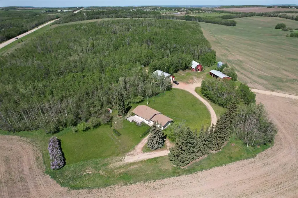 IT’S BEEN SUBDIVIDED!! THIS LONG ADMIRED HOMESITE NOW RESIDES ON 15.94 PREMIUM LAKE AND TOWN VIEW ACRES. Here’s your opportunity to own this ideally located acreage with stunning lake, mountain, and town views. The yard sits high above paved Hwy 20 frontage and Central Alberta's most popular tourist-recreation lake destination – SYLVAN LAKE. Classic 1964 farmhouse - 1,185 SF 3 bed/2 bath bungalow with partial basement development and single garage attached by breezeway accessible from the front and back yard. The home has a solid layout that could easily be renovated, updated, or moved off to make way for your DREAM HOME on this site. Tiered front deck for entertaining and taking in the incredible views. The landscaped yard has a large shelter belt with mature trees and fruit trees, large lawns and recently constructed driveway and automatic entry gate. Chain-link fenced back yard area for children or pets to safely run and play. Outbuildings include a classic hip roof barn on concrete with power, 40'x56' heated arch rib Quonset on concrete with newer rollup door and welding plug, garden shed and 32'x60' open-faced shed with enclosed end section. 2 privately owned water wells for the house and the yard. Septic has been upgraded with a brand new large capacity tank (holding tank – no field currently). Great location - close to golf courses, public boat launch across the road, town, schools and all that Sylvan Lake has to offer. BONUS - annual income includes surface lease revenue from a Town of Sylvan Lake water well ($8100+/- annual with 2% annual increase plus $2000 access road maintenance). DO NOT MISS THIS OPPORTUNITY!!
