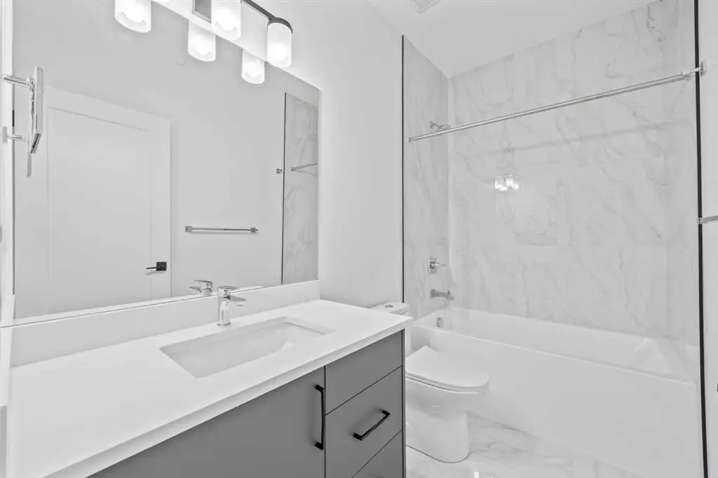 Welcome to the brand new development of Knightsbridge in Cambridge Park. Minutes away from access to Stoney Trail and East Hills shopping centre. The EDEN is a stunning estate home designed to blend luxury and practicality. Set on a generous 6027 sq ft lot, this home provides an expansive backyard and a side-drive triple car garage. These are not your typical cookie cutter homes. With 3,502 sq ft of living space, this custom-built masterpiece features 5 spacious bedrooms and 4.5 beautifully designed bathrooms, offering ample room for family and guests. This home is loaded with upgrades including: Main floor full ensuite bath as well as an added powder room, Jack and Jill ensuites for added convenience, High ceilings & a Spice kitchen to enhance your culinary experiences. Inside, the main floor exudes elegance with rich hardwood flooring and 9 ft ceilings with 8 ft doors, and striking black-framed windows that invite natural light. The gourmet kitchen is a chef’s dream, complete with an oversized island, a secondary spice kitchen, sleek stainless steel appliances. An open concept formal dining and living area set the stage for gatherings. The main floor also includes a flex room as well as a 4 pc ensuite bathroom. The primary suite on the upper floors is a true sanctuary with a freestanding tub and a custom-built closet. The home’s thoughtful design continues with 3 more generous sized bedrooms on the second floor, a bonus room for entertaining, a Jack & Jill ensuite bathroom for convenience, as well as a second floor laundry room. . Step outside to enjoy a completed rear deck with steps leading to a private outdoor oasis. This home also offers a triple attached garage allowing plenty of space for extra parking. This community is within minutes to Calgary, Chestermere, and East Hills, 18 minutes to Downtown Calgary, and provides quick access to Stoney Trail, Highway 1, and McKnight Blvd making it easy to get anywhere in and around the city. Located near shopping centres, public and private schools, Khalsa school's, parks, and many other amenities, while still offering quiet country-living with wide open green spaces, walking paths, and playgrounds.