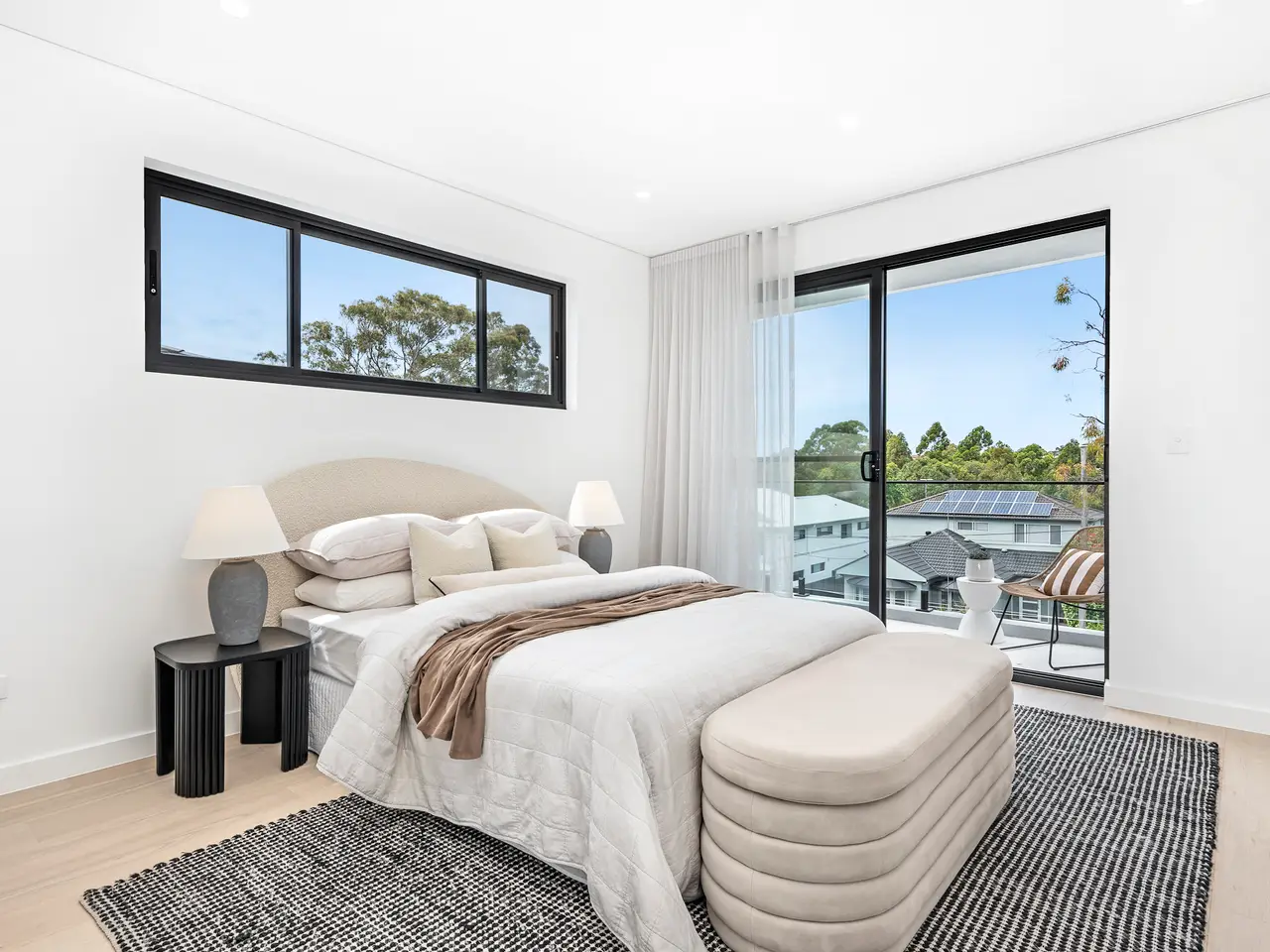 Striking street presence and serene district views set the tone for this luxury duplex with basement in a sought-after pocket of Ryde. A masterpiece in contemporary living architecturally designed to immaculate standards, it delivers remarkable quality across two bright spacious levels, showcasing stylish interiors and sleek custom appointments throughout. This solid double brick and concrete home is built for the growing family in mind. A relaxed layout of open plan living enjoys seamless connection to the outdoors which have been perfectly curated for entertaining guests, while the lavish accommodation will suit the needs of large, growing or intergenerational families. Primed for lifestyle ease, this immaculate offering is moments to the idyllic surrounds of Santa Rosa Parklands, an easy stroll to local Midway shops and close to the major shopping hubs of Top Ryde and Macquarie Centre. - Flawless crisp white interiors, timber floors and soaring skylight ceilings - Sweeping open plan living and dining zone and separate family lounge - Covered alfresco terrace and elevated manicured lawn bathed in sunshine - Marble kitchen, premium Fisher & Paykel appliances, butler's pantry - Master suite fitted with custom walk-in robe and private balcony with district views - Bedroom two is also fitted with a custom walk-in robe - Additional bedrooms offer built-ins and desks, 5th guest bedroom with an ensuite - Luxurious bathrooms appointed with rainfall showers and separate bath tubs - Ducted air conditioning, laundry, powder room and internal access to double garage - Walk to local catchment school Smalls Road Public and Yamble Reserve - Short drive to the amenities of Top Ryde Shopping Centre and Macquarie Centre