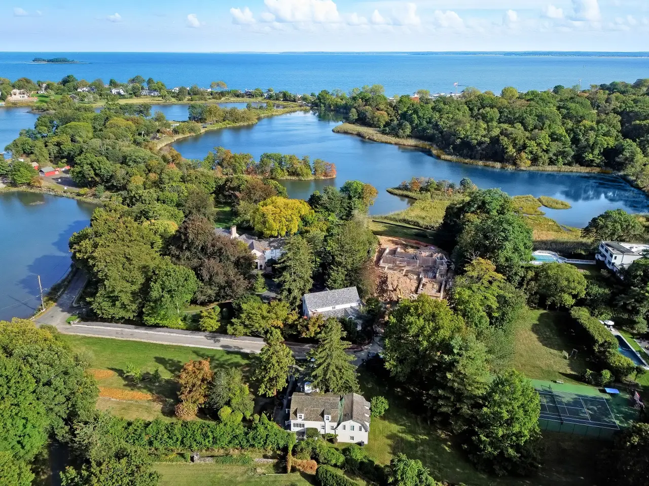 Nestled on one of Rye's most coveted streets, this distinguished Colonial Revival on Kirby Lane captures the timeless beauty and historic charm that define this coastal neighborhoods 350-year legacy. Once part of a grand Gilded Age estate, the clapboard residence exudes New England character with its graceful roofline, multi-pane windows and octagonal bay crowned by a bell-shaped roof that bathes the interior in natural light. Set on 1.1 private acres near the water's edge, the home enjoys serene views of Kirby Pond and a tranquil setting surrounded by mature trees and a sweeping front lawn. The arched entry portico and glass paneled French door entry creates a storybook welcome, leading to spaces rich in character. Inside, sun-filled rooms blend timeless detailing with modern flow. The family room with custom built-ins opens to the kitchen with stainless countertops and a glass-wrapped breakfast room. The dramatic living room, anchored by a marble-surround fireplace and expansive windows, overlooks the park-like grounds, while the adjoining dining area glows beneath a statement chandelier and the charming cupola. The first-floor primary suite features a tray ceiling, rich millwork, oversized windows and a marble-clad ensuite bath. Three additional bedrooms and a full bath complete the second floor. In a neighborhood once celebrated as a summer haven for New Yorks elite, this home presents a rare opportunity to own a piece of Ryes storied past where timeless craftsmanship, architectural distinction, and the serenity of coastal living come beautifully together. An exceptional opportunity to restore, reimagine, or build your dream home on one of Ryes most storied streets.