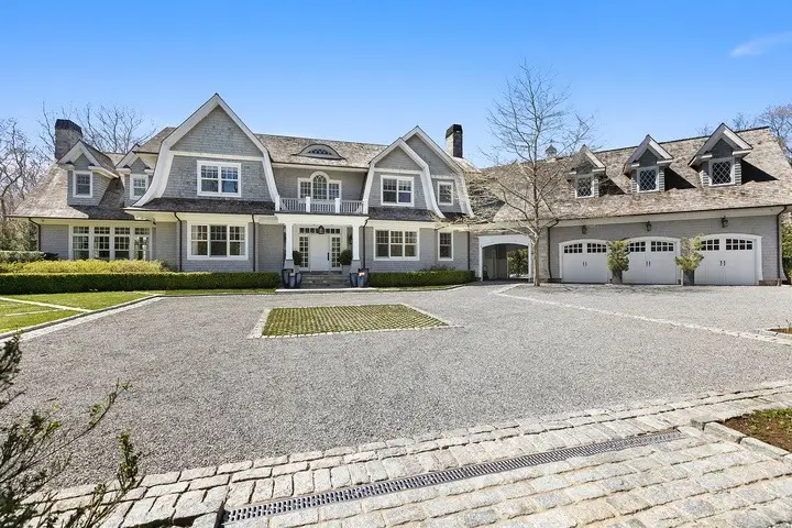 Built in the classic 'Hamptons' traditional estate style with gambrel rooflines and an eyebrow window, this cedar and stone residence sprawls across 2.15+/- acres in renowned Sagaponack. The grand entry foyer with a main staircase, coffered ceiling and chandelier welcomes to over 10,000 sf of living space featuring 8 bedrooms, 8 bathrooms, formal living room, formal dining room, and music room. With fireplaces in the formal and casual living rooms, decoration is immaculate in whitened neutrals illuminated by custom crystal, chrome, and stainless fixtures. Elegant and timeless Carrera marble contrasts brilliantly against ebonized hardwood floors throughout. An immense chef's kitchen features herringbone marble back splashes, exceptional slab white-marble counters, and oversize professional appliances which are perfectly integrated within custom white cabinetry. Baths are consistently fitted and exquisitely finished with white marble tiles, counters, porcelain fixtures and cabinetry. A lower-level features entertainment rooms and a theater. The grounds feature a front, circular motor court with separate garage space for three automobiles. Back grounds are graced with a custom heated gunite swimming pool and spa as well as a tennis court.