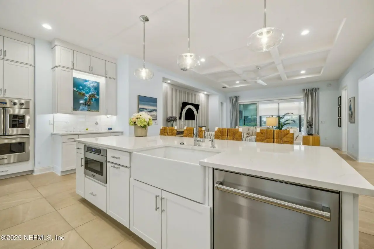 This exquisite custom home combines refined design with exceptional craftsmanship. Offering 4 spacious bedrooms and 3 full bathrooms, this home is appointed with designer tile flooring throughout and a coveted 3-car garage. The chef's kitchen is a showstopper, featuring some professional-grade Viking appliances, sleek quartz counters, custom cabinetry and a dry bar w/ quartz counters. Retreat to your luxurious owner's suite overlooking the backyard and a spa-like bath and oversized shower. Perfect for entertaining, the stunning screened Florida room opens to an extended paver patio with an expansive summer kitchen with grill, flat top and refrigerator, ideal for dining or entertaining while overlooking the peaceful pond. Every detail-from the luxury finishes to the thoughtfully designed open layout-creates an atmosphere of sophisticated comfort and modern elegance. Not one detail has been missed, even the laundry room is amazing. Too many upgrades to list.