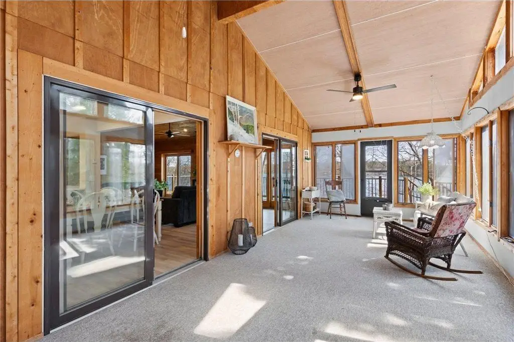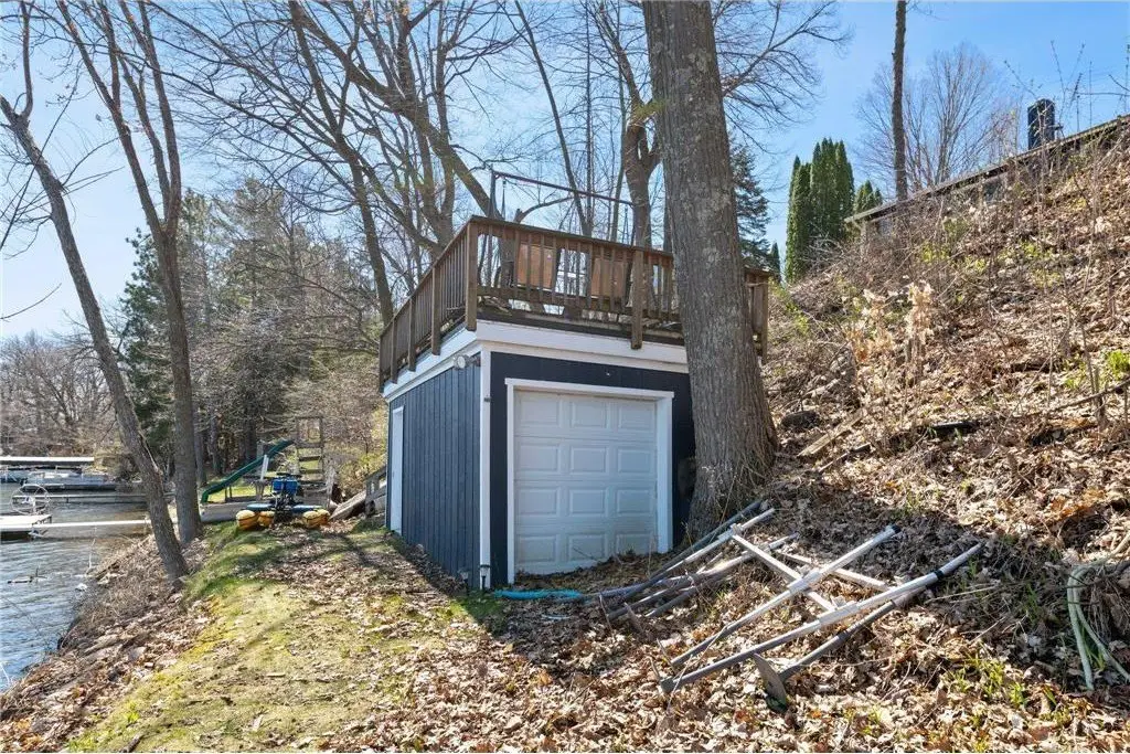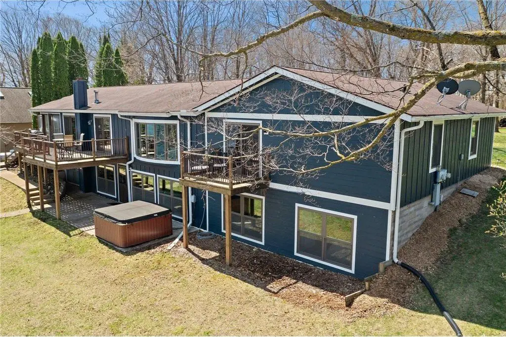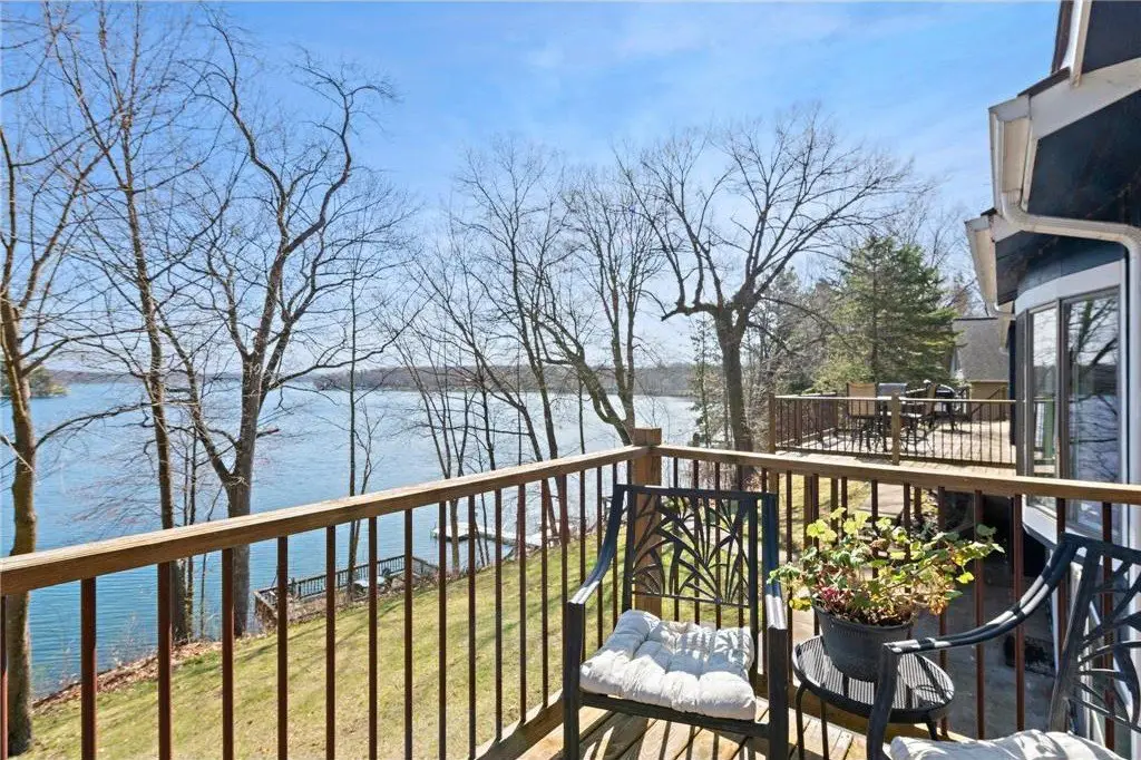 Live the lake life on coveted Deer Lake with this stunning 5-BR, 4-BA custom home, situated on 1.55 acres with 112+ ft of shoreline. With exceptional space, privacy, and style-this home checks every box. The main level features 3 bedrooms, including a luxurious primary suite with 2 walk-in closets, private bath, and access to your own deck overlooking the lake. The open layout highlights hardwood floors, vaulted ceilings, a spacious kitchen, and large living area that opens to both the main deck and 3-season room. The lower level is ideal for entertaining with 2 additional bedrooms, a full bath, second full kitchen, large family room, and a bonus room. Outside, enjoy a serene setting with mature trees and beautiful water frontage. A 2-car attached garage plus an additional detached garage on the 2nd lot offer abundant storage for lake toys and vehicles. Whether you’re hosting, relaxing, or exploring, this rare property invites you to experience the best of lakeside living on Deer Lake.